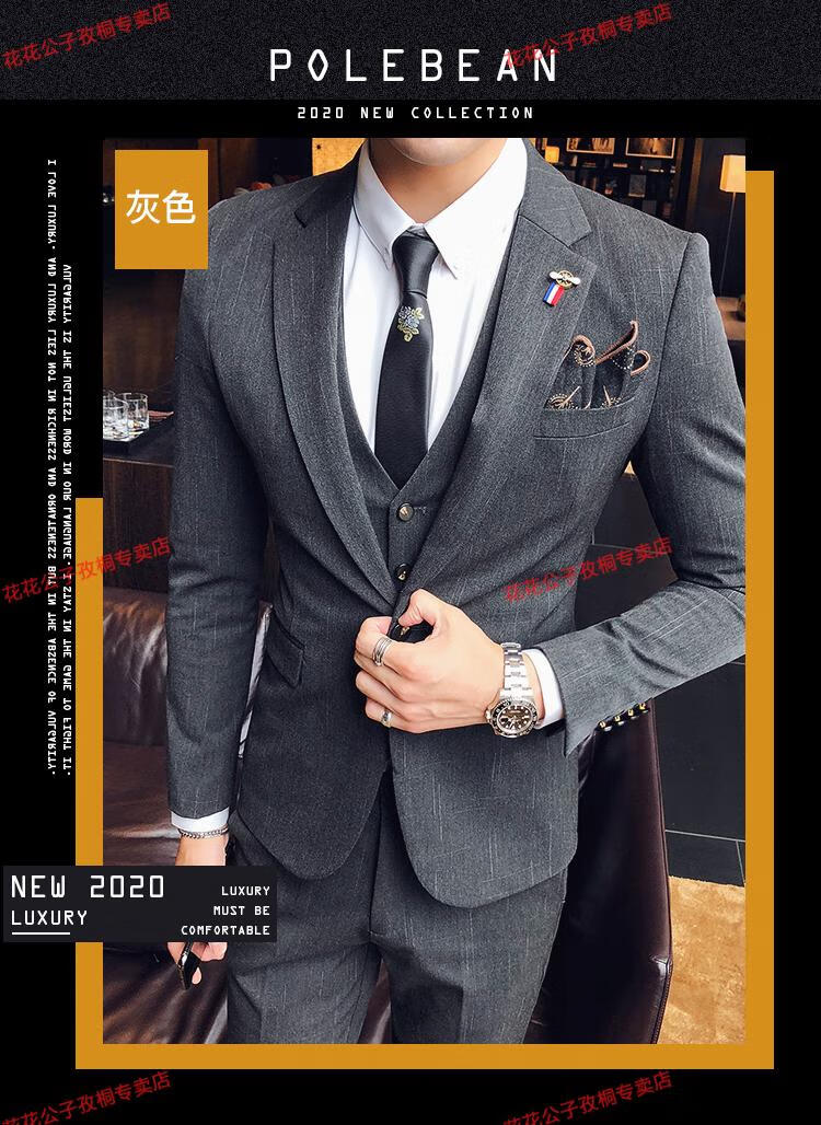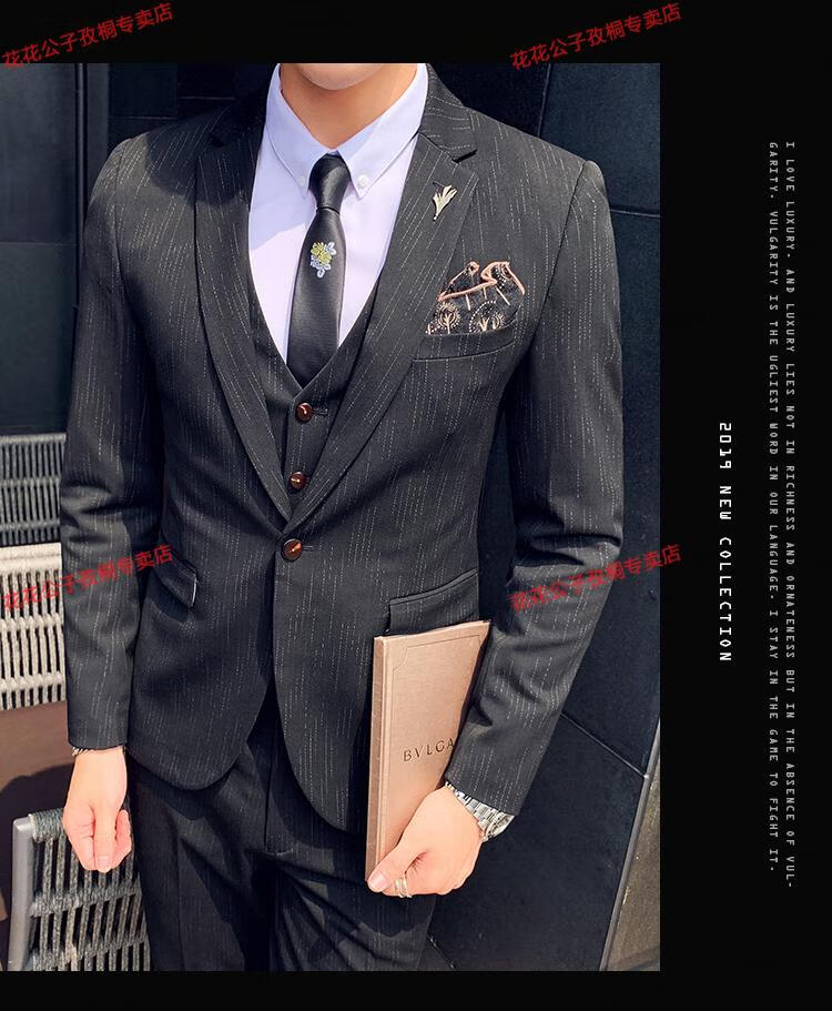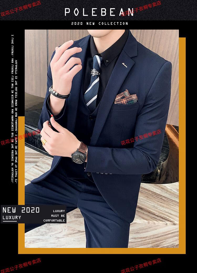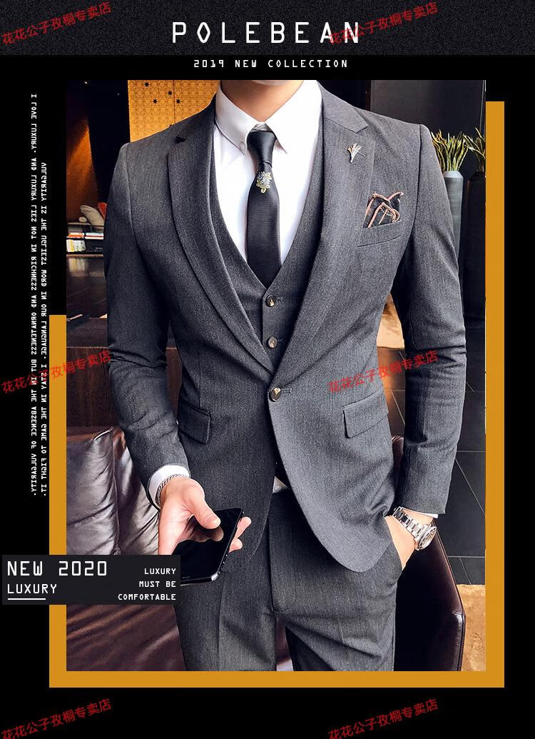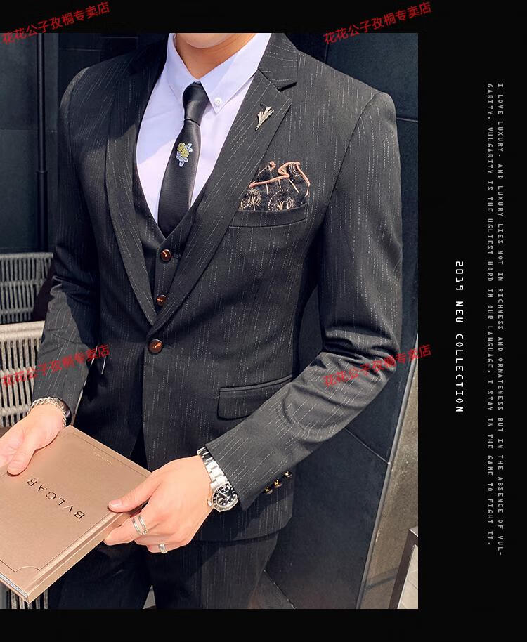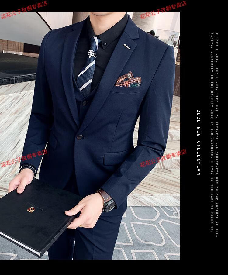 Playboy suit for men professional groomsmen Korean style groom wedding dress formal business slim casual suit for men 937 black (three-piece suit) jacket + vest + trousers + shirt + gift bag XL 52 Weight 120-130 Jin Jin equals 0.5 kg