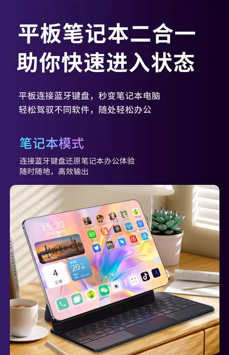 Flagship new product 16G+1TB tablet computer with ultra-clear eye protection screen 5G full network communication learning machine office two-in-one Pad Mysterious Gray - Brand new and unopened - Leather cover keyboard Exclusive version 12G+256G ultra-fast storage