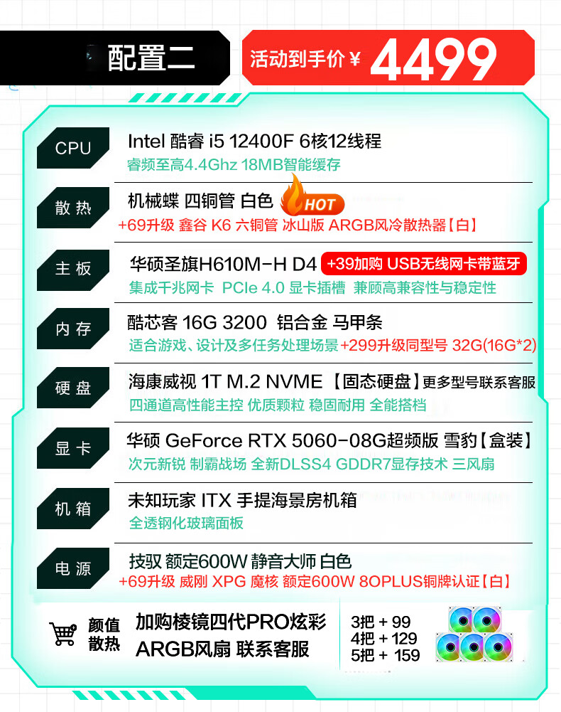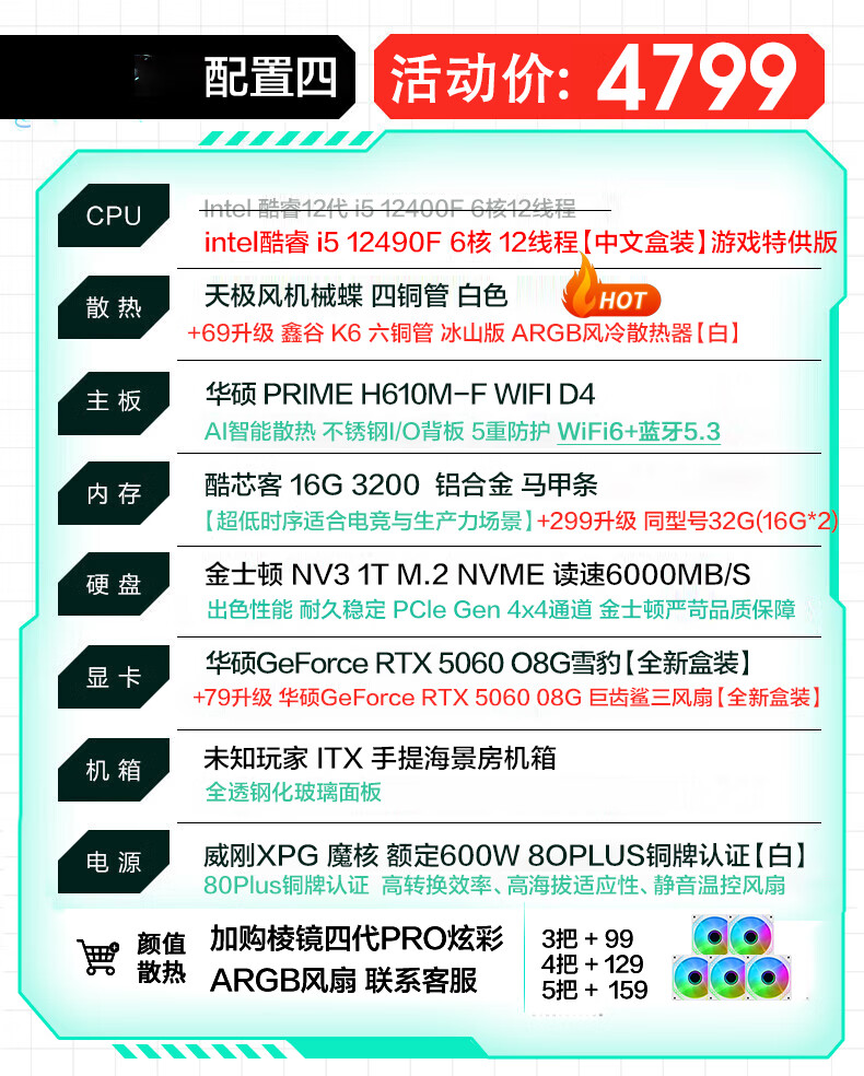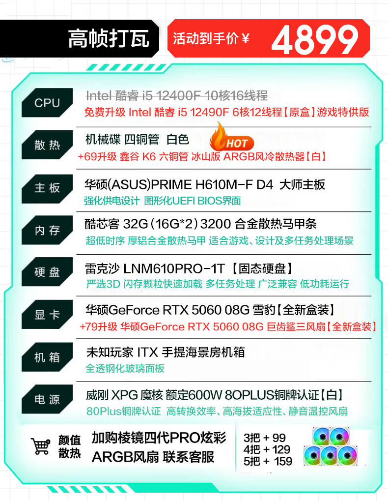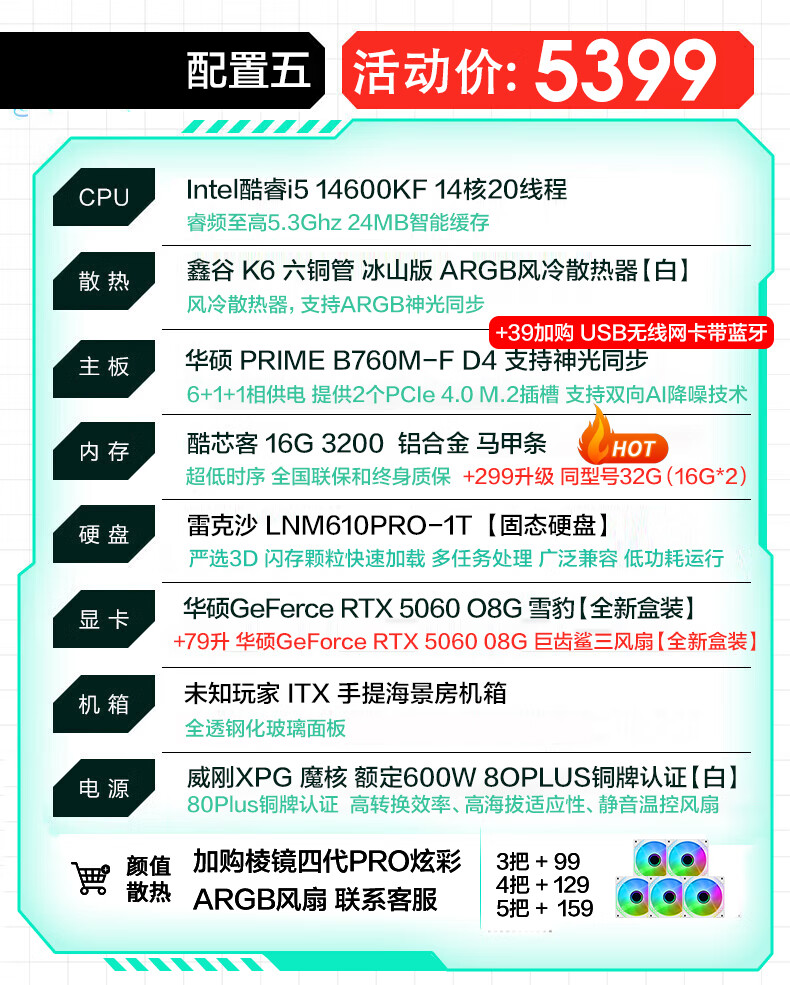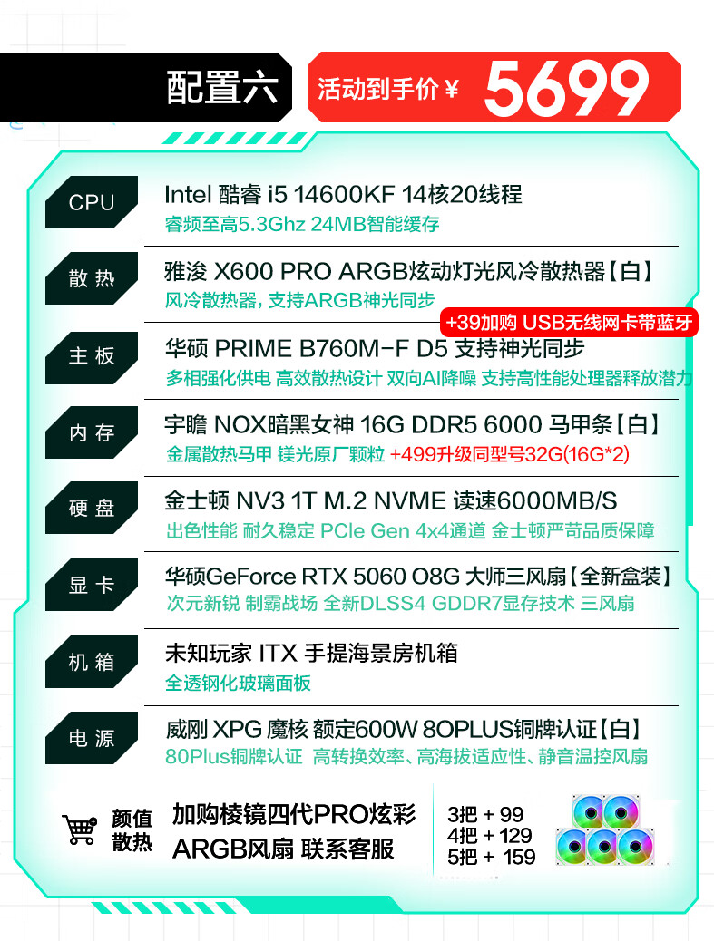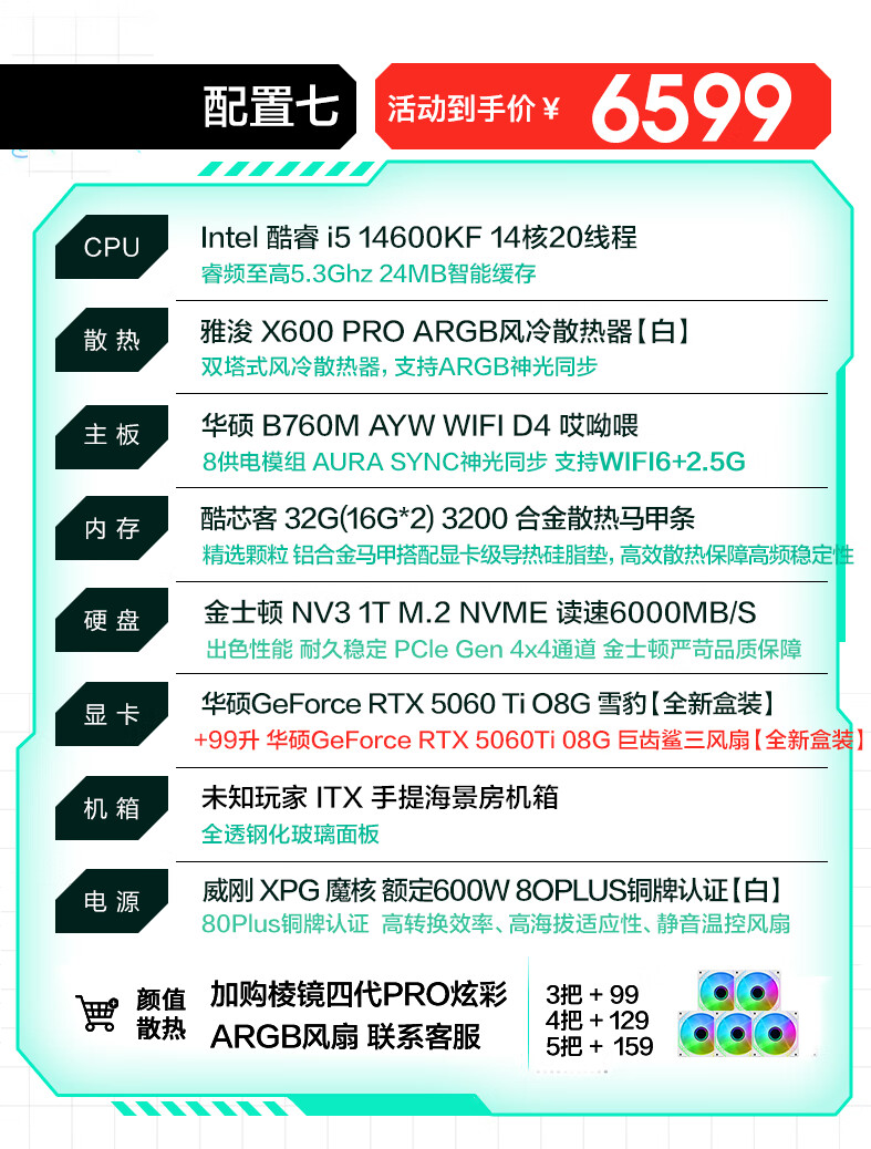 ASUS (ASUS) 5060 host RTX5060Ti graphics card 14600KF assembled computer mini portable small case e-sports game desktop DIY complete machine white sea view room itx complete machine 14600KF + ASUS RTX 5060Ti configuration seven