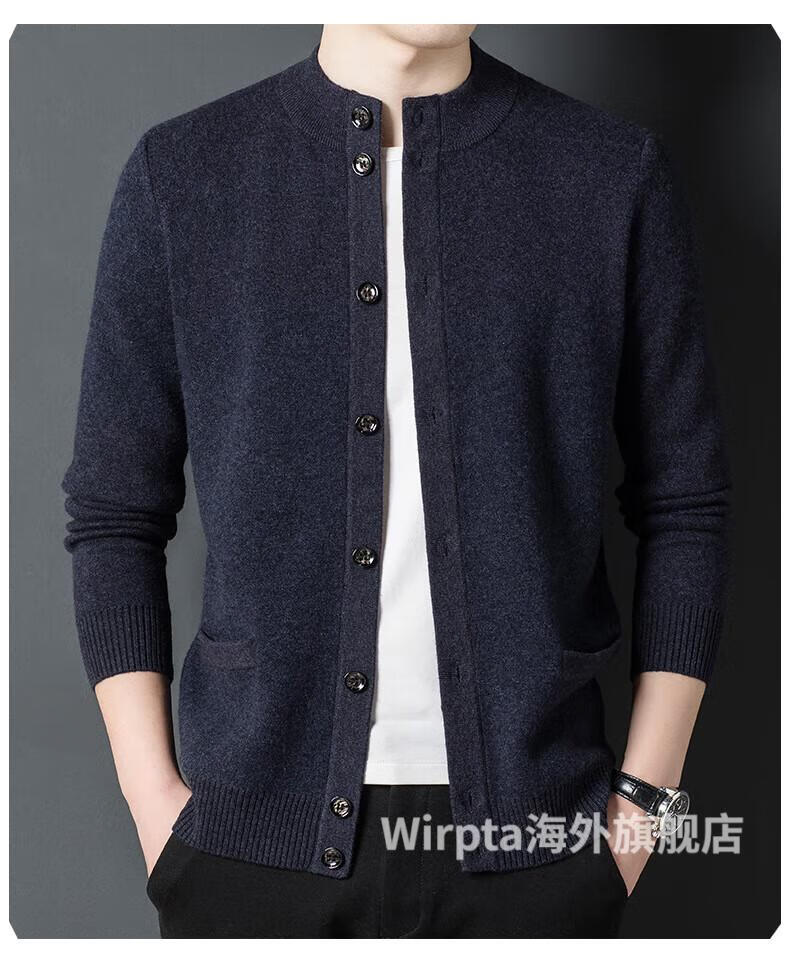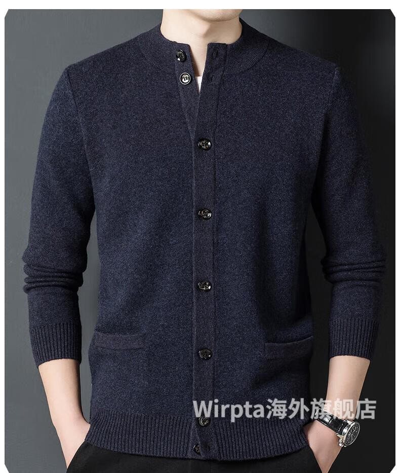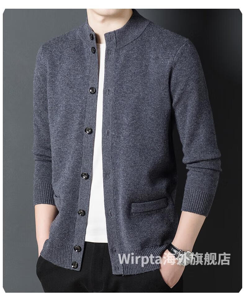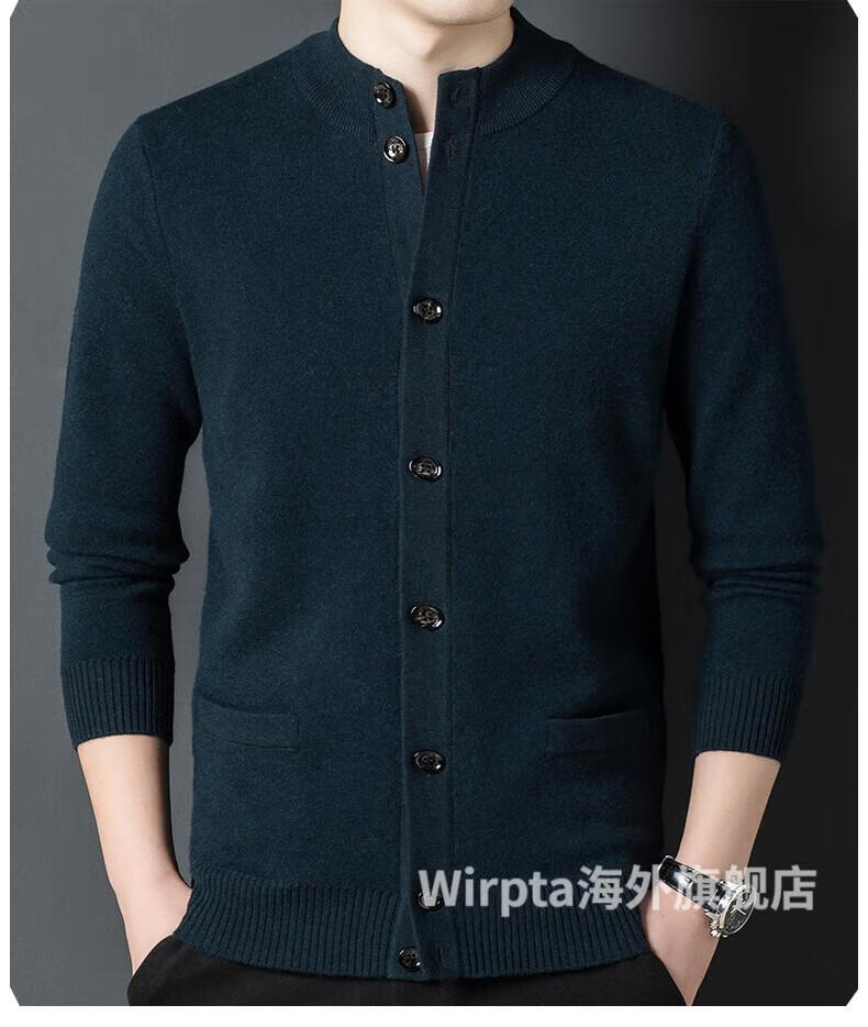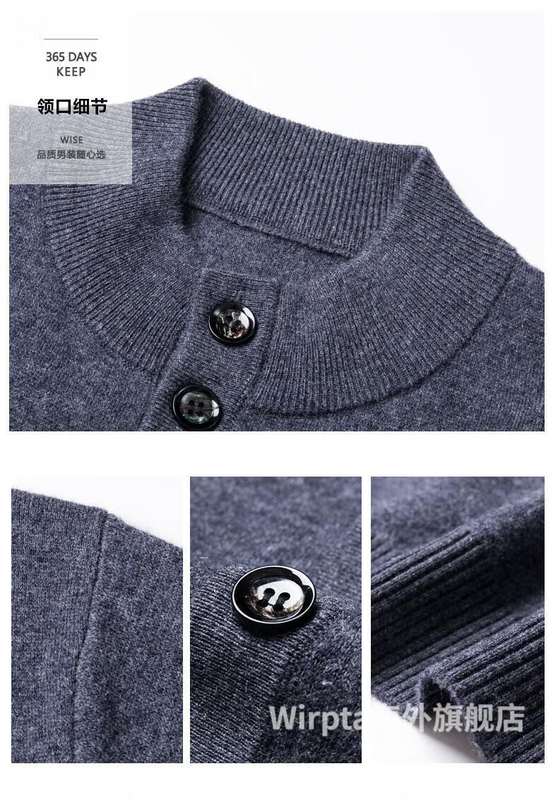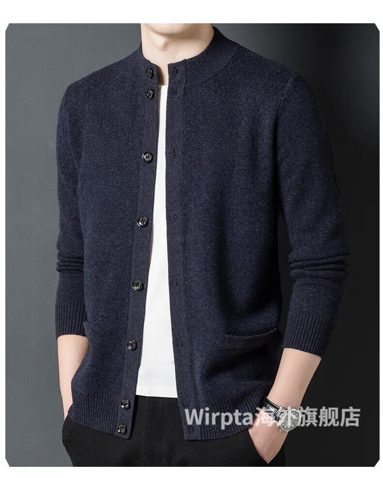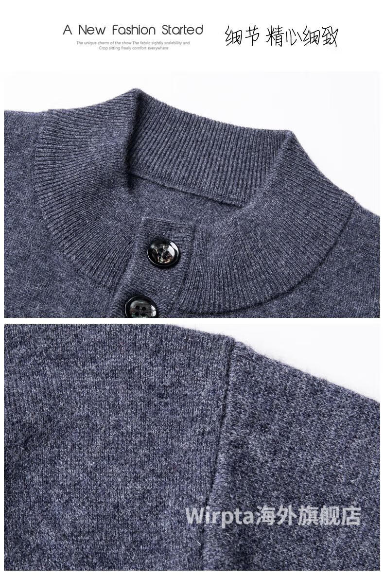 Wirpta high-end brand men's woolen sweater spring new single-breasted stand-up collar thin warm sweater fashionable casual knitted haqing (spot) L 170 (suitable for 120-130Jin Jin equals 0.5kg)