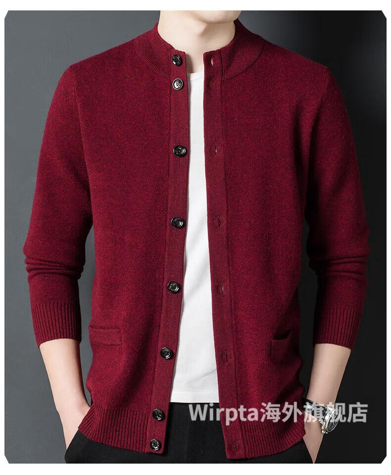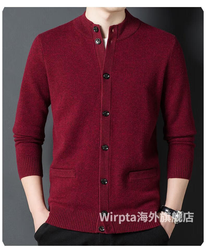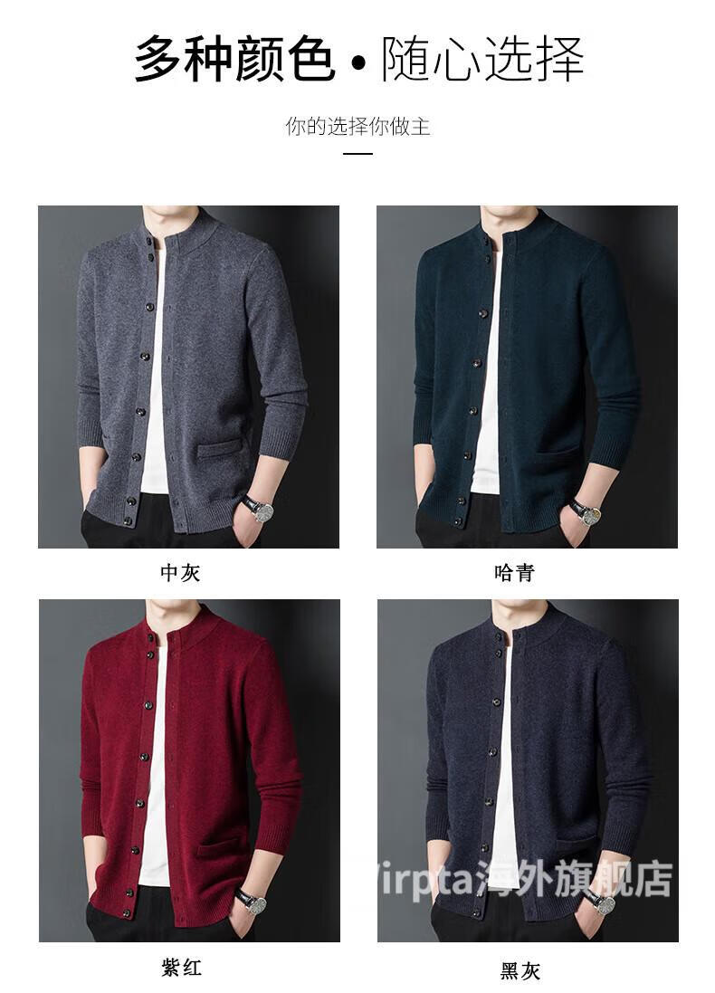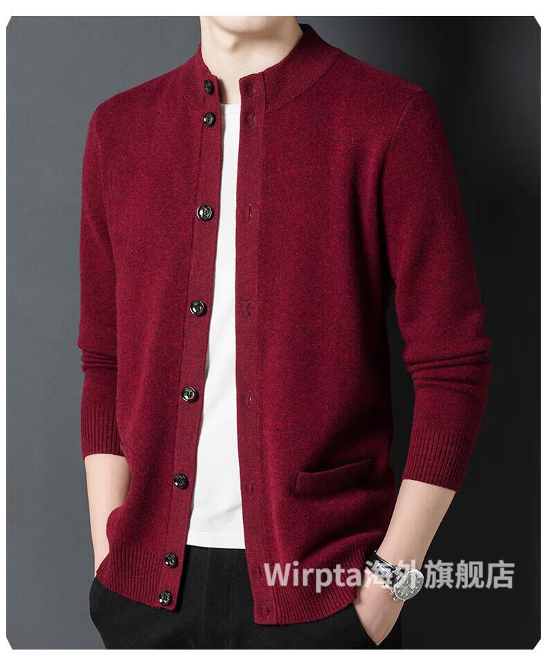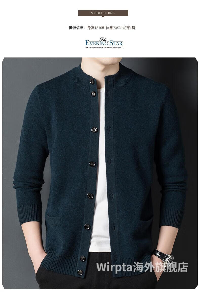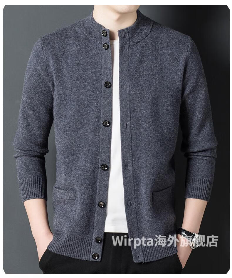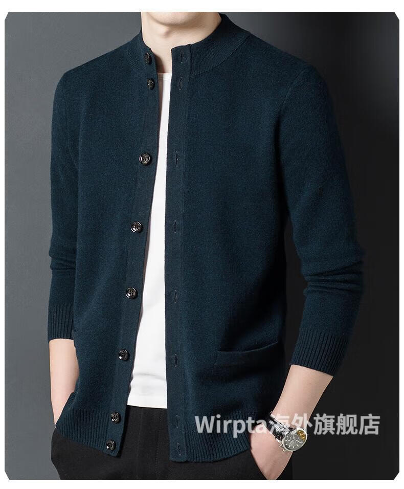 Wirpta high-end brand men's woolen sweater spring new single-breasted stand-up collar thin warm sweater fashionable casual knitted haqing (spot) L 170 (suitable for 120-130Jin Jin equals 0.5kg)