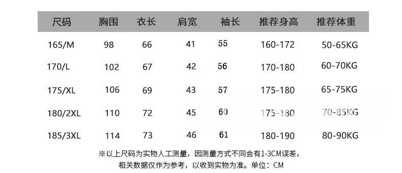 China (cm) 165 / 88-90 170 / 96-98 175 / 108-110 180 / 118-122 185 / 126-130
