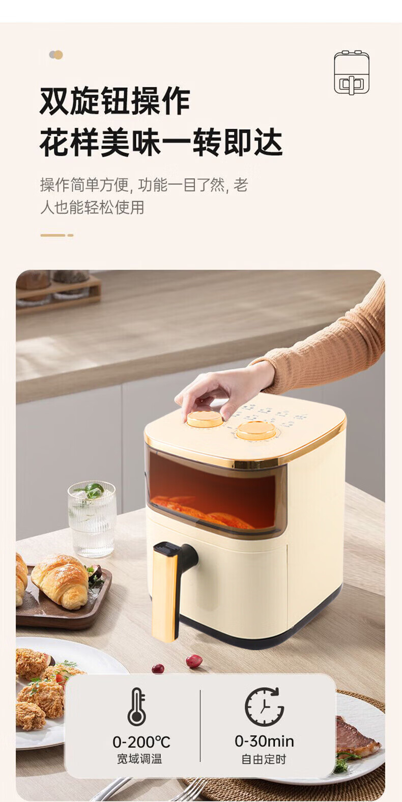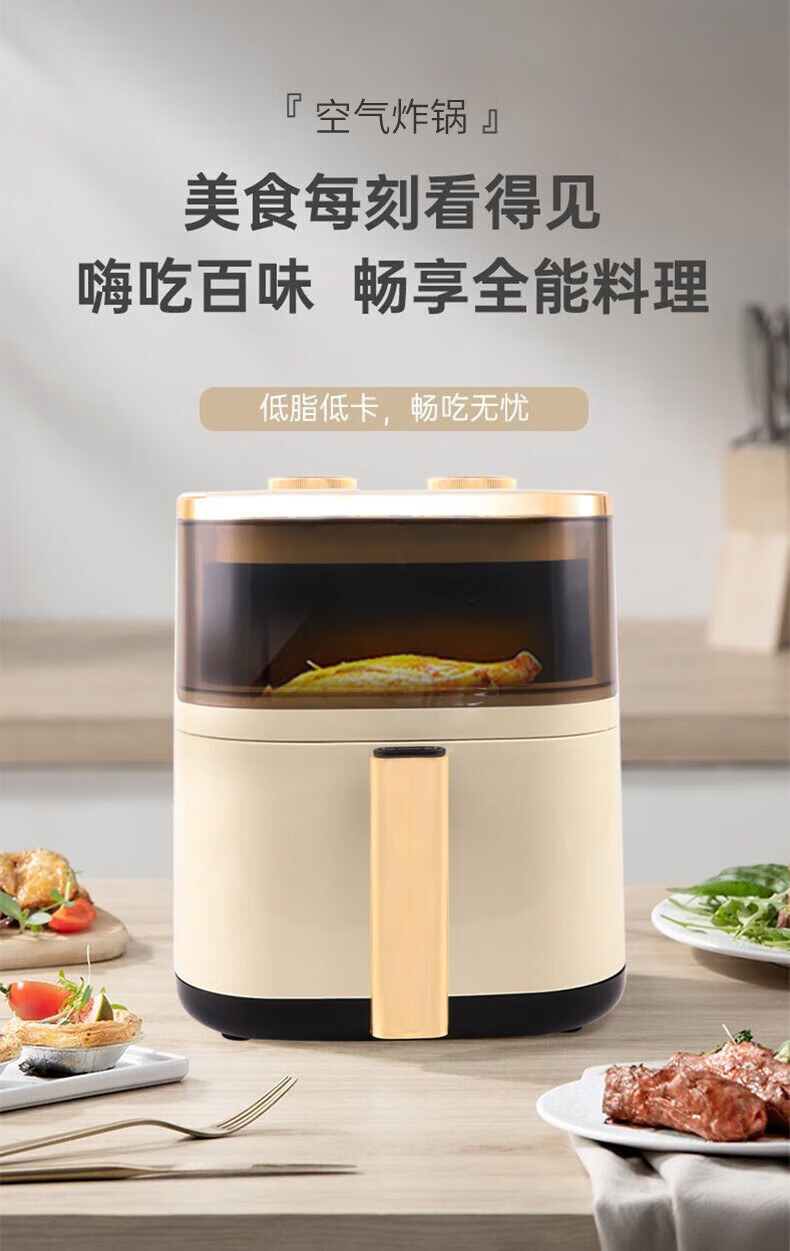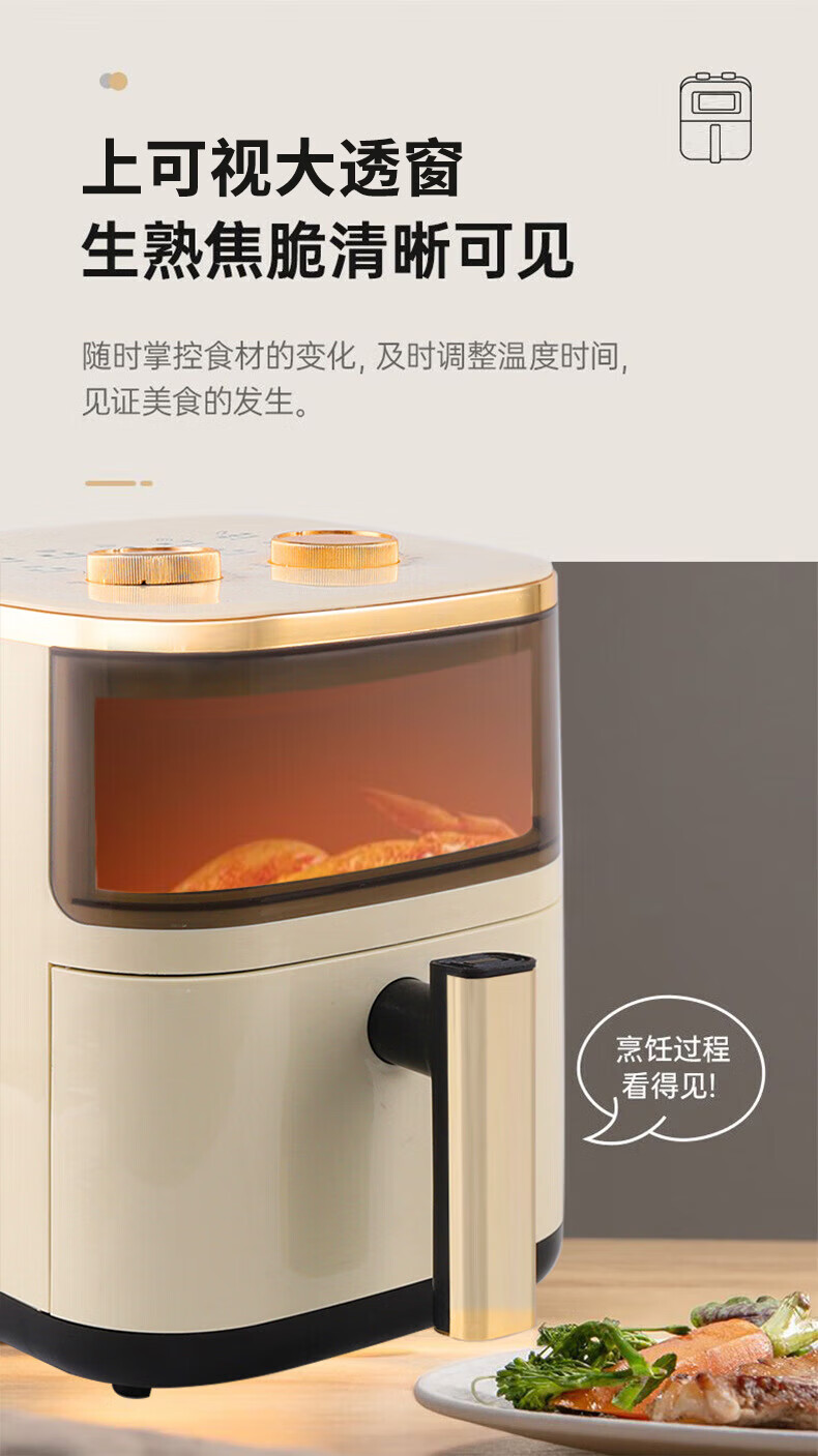 SUBOAER air fryer household visual window 6 liters 10 liters large capacity accurate timing no-turning oil-free electric fryer low-fat non-stick frying pan high-power oven 10L visible model + baking pan (no turning required circulating hot air)
