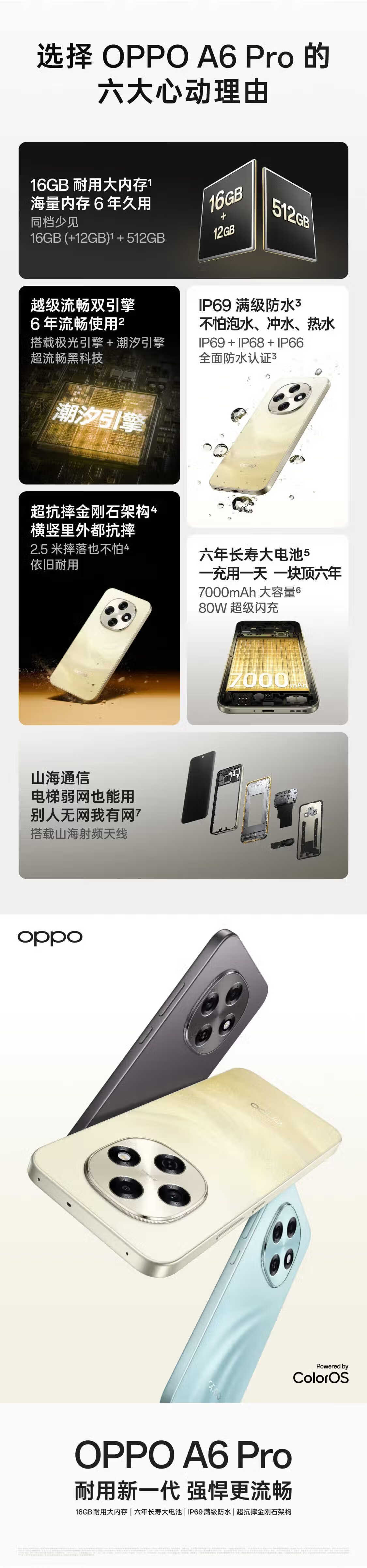 OPPO mobile phone OPPOA6 Pro new 5G mobile phone launched in 2025, interest-free subsidy, leapfrog smooth dual engine, 7000mAh large battery + 80W class flash charging, IP69 waterproof, jet black, 16+256GB, luxury package version + 90 days broken screen insurance + 1 year store extended warranty