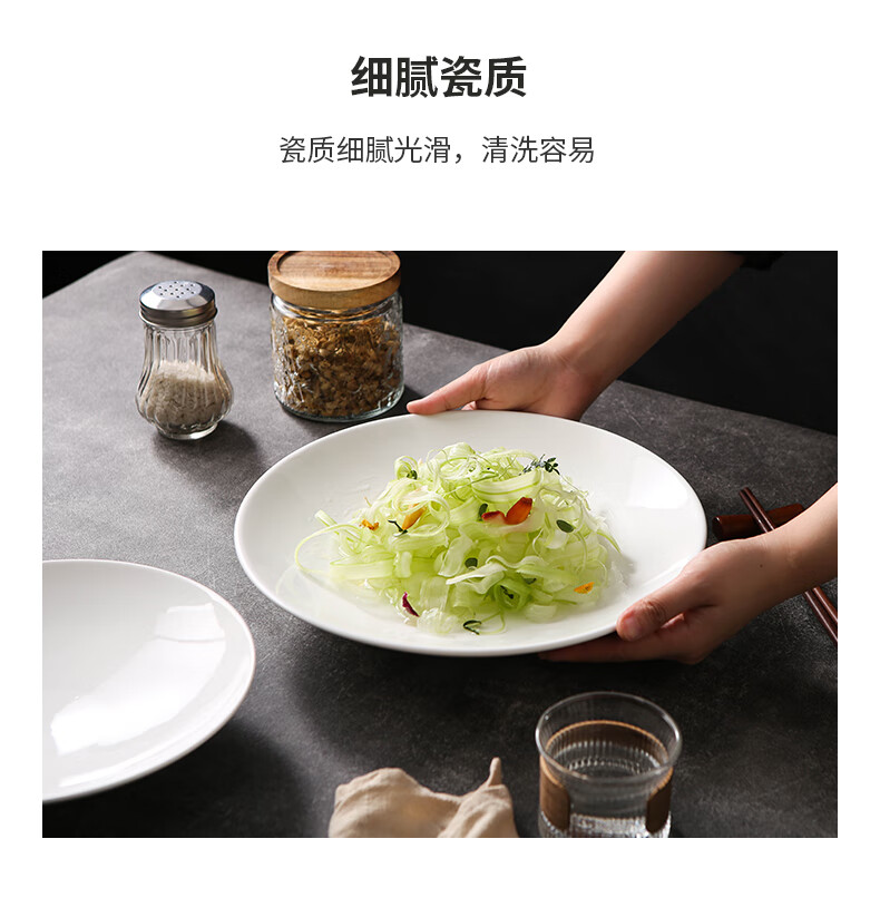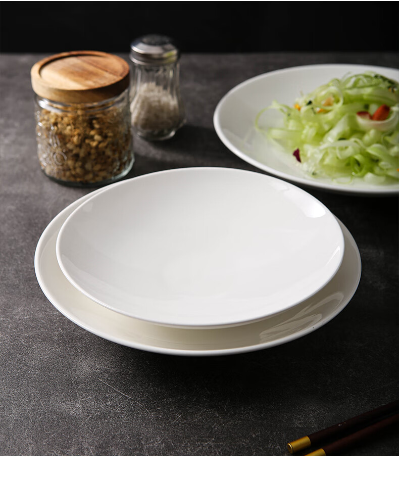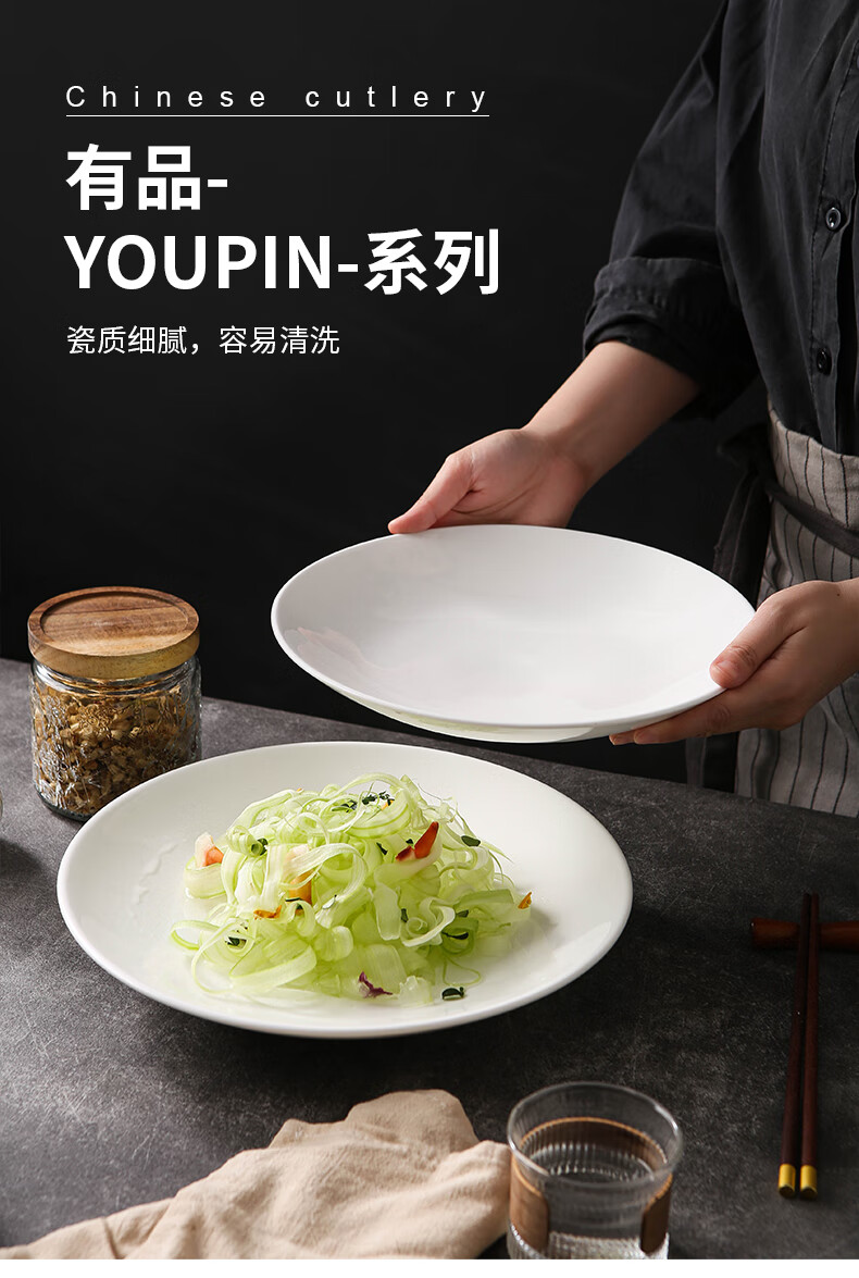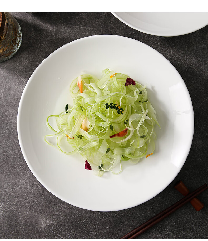 Simple pure white ceramic round soup plate, cold dish plate, Chinese hotel high-end hot dish plate, restaurant tableware, 9-inch Tang-style soup plate-Youpin white porcelain