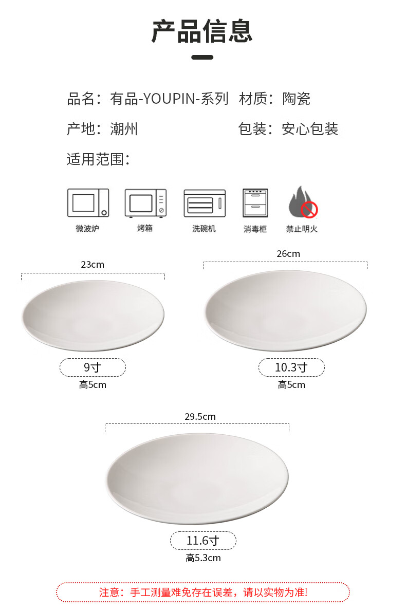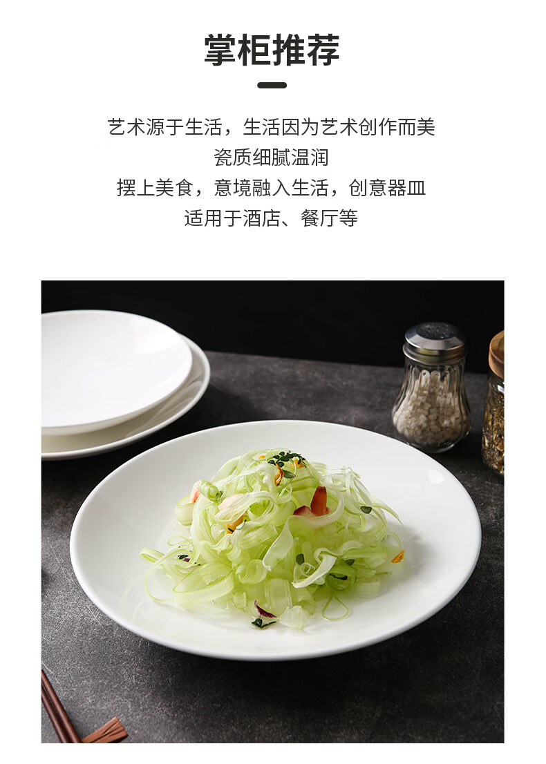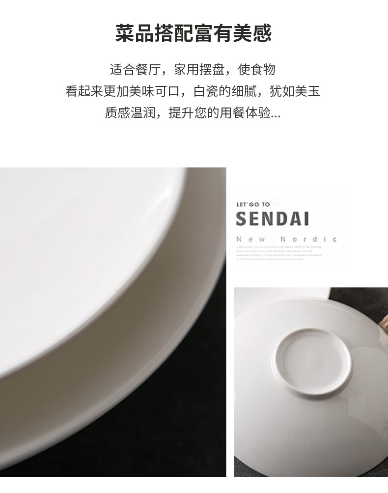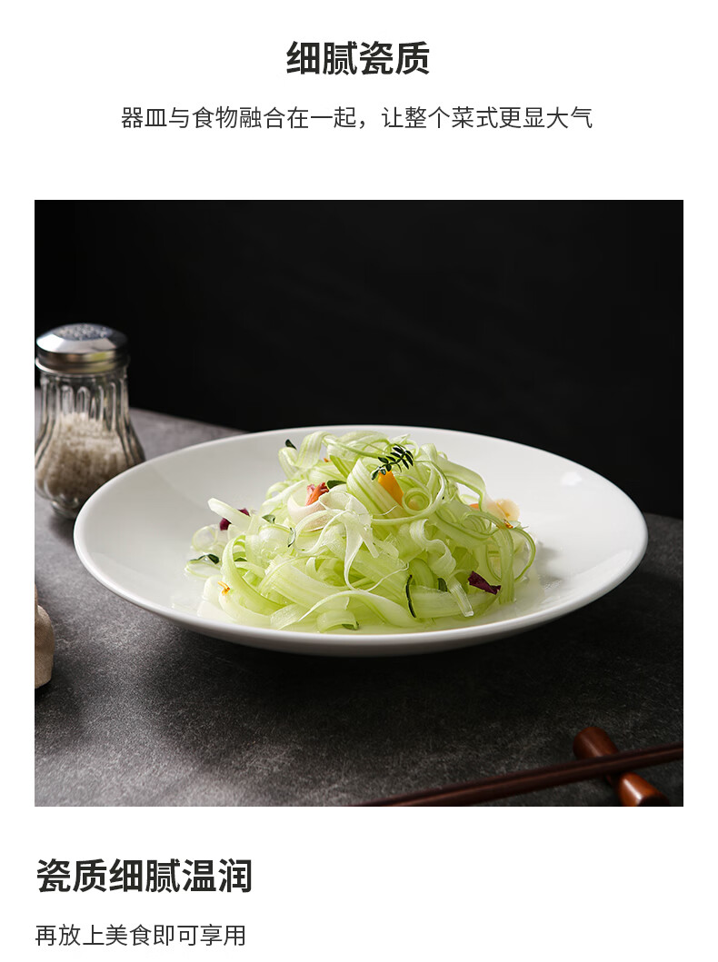 Simple pure white ceramic round soup plate, cold dish plate, Chinese hotel high-end hot dish plate, restaurant tableware, 9-inch Tang-style soup plate-Youpin white porcelain
