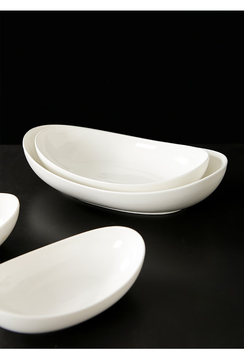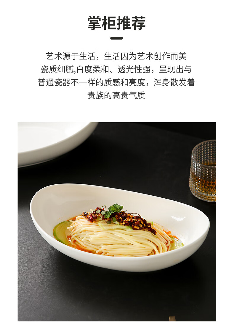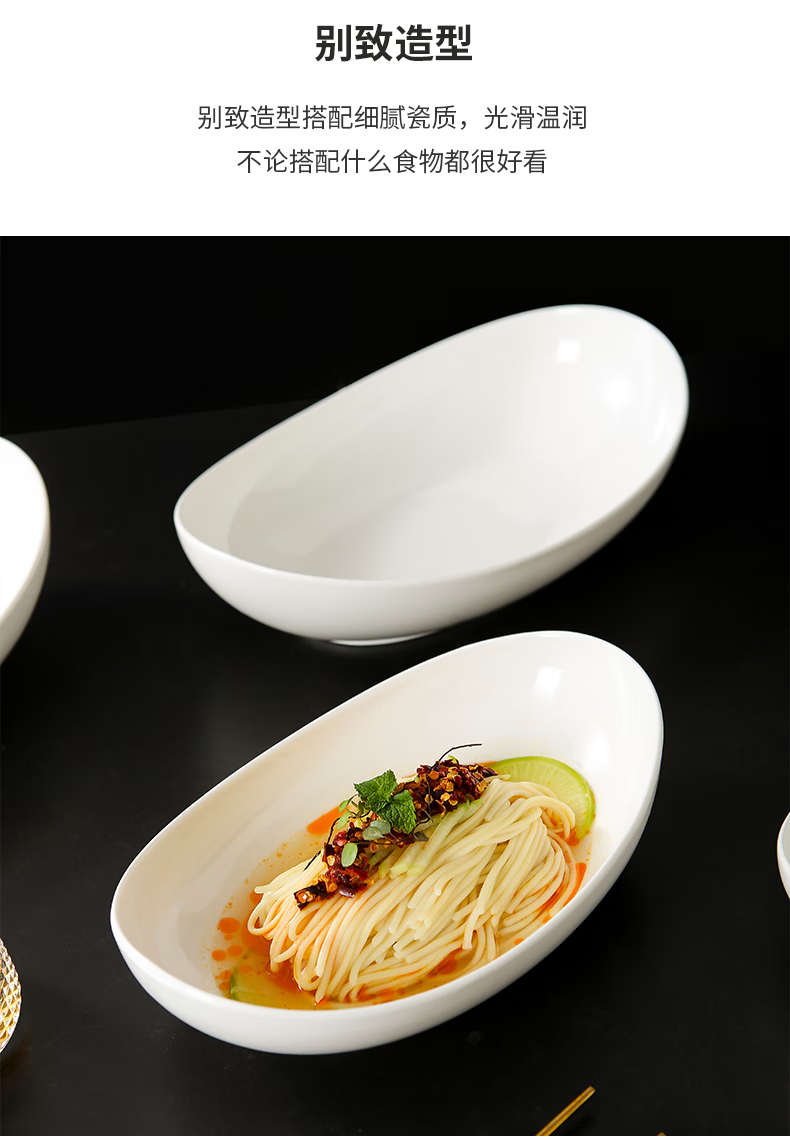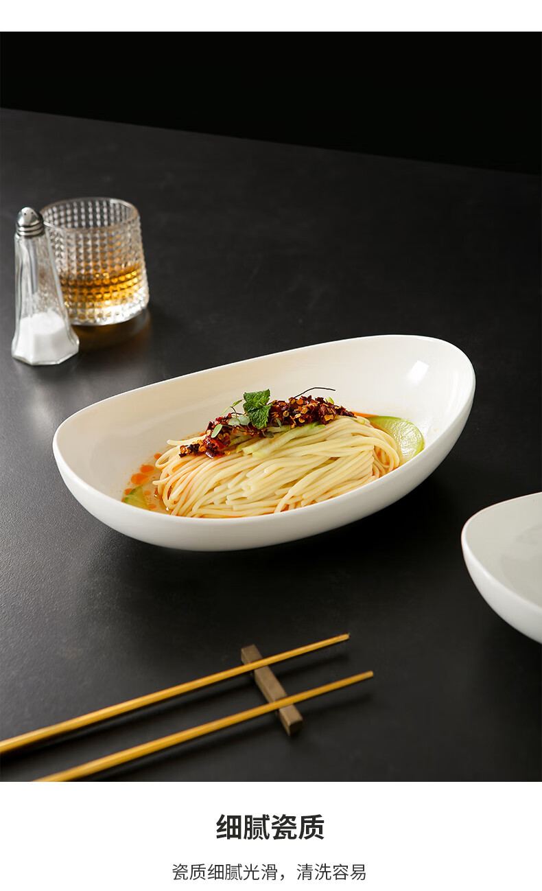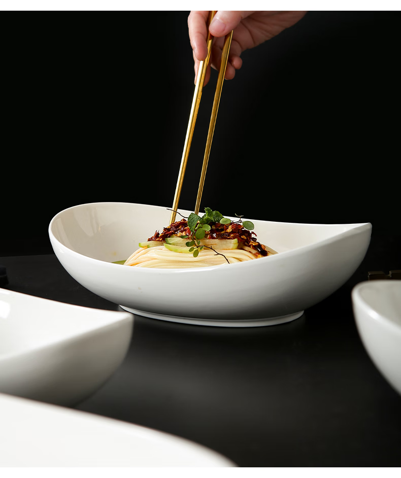 Special-shaped oval deep plate Yuanbao plate commercial household white ceramic cold noodle bowl hotel restaurant special plate 8-inch Qiyuan oval bowl-white porcelain