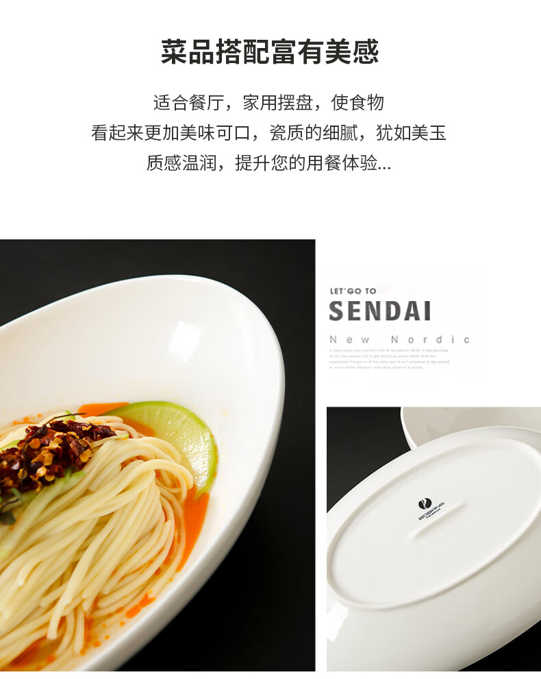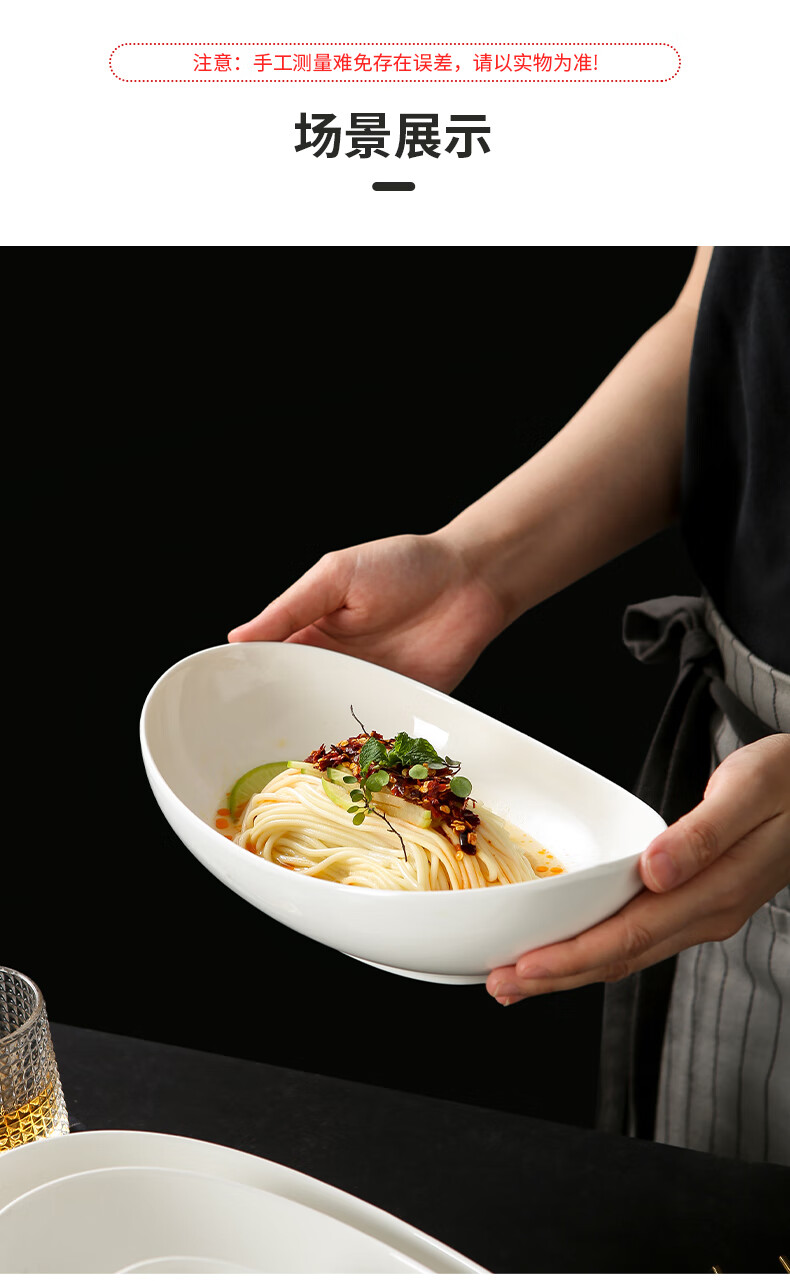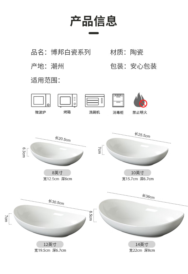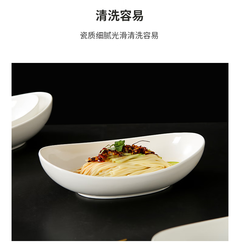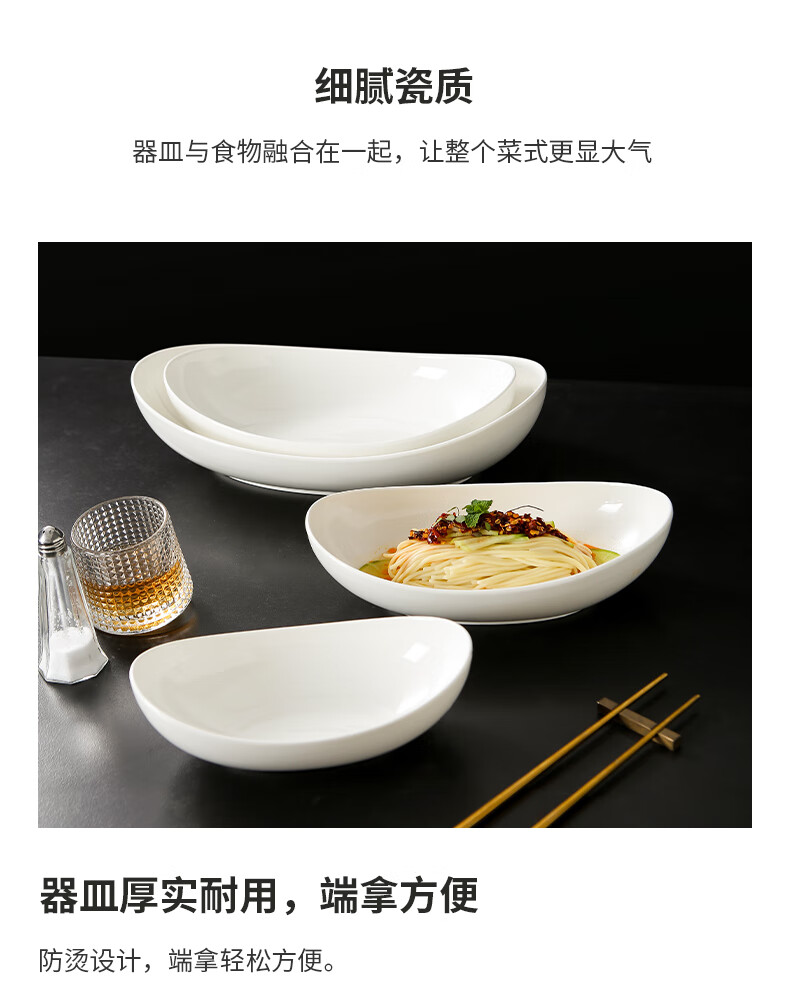 Special-shaped oval deep plate Yuanbao plate commercial household white ceramic cold noodle bowl hotel restaurant special plate 8-inch Qiyuan oval bowl-white porcelain