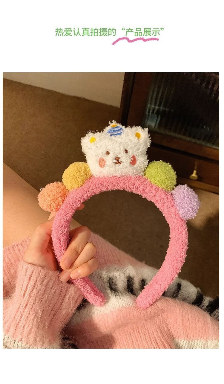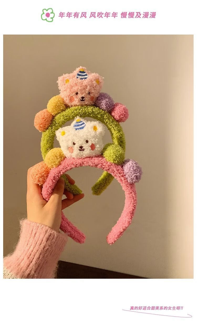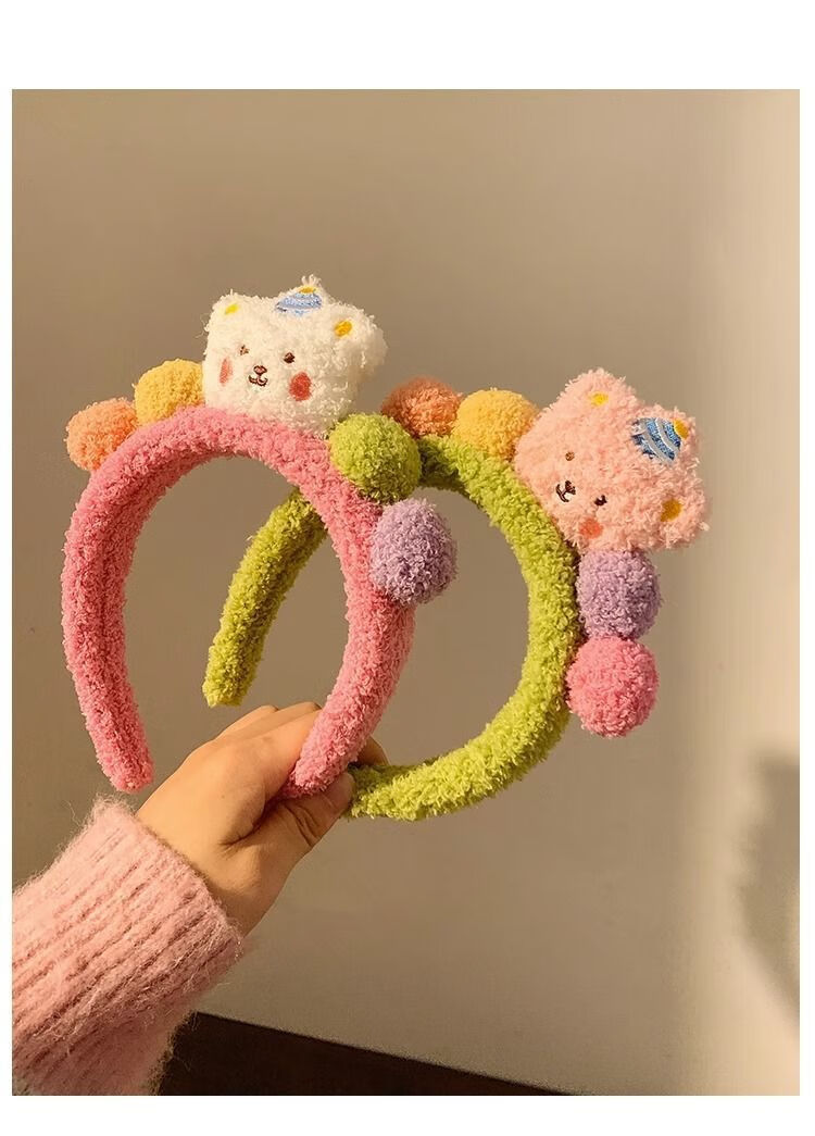 Cute Bear Headband Autumn and Winter Plush Washing Headband Cute Colorful Cartoon Headband Girl Versatile Hairpin Rice Powder Pudding Bear Headband