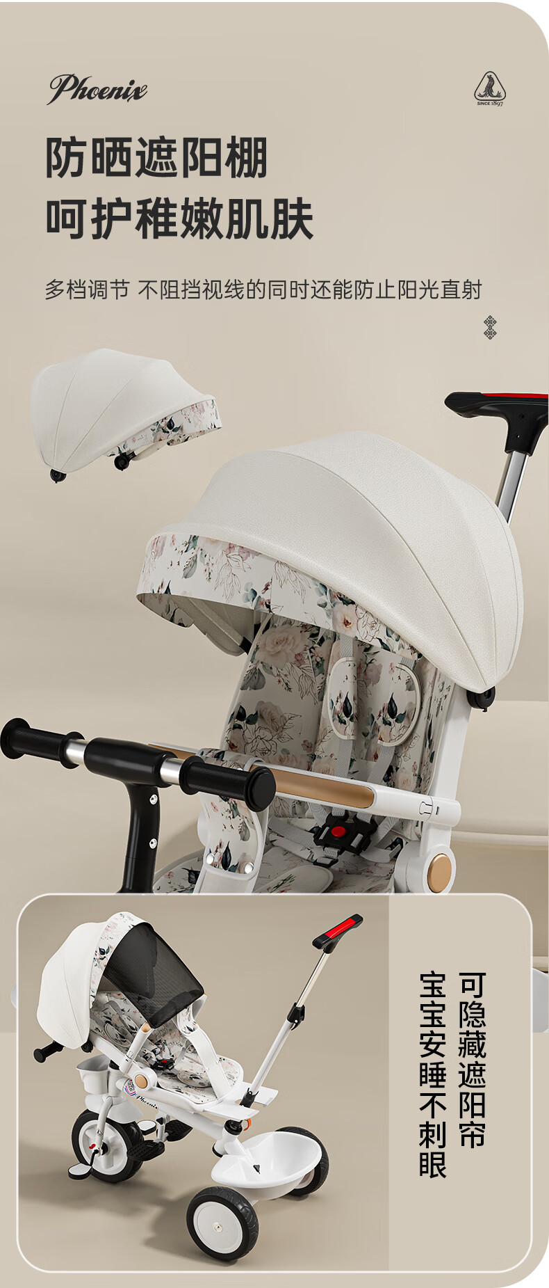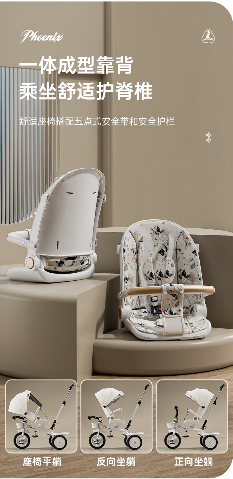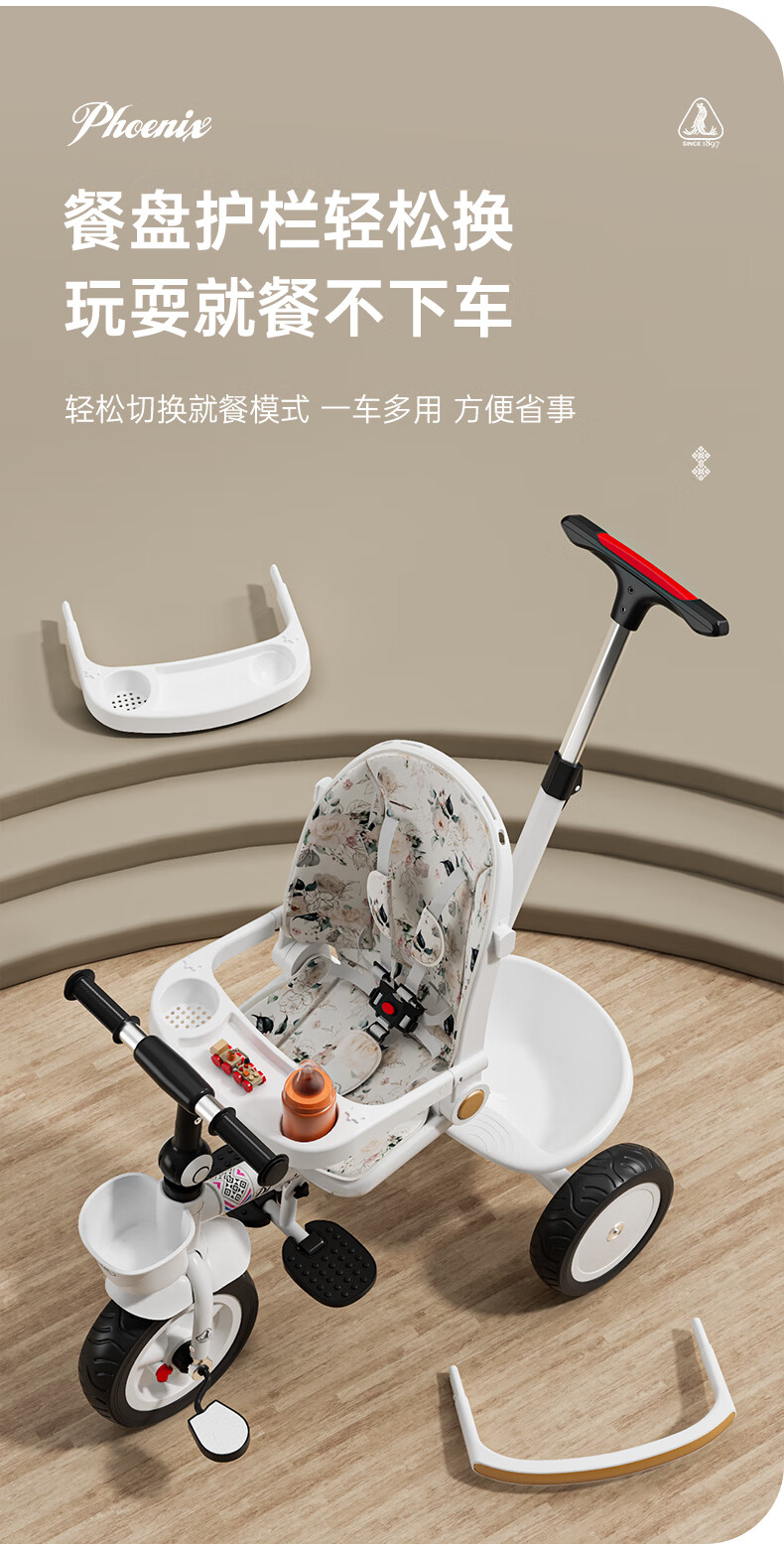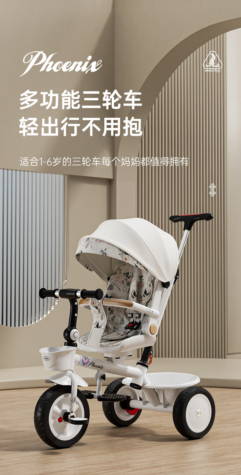 Phoenix children's tricycle bicycle 1-3-6 years old large baby stroller baby bicycle D Phoenix champagne color reclining sunshade footrest dinner plate