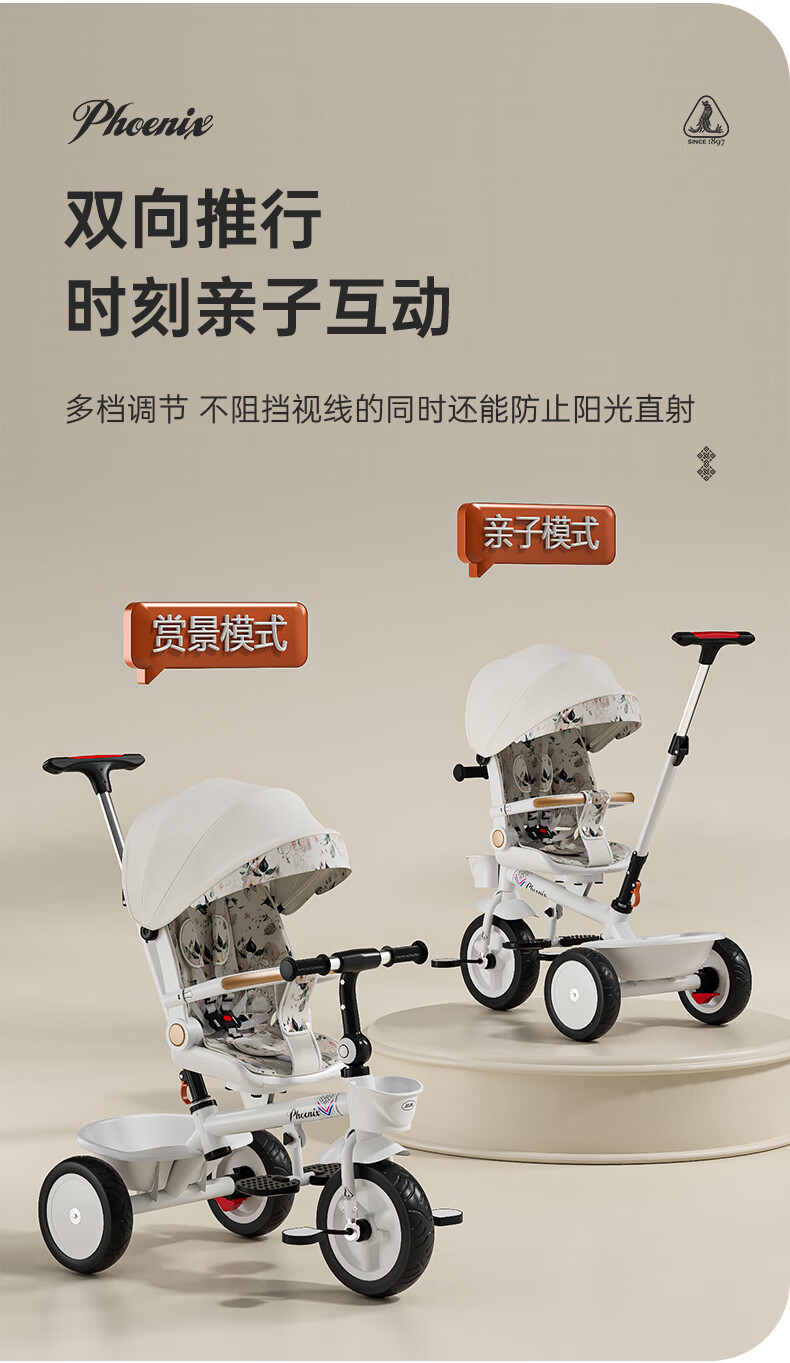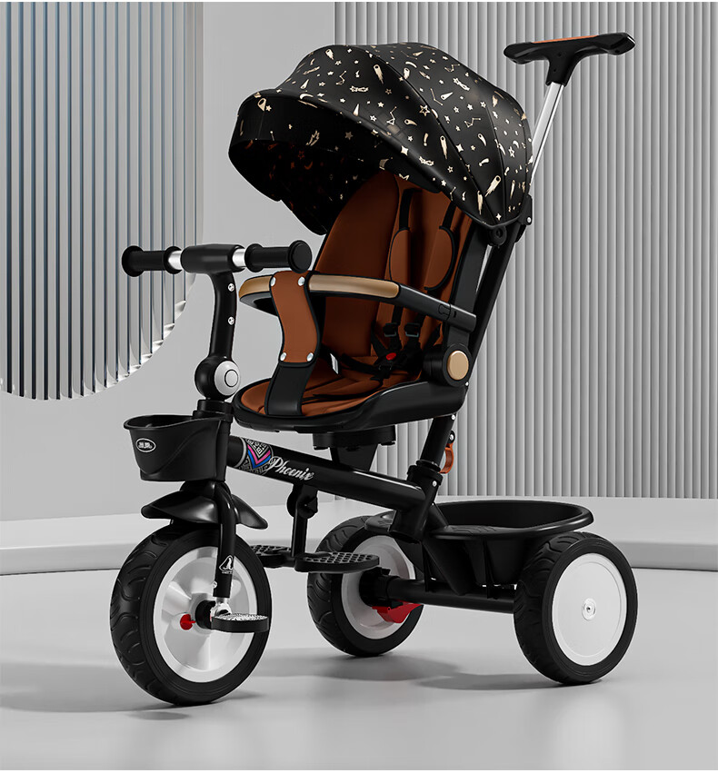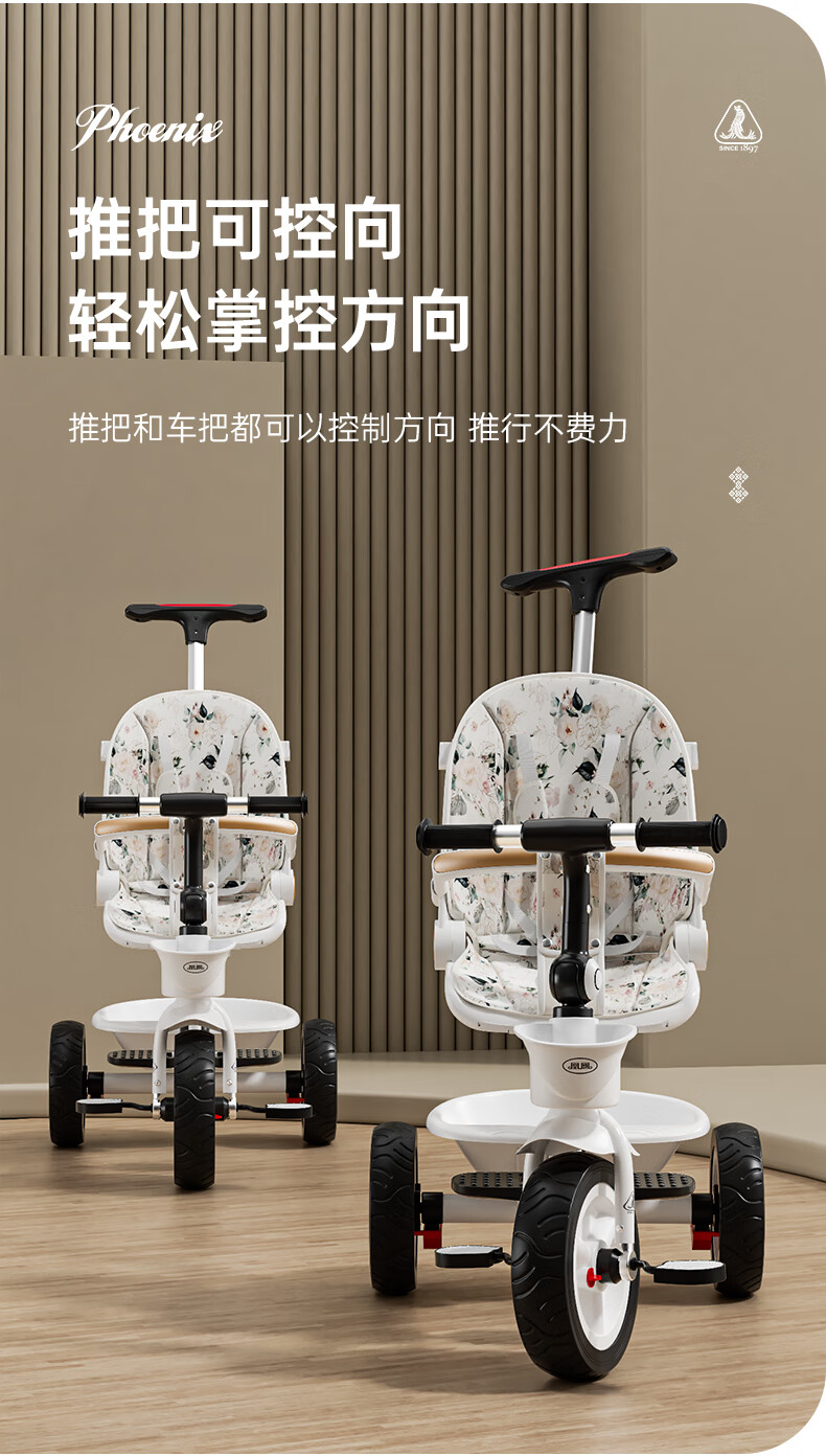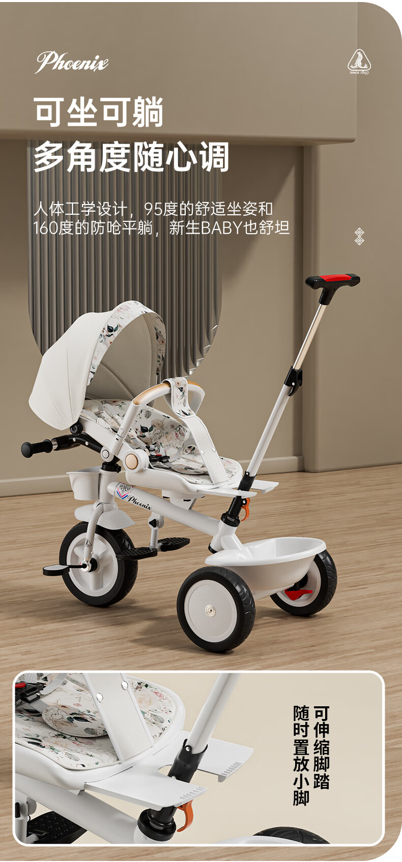 Phoenix children's tricycle bicycle 1-3-6 years old large baby stroller baby bicycle D Phoenix champagne color reclining sunshade footrest dinner plate