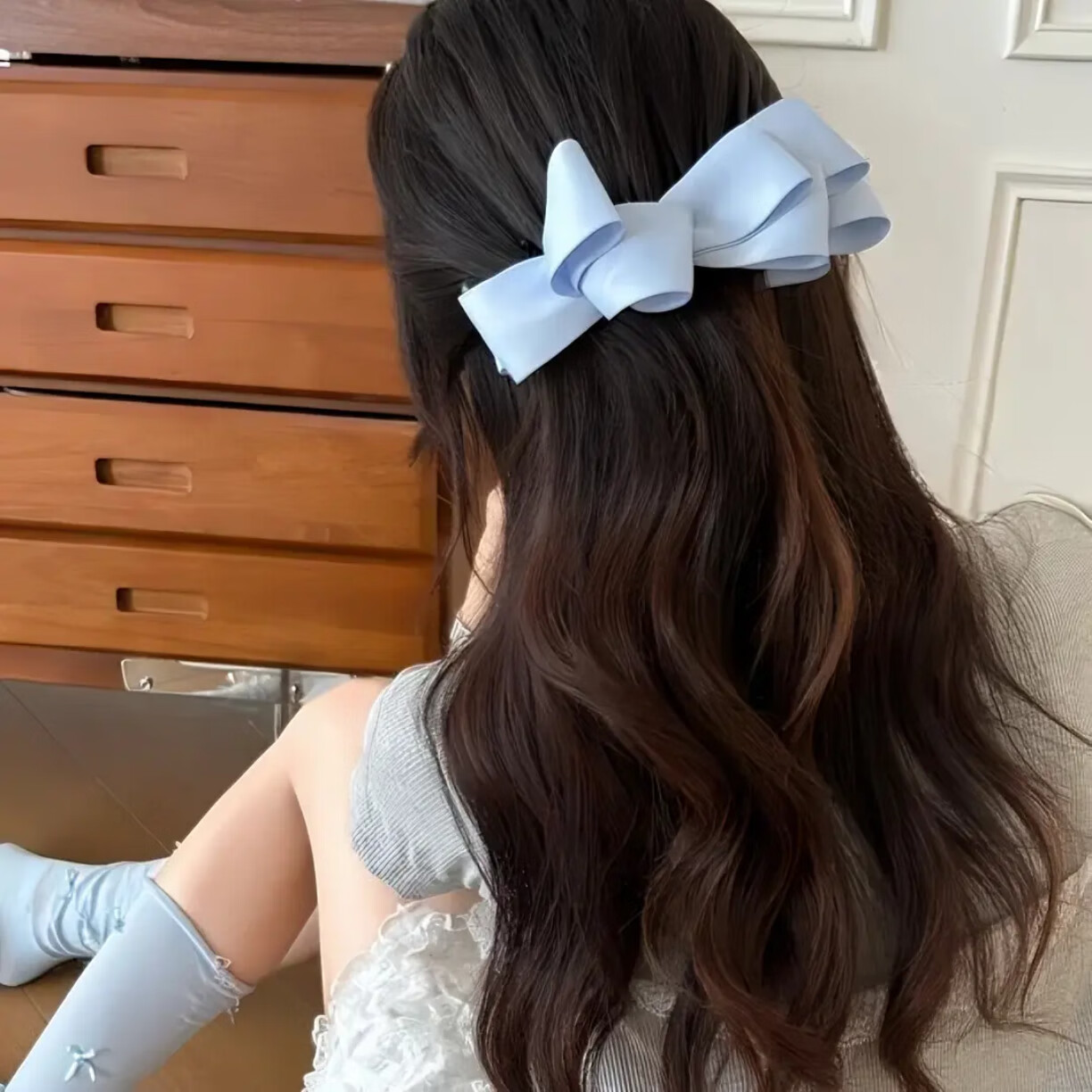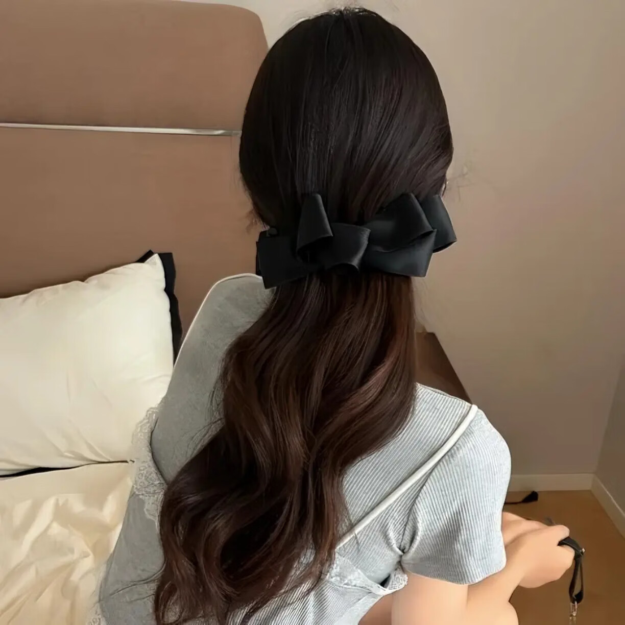 Retro Satin Bow Banana Clip Hairpin High Ponytail Twist Vertical Clip Hair Claw High-end Hair Accessories Black