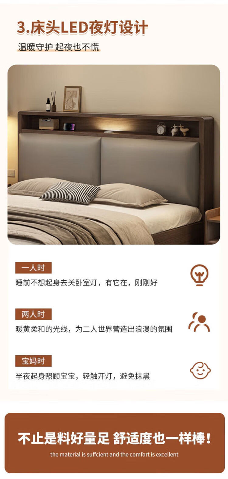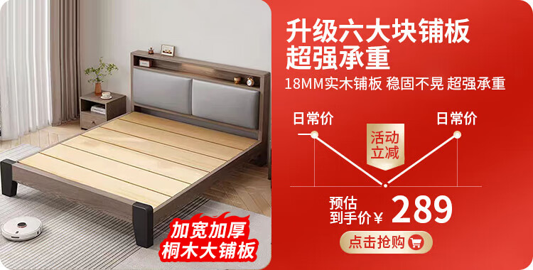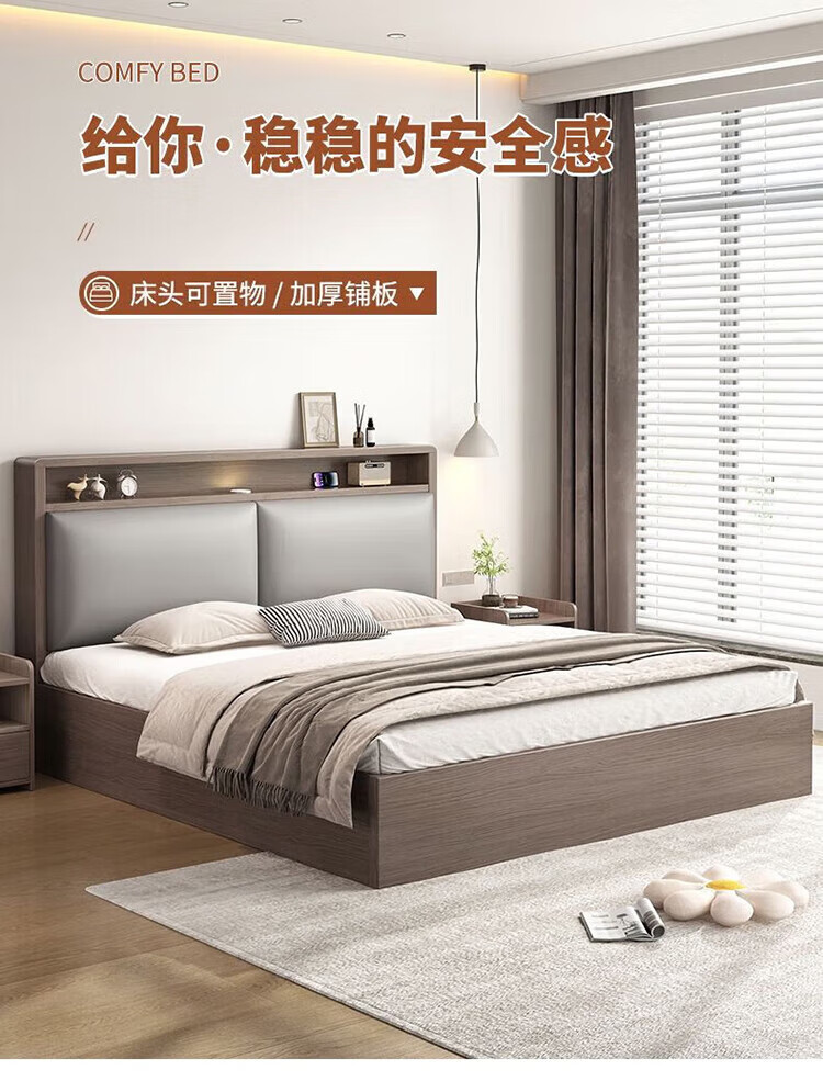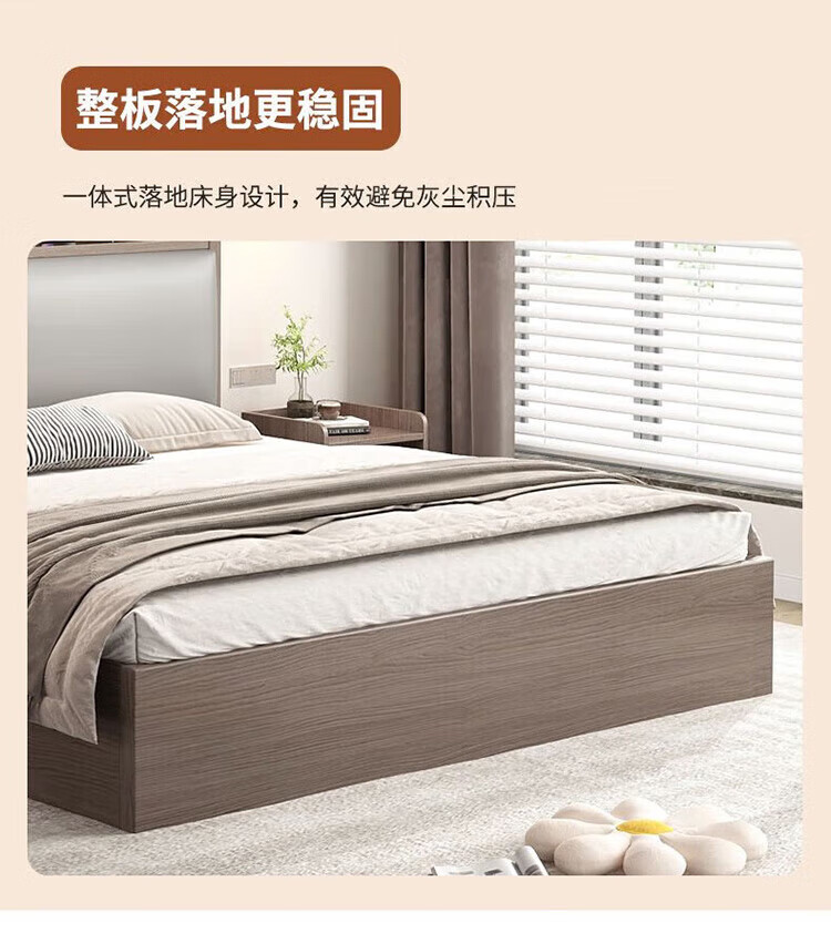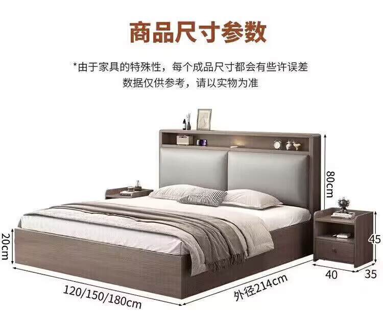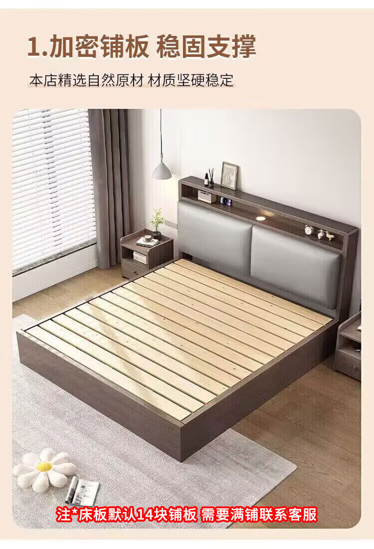 Shengfeile bed solid wood bed 1.8m x 2m double bed home 1.5m x 2m bed rental house bed single bed oak gray single bed 1.5m x 2m