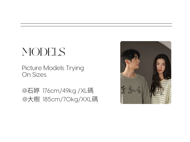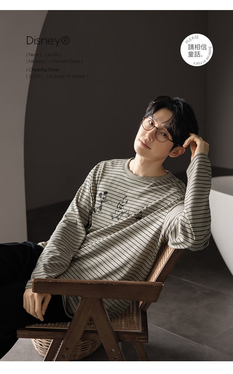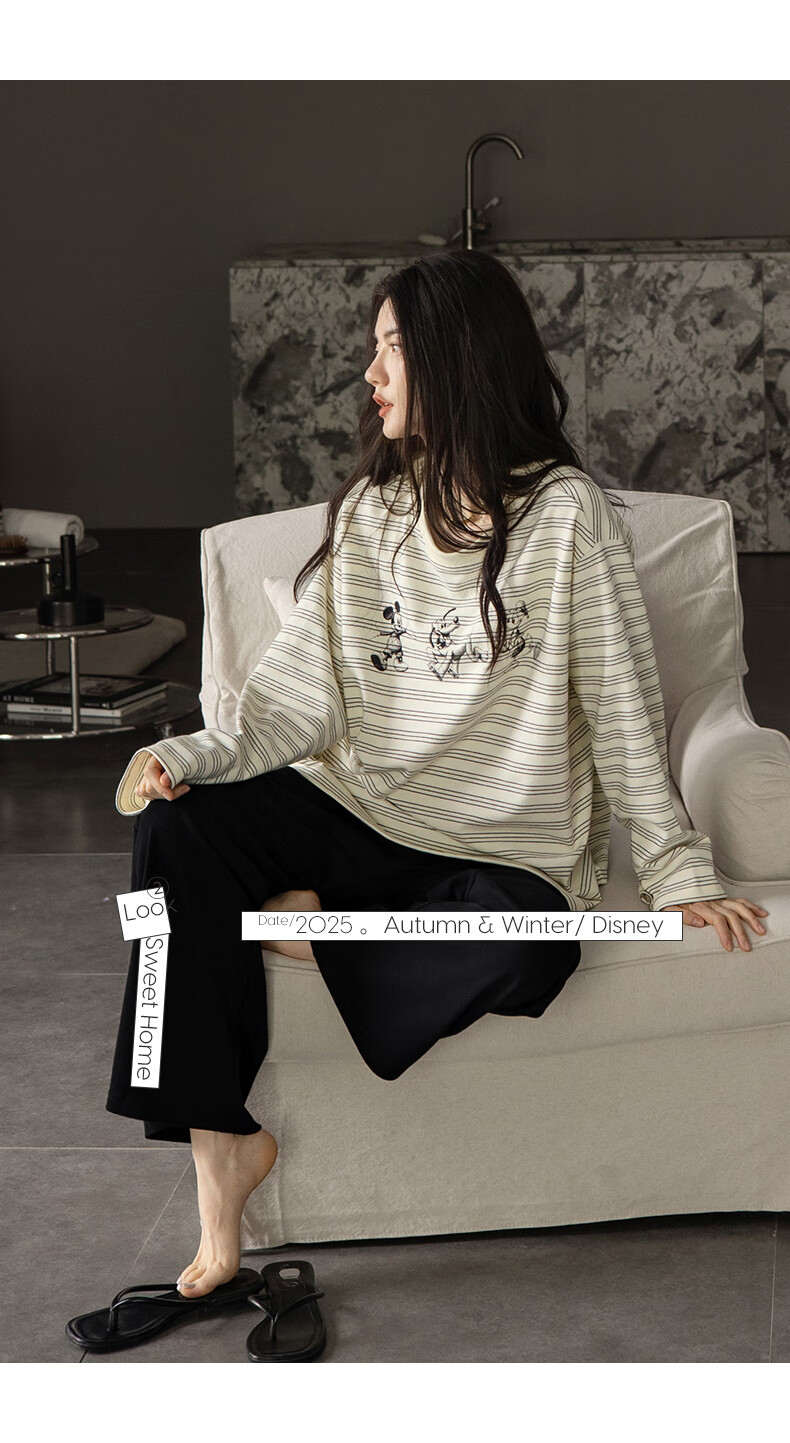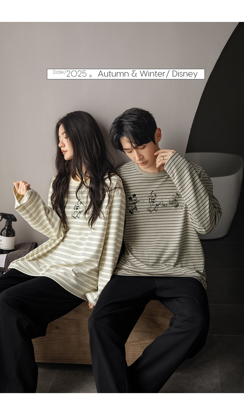 Beiyan couple pajamas for men and women new spring and autumn soft cotton long-sleeved large size suit cartoon striped home clothes can be worn outside C20967 Women's L