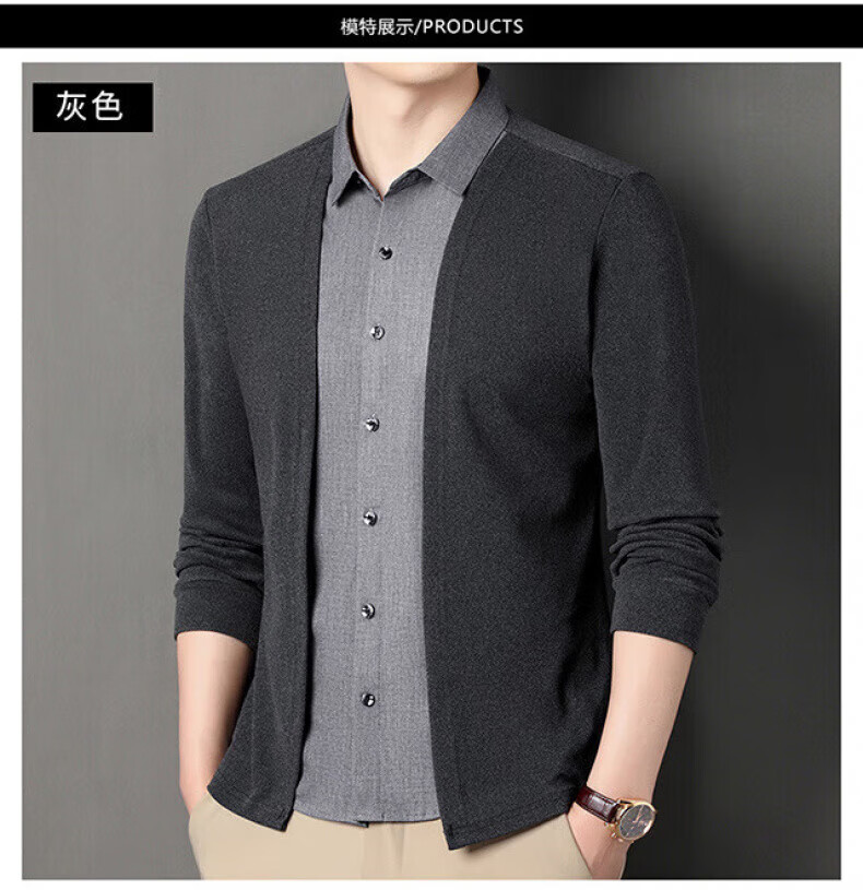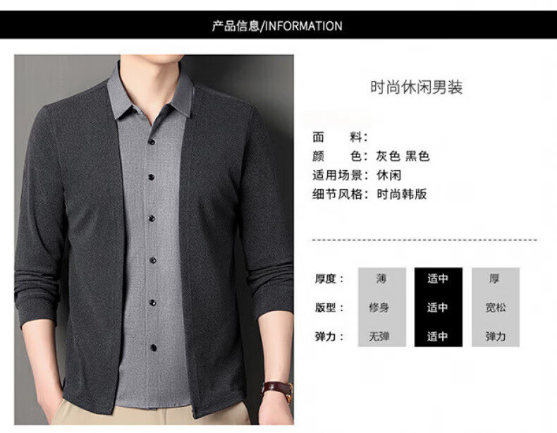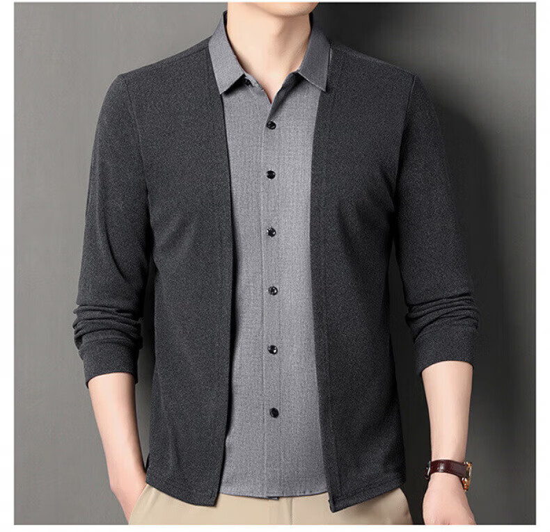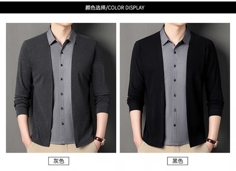 XJSGS international luxury high-end brand men's sweater spring and autumn new fake two-piece casual business sweater bottoming shirt high-end black ready stock XL recommended weight 135-150Jin Jin equals 0.5 kg