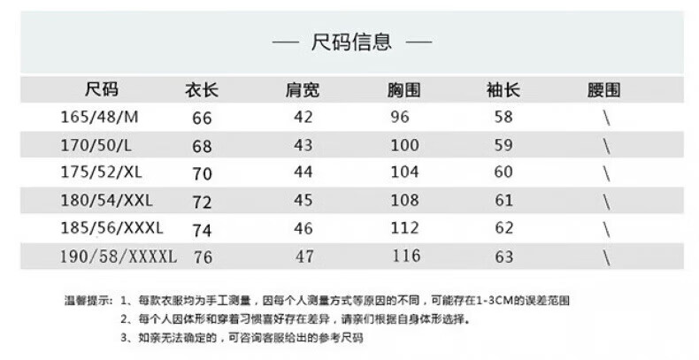 China (cm) 165 / 88-90 170 / 96-98 175 / 108-110 180 / 118-122 185 / 126-130