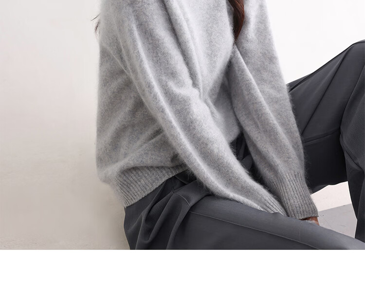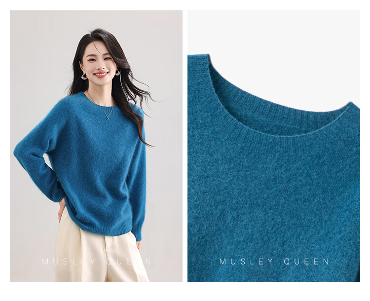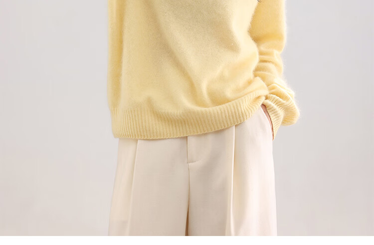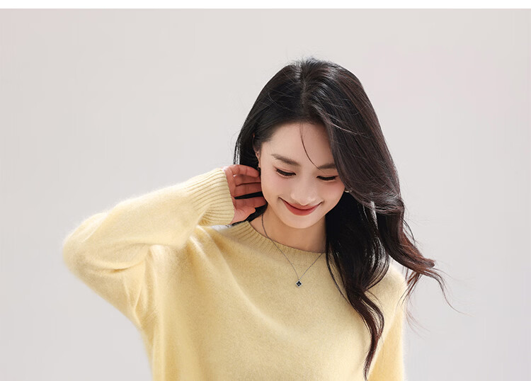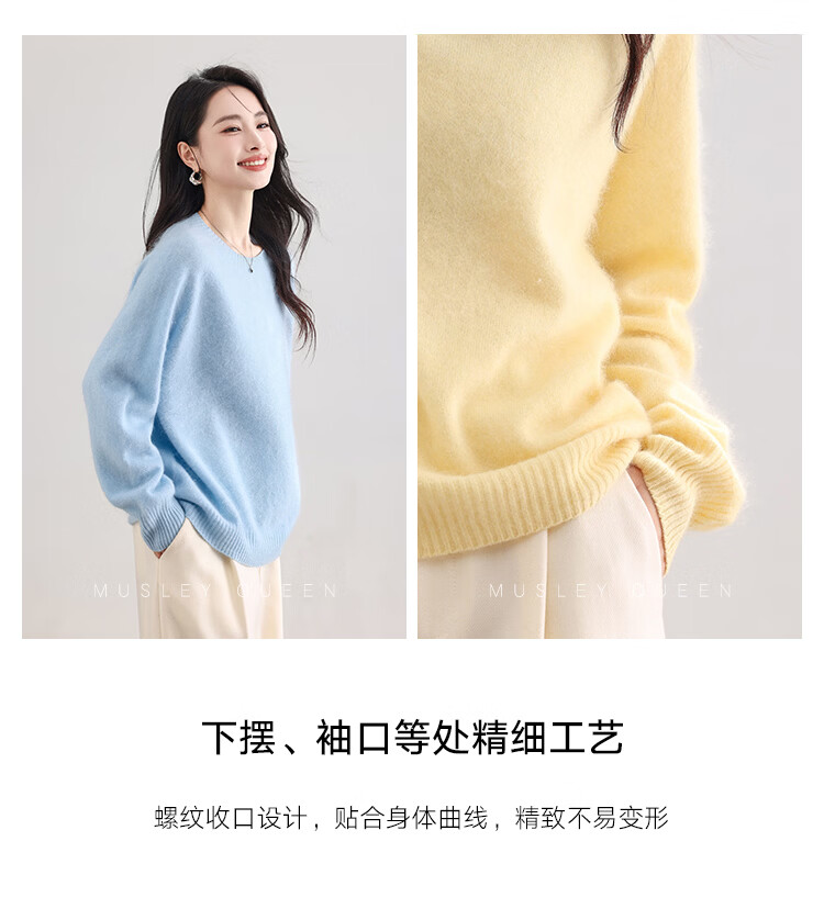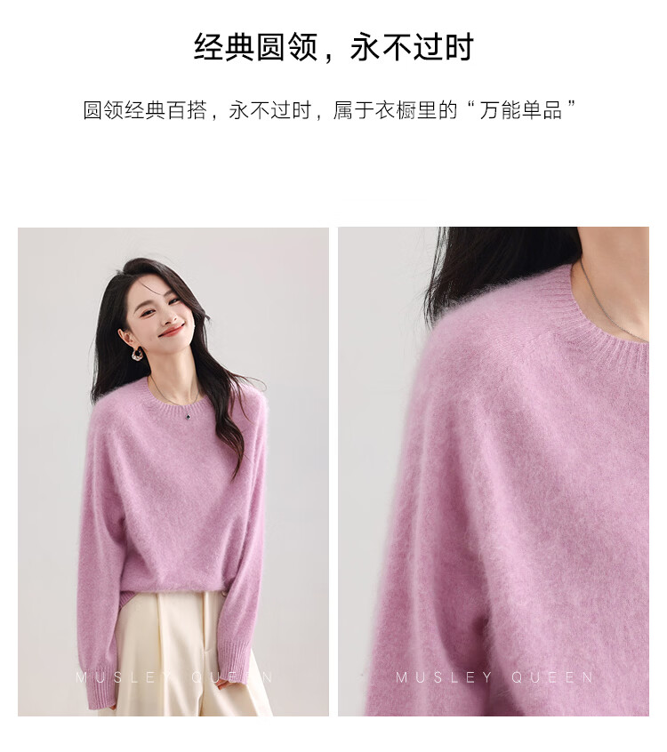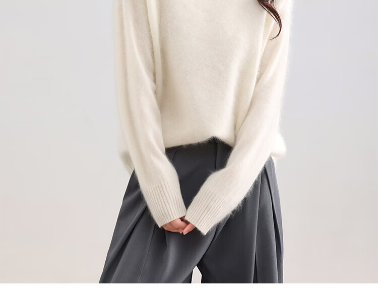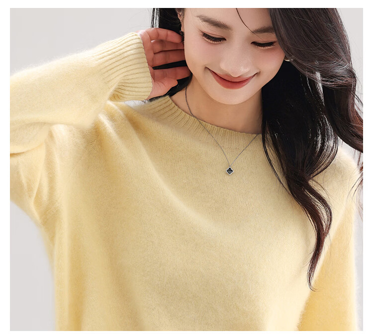 |MM Cashmere Wool Sweater Women's Round Neck 25 Autumn and Winter New Versatile Loose Relaxed Lazy Seamless Solid Color Sweater Feather White One Size