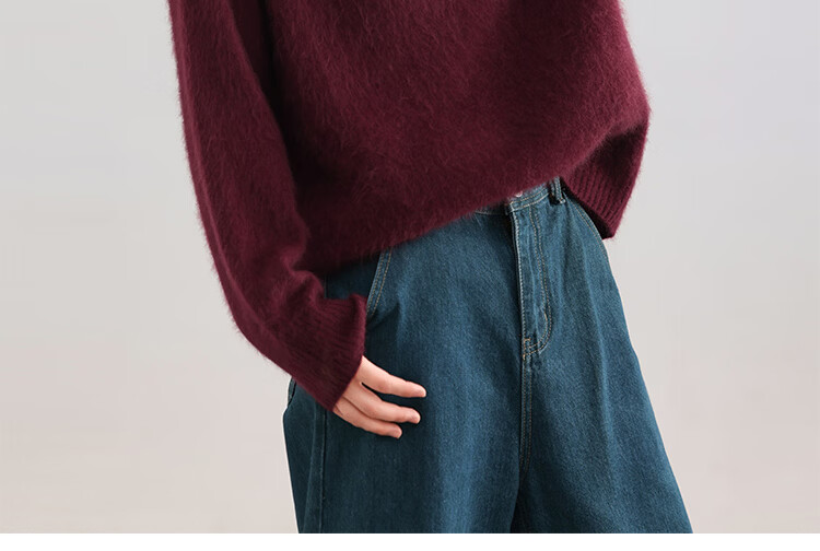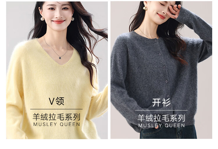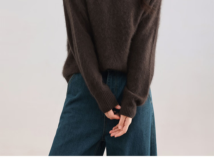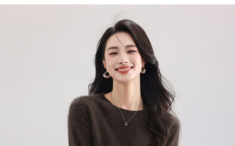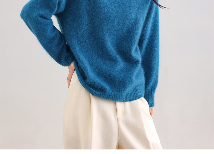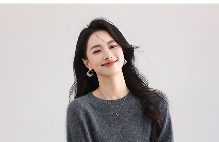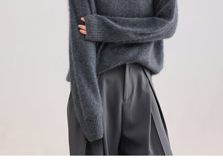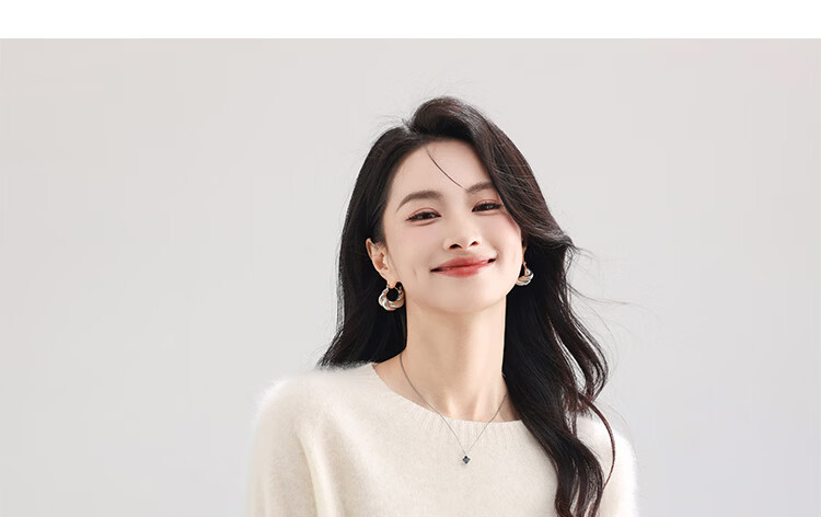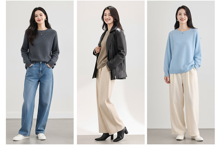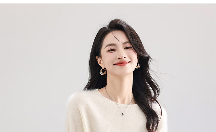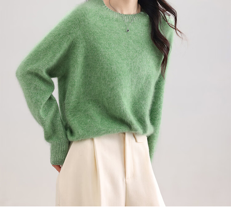 |MM Cashmere Wool Sweater Women's Round Neck 25 Autumn and Winter New Versatile Loose Relaxed Lazy Seamless Solid Color Sweater Feather White One Size