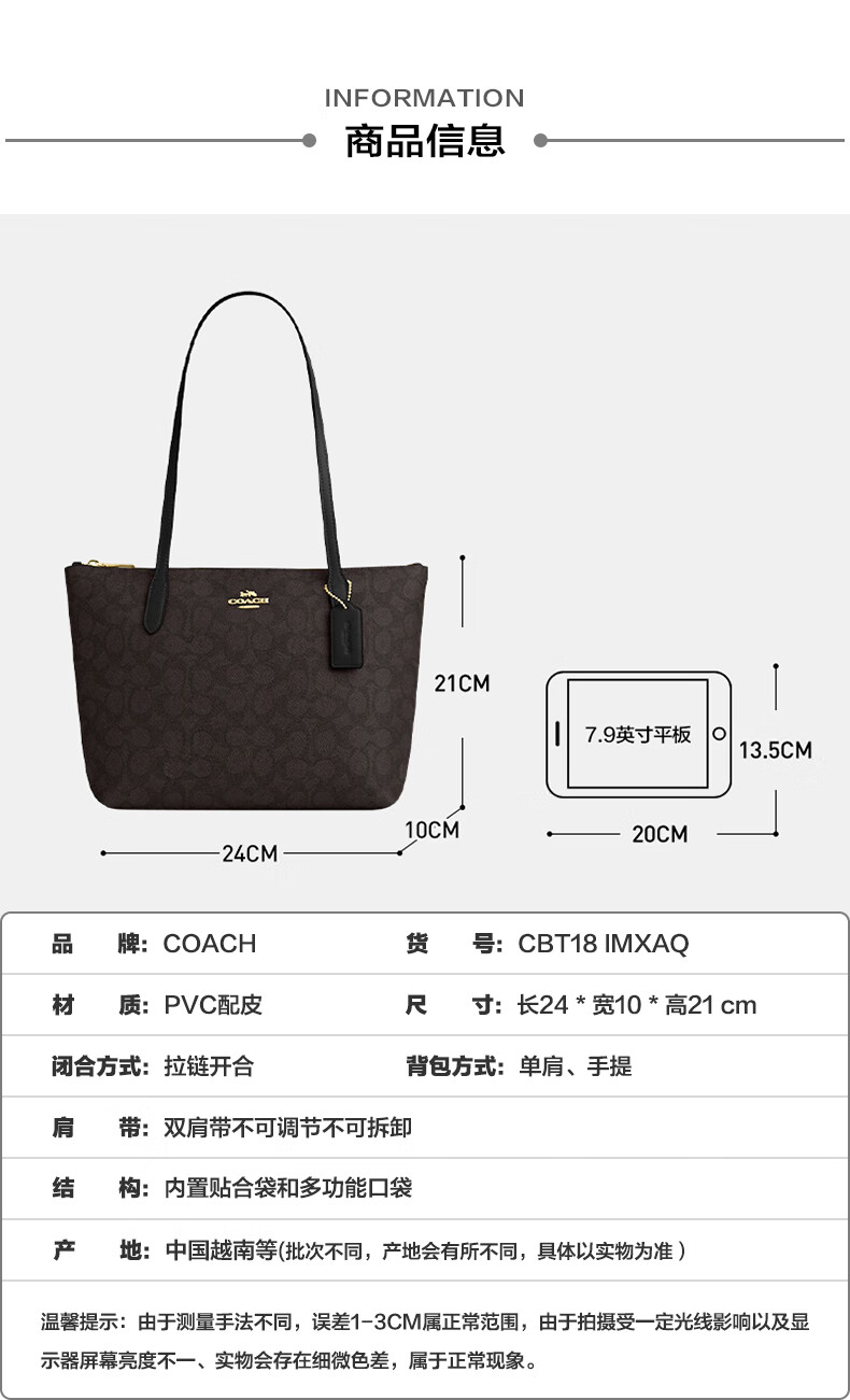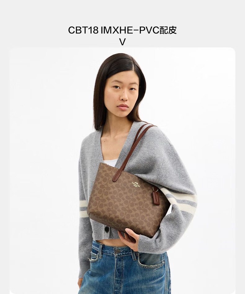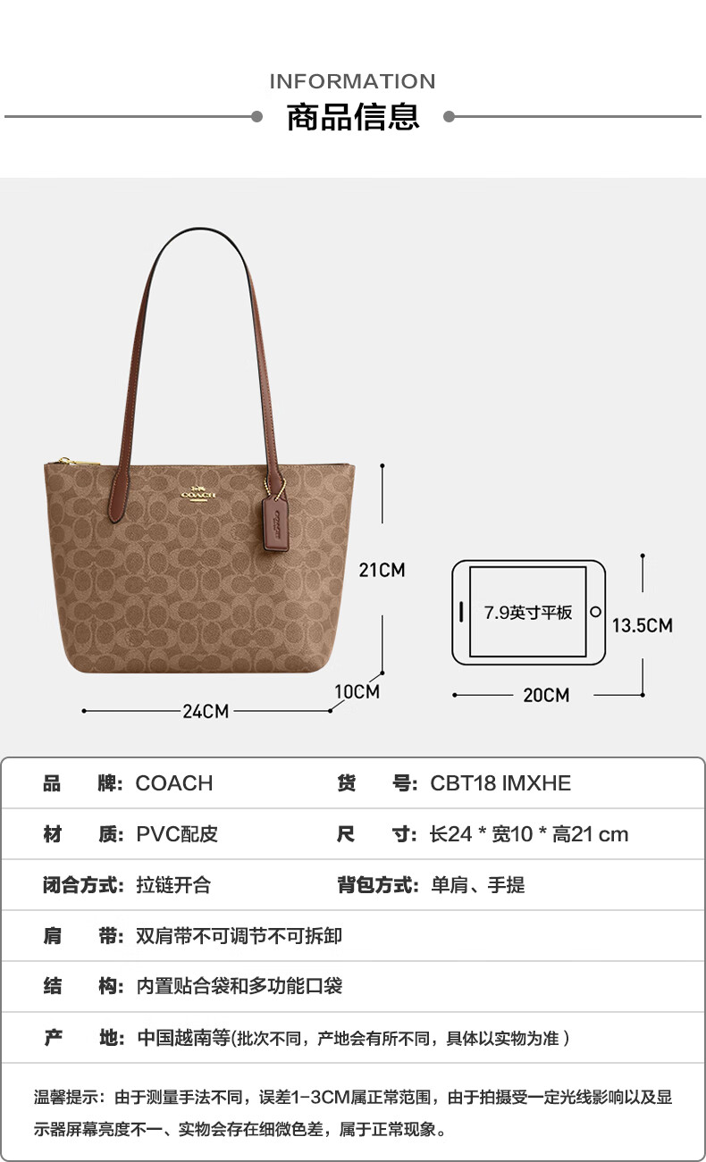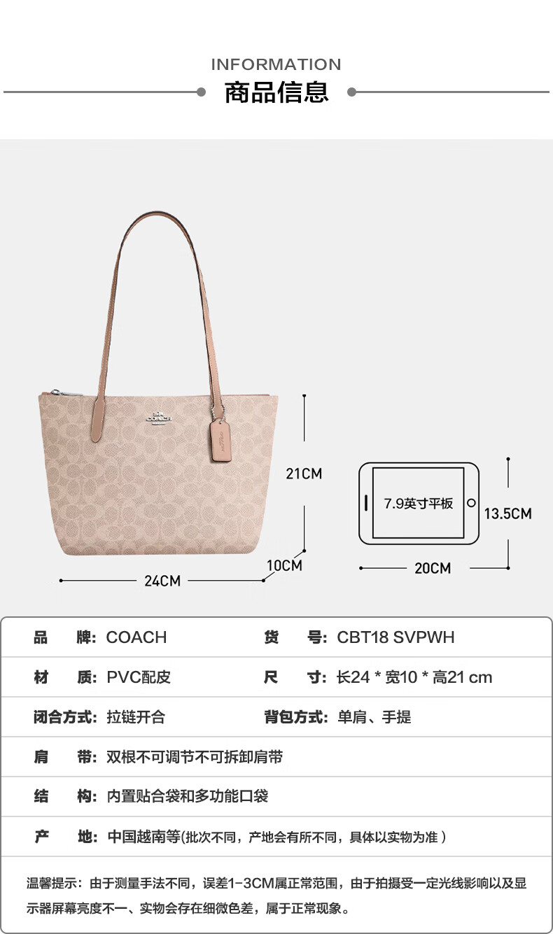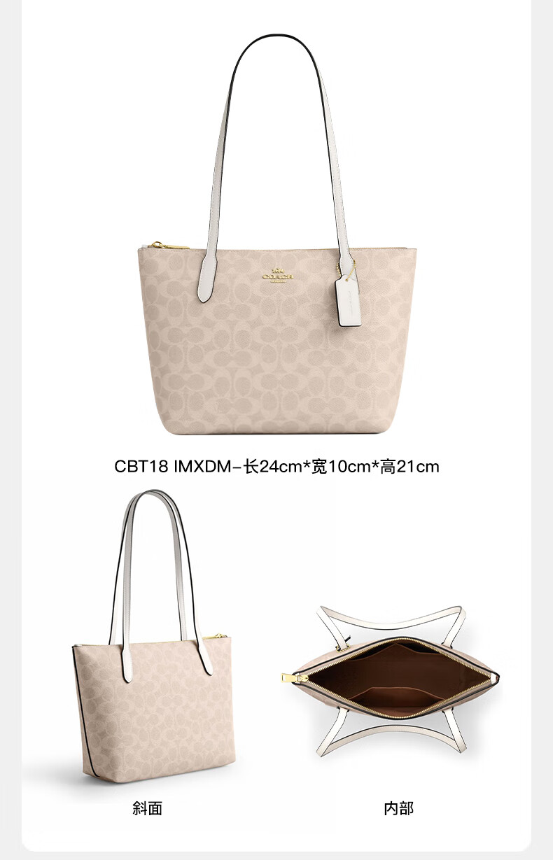 COACH Women's Bag New Fiona 24 Small Tote Bag Handbag Shoulder Bag Commuter Bag Authenticity Guaranteed Khaki White CBT18 IMXDM