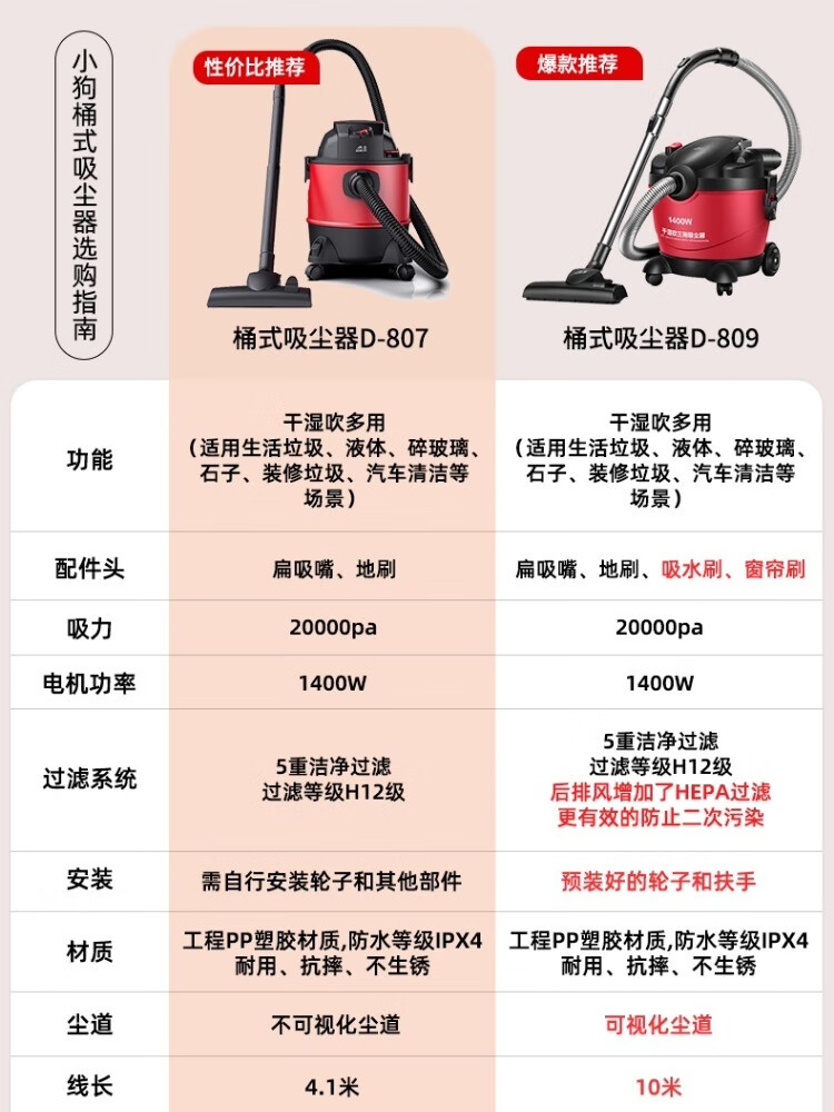 Puppy vacuum cleaner barrel type wet and dry dual-use multi-functional household high-power strong suction vacuum cleaner hair dryer sweeper cleaning machine artifact small appliance home gift for parents D-807 luxury model D-807 light volume/20L large capacity
