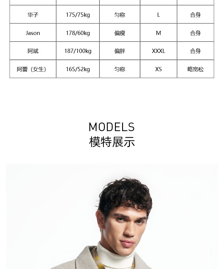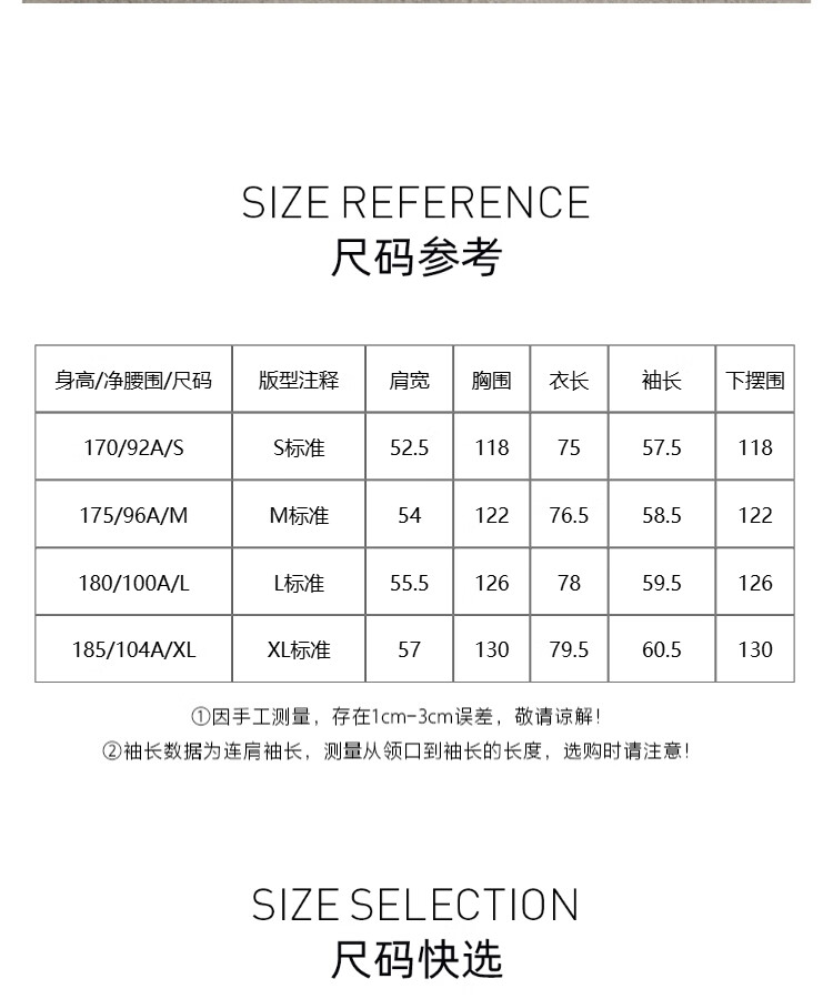 China (cm) 165 / 88-90 170 / 96-98 175 / 108-110 180 / 118-122 185 / 126-130