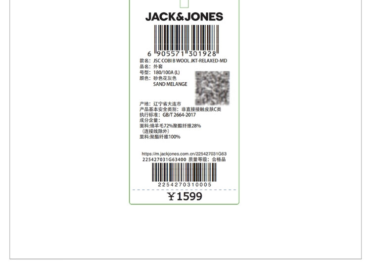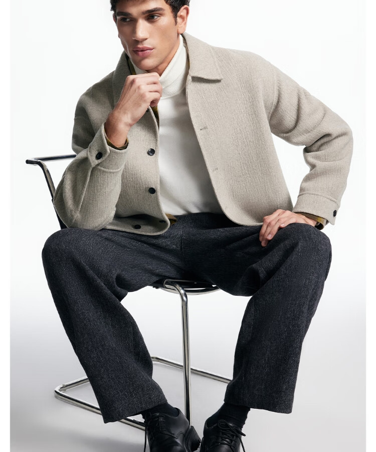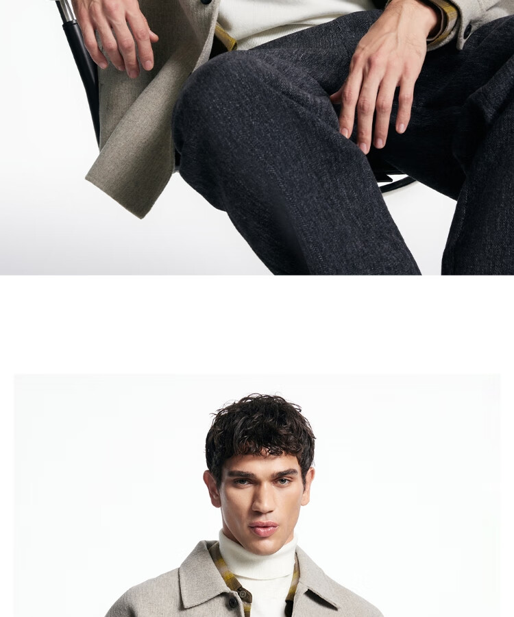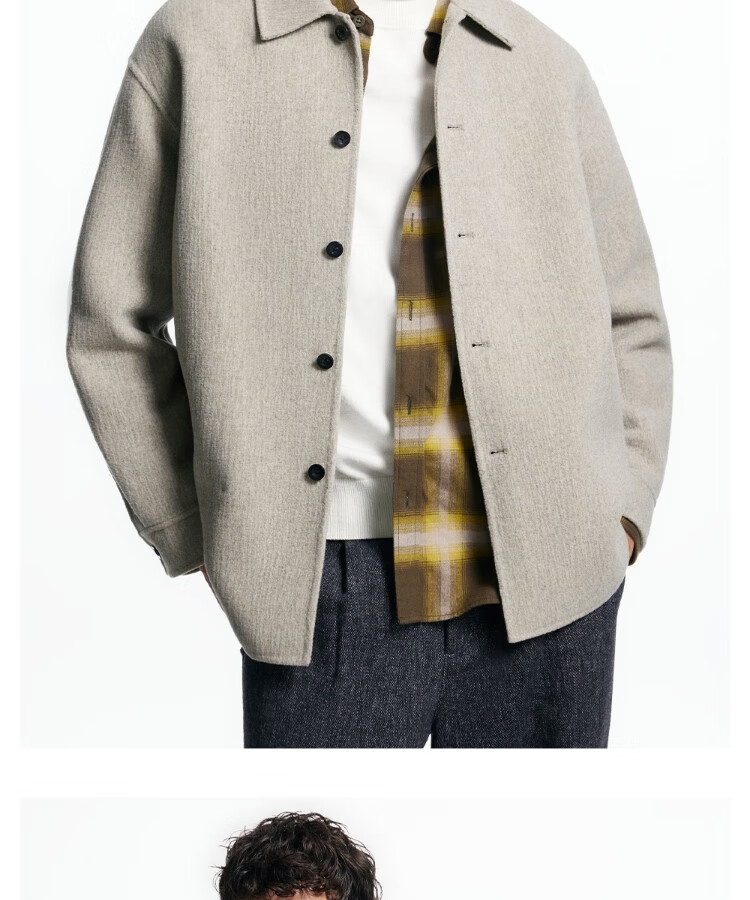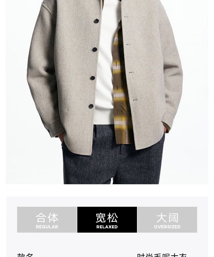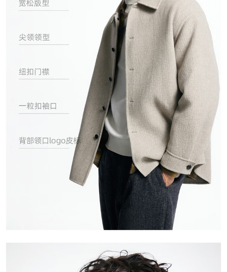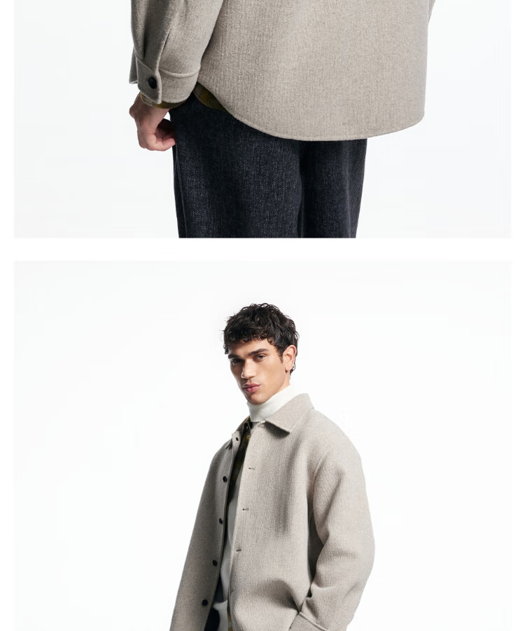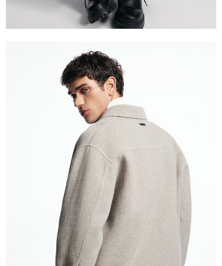 JACK&JONES men's woolen coat, fashionable and versatile, washed long-sleeved loose pointed collar trendy top 225427031 G63 sand floral gray regular M (175)