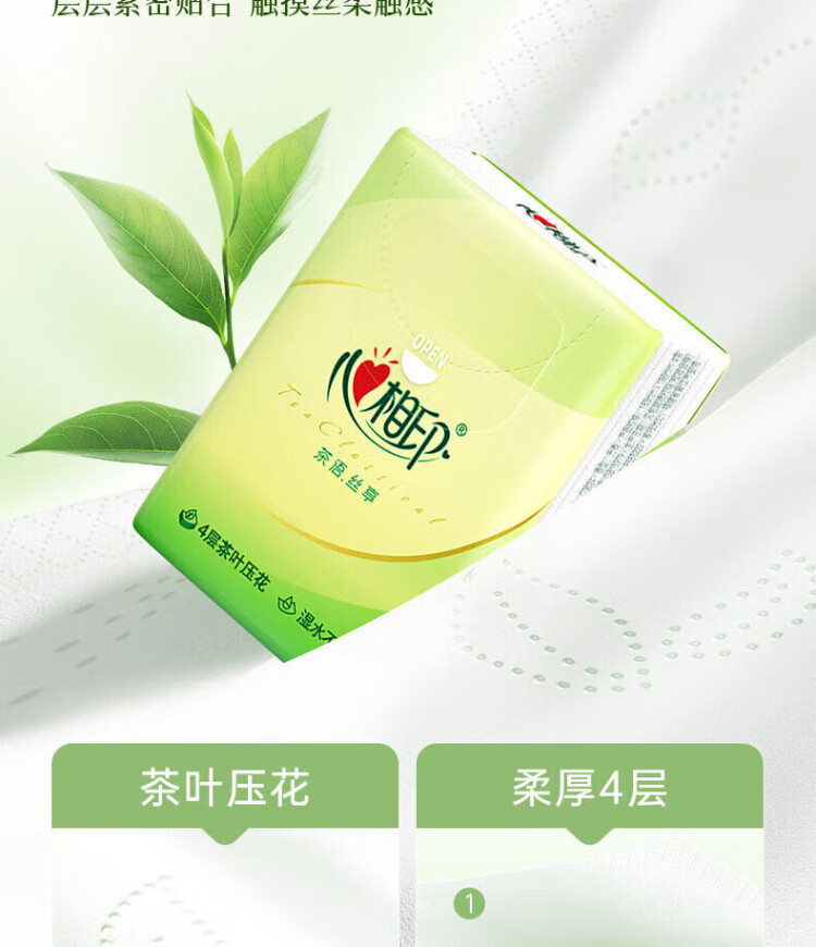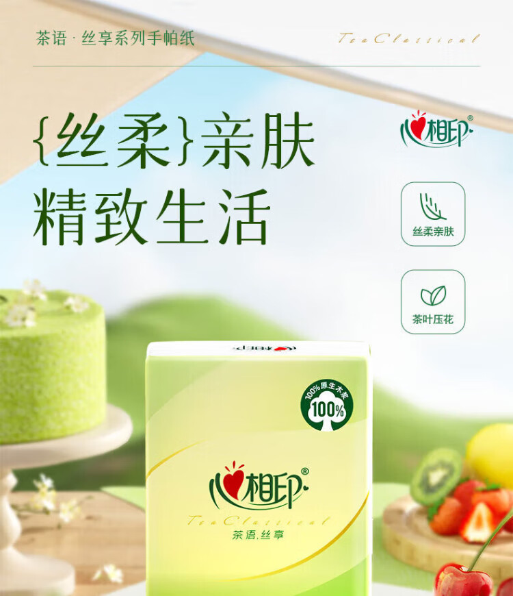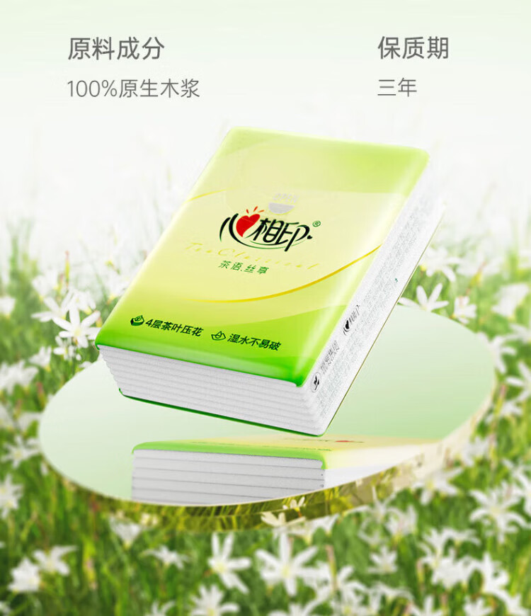 Heart-to-heart seal handkerchief paper 4 layers thickened tea language printed facial tissue portable paper towel napkin small bag 4 layers 6 pieces * 6 pack