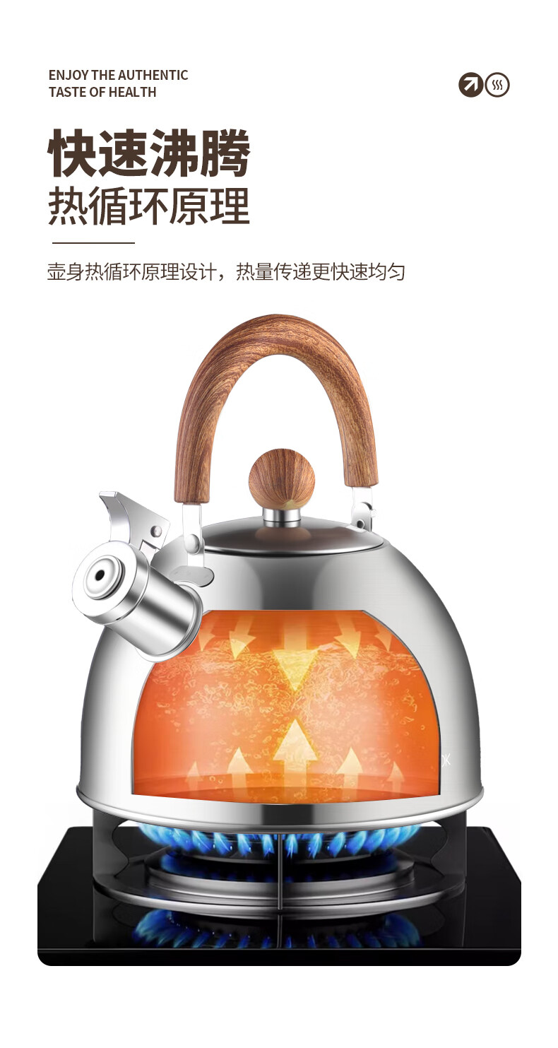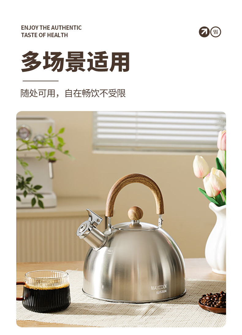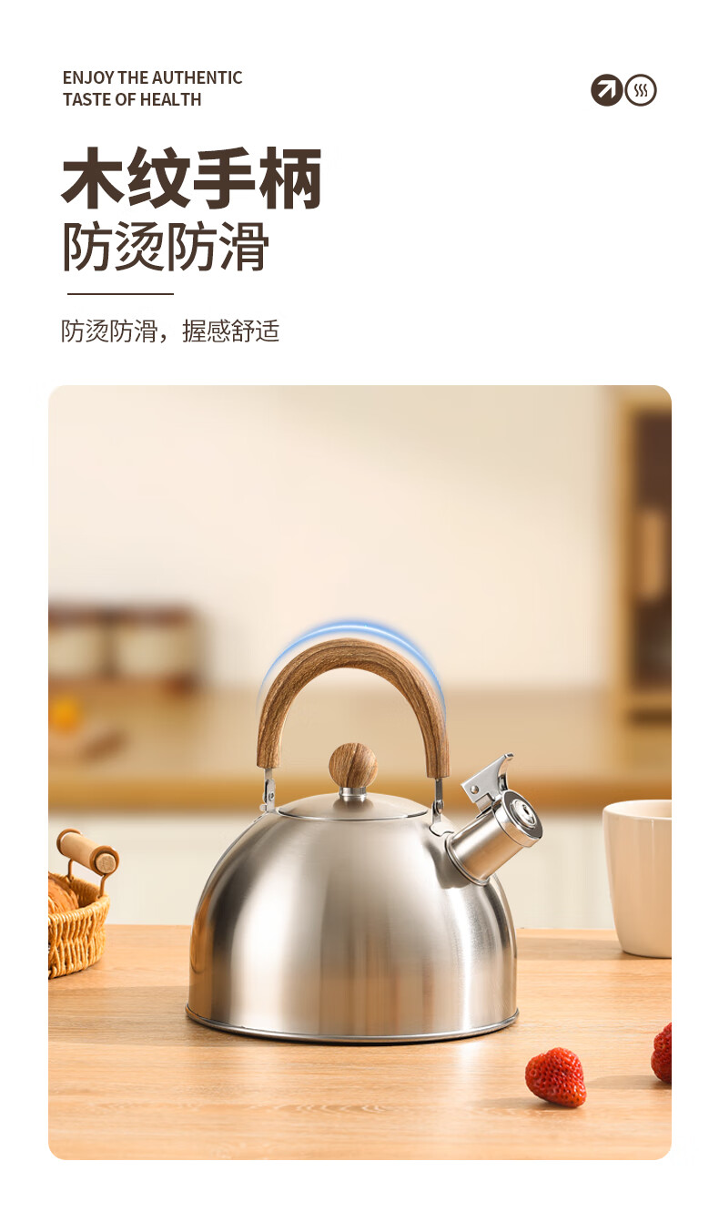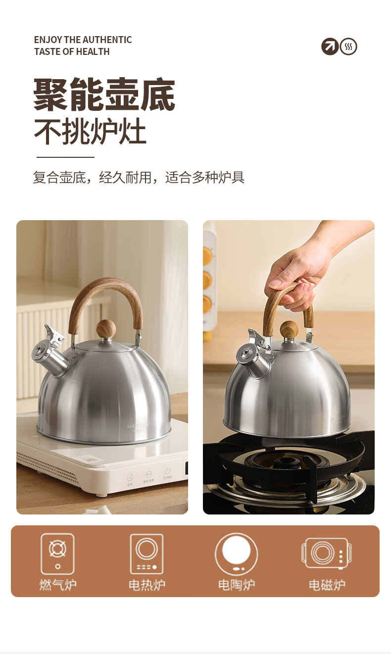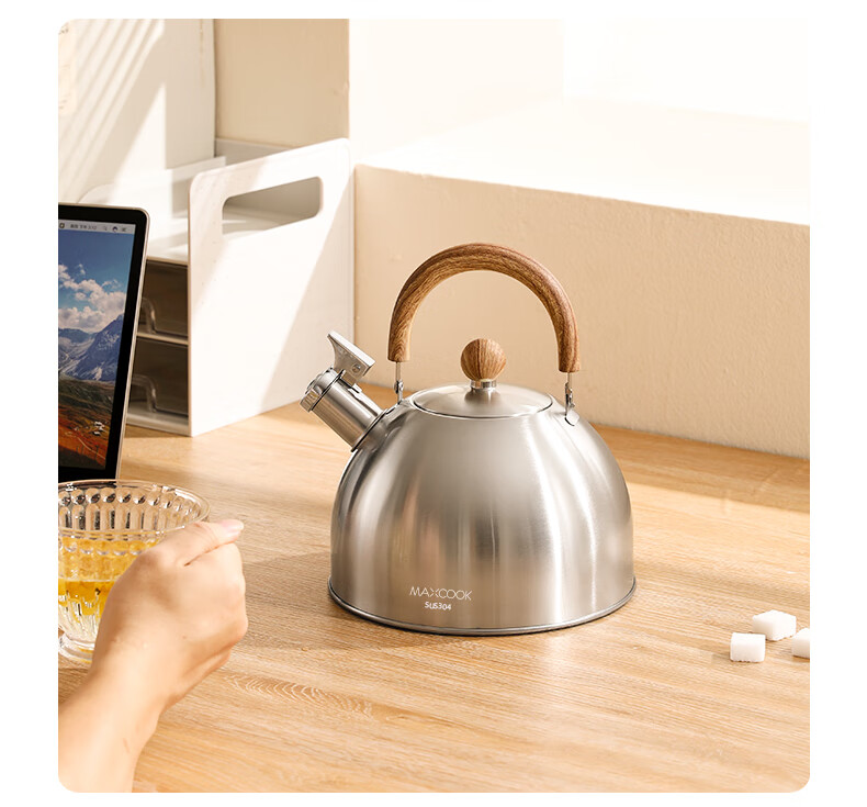 Meichu 304 stainless steel kettle gas stove water boiling automatic whistle induction cooker kettle boiling water household kettle 304 steel wood grain handle kettle 2L