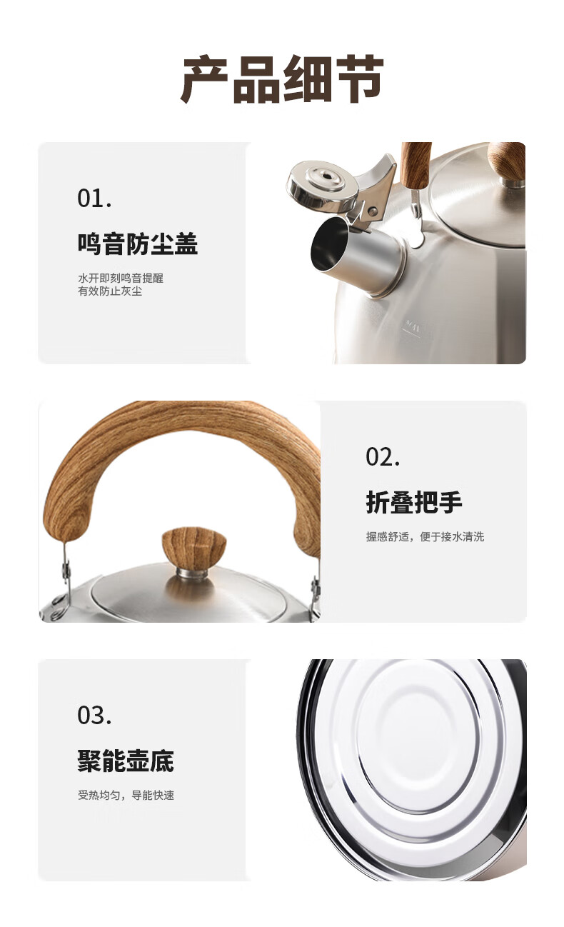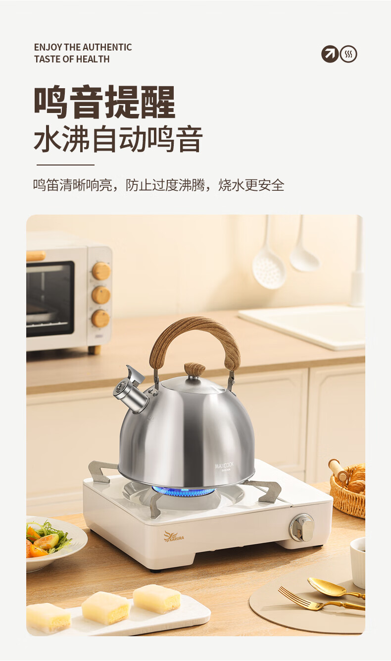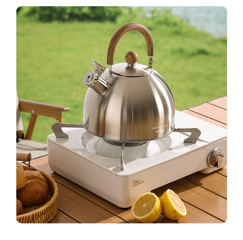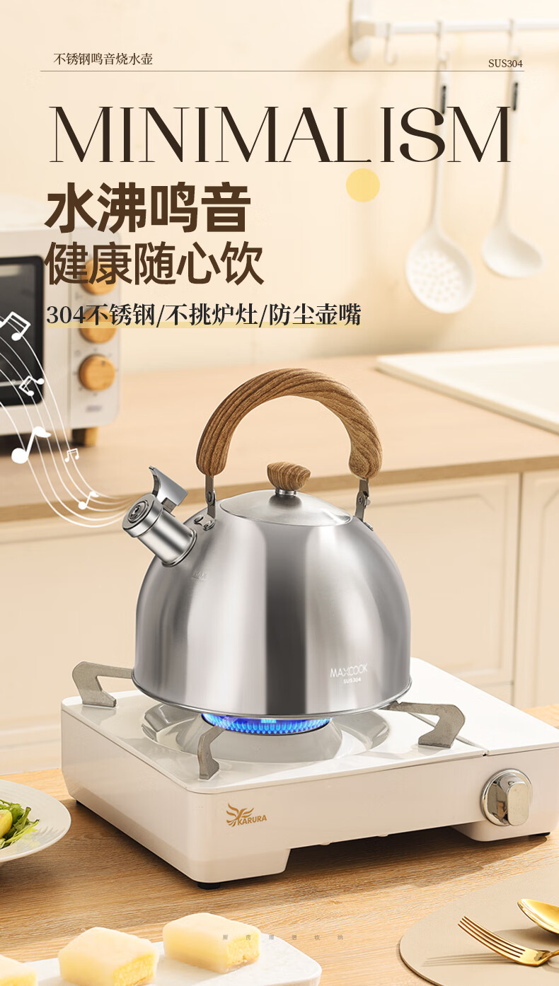 Meichu 304 stainless steel kettle gas stove water boiling automatic whistle induction cooker kettle boiling water household kettle 304 steel wood grain handle kettle 2L