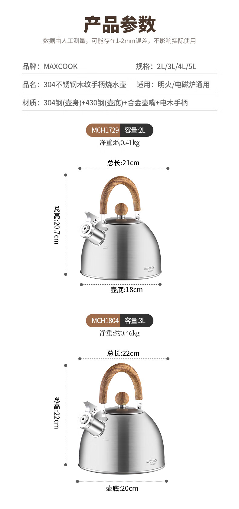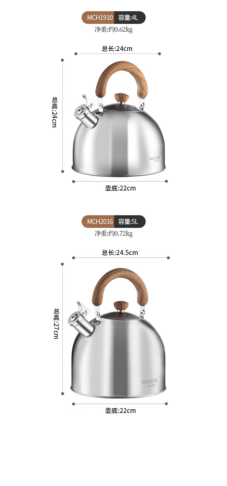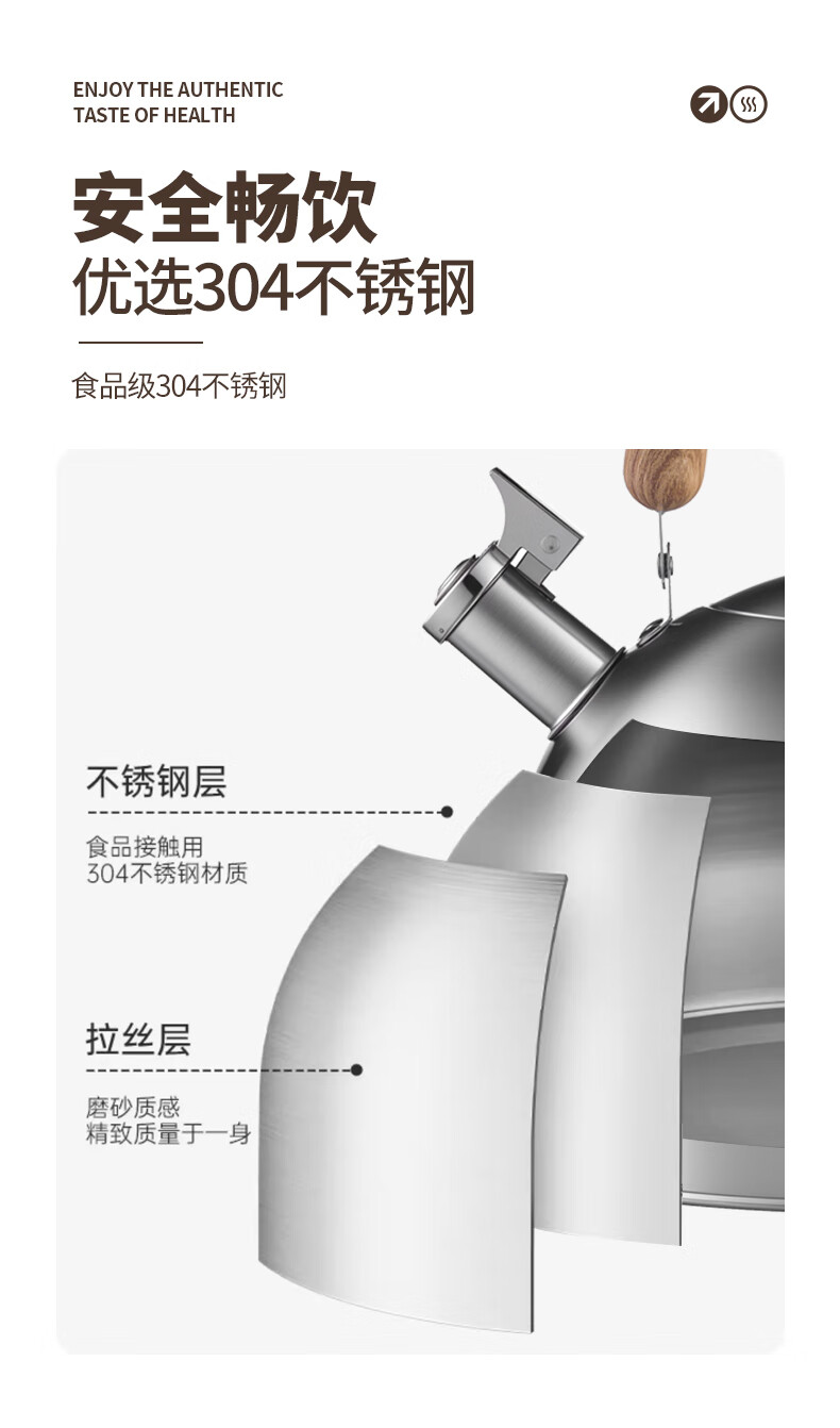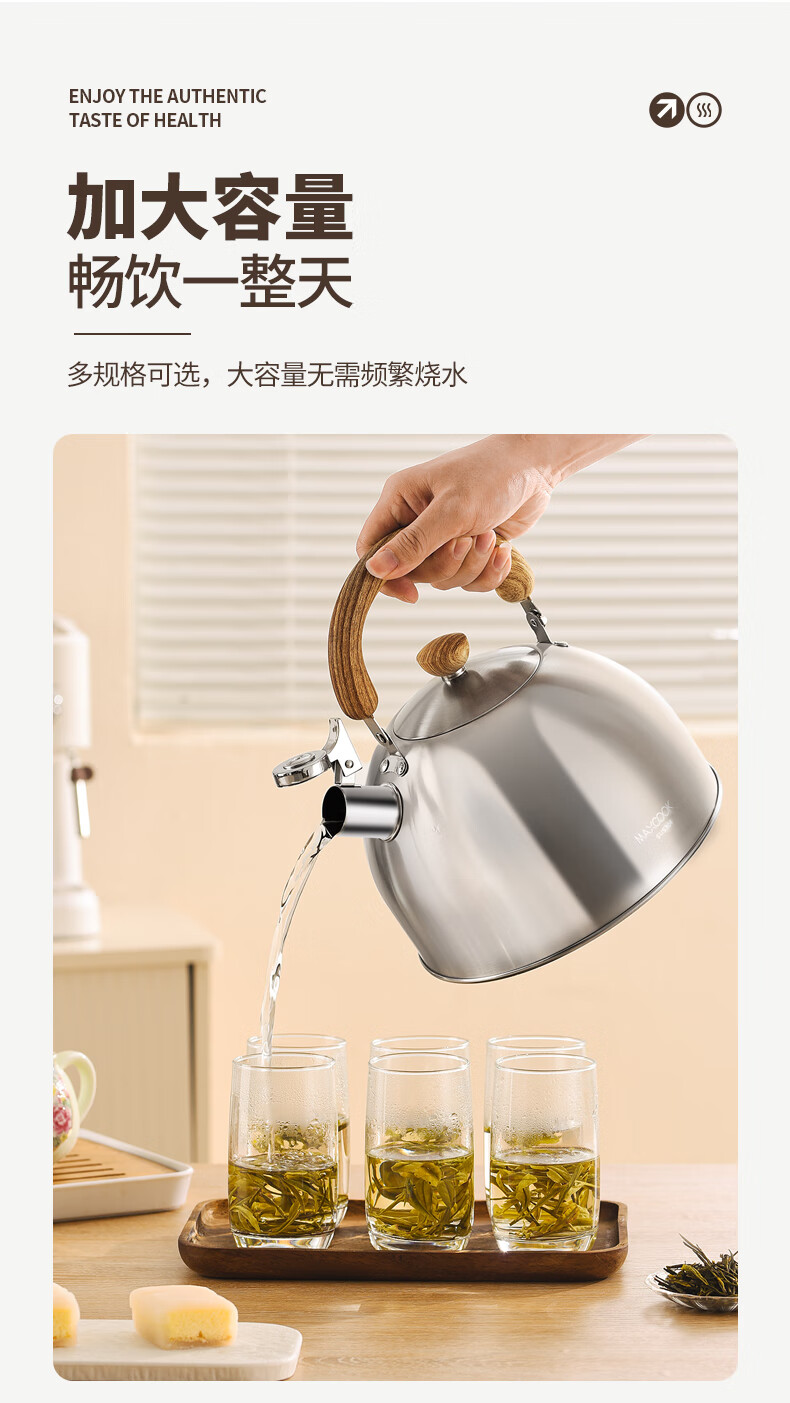Meichu 304 stainless steel kettle gas stove water boiling automatic whistle induction cooker kettle boiling water household kettle 304 steel wood grain handle kettle 2L