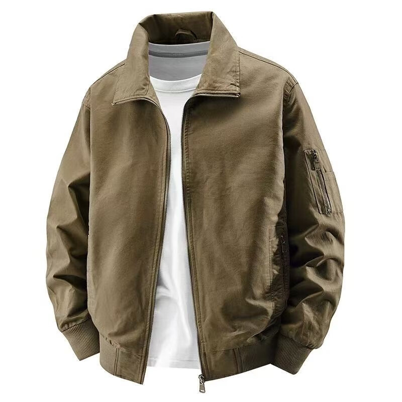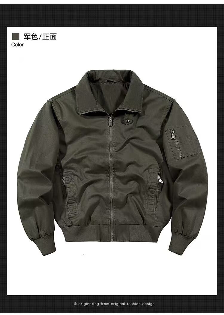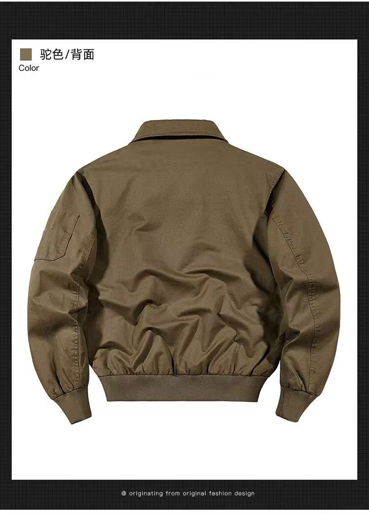 Spring and Autumn New Workwear Jacket Men's Solid Color Jacket Large Size American Pilot Lapel Retro Casual Jacket Khaki M Recommended 80-100Jin Jin equals 0.5 kg
