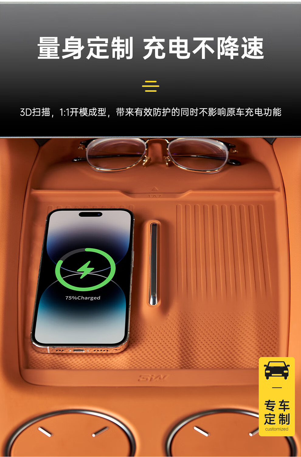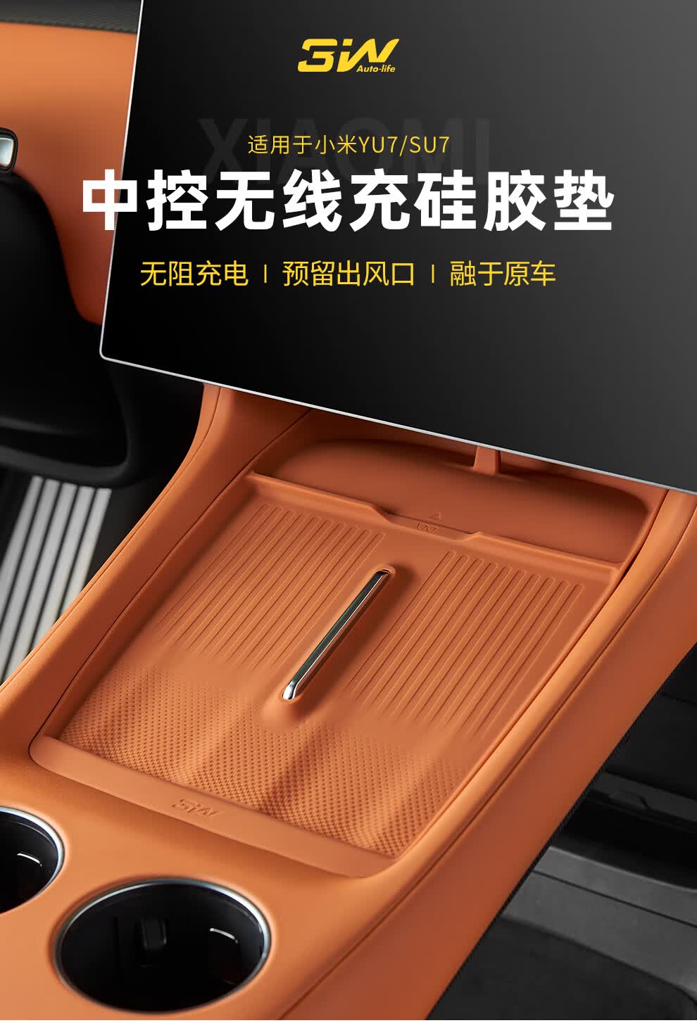 3W Auto-Life ist geeignet für Xiaomi YU7, zentraler Wasserbecherhalter, Silikon, kabelloses Laden, Schutzpolster, Armlehnenbox, Aufbewahrungsbox, Zubehörkollektion, YU7 Kühlschrank, Silikon-Aufbewahrungsbox