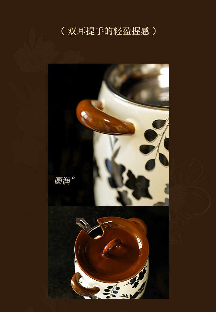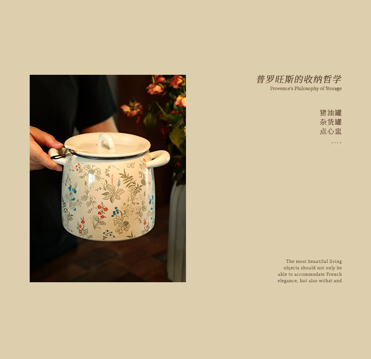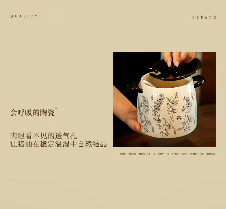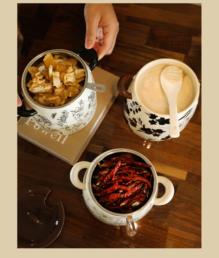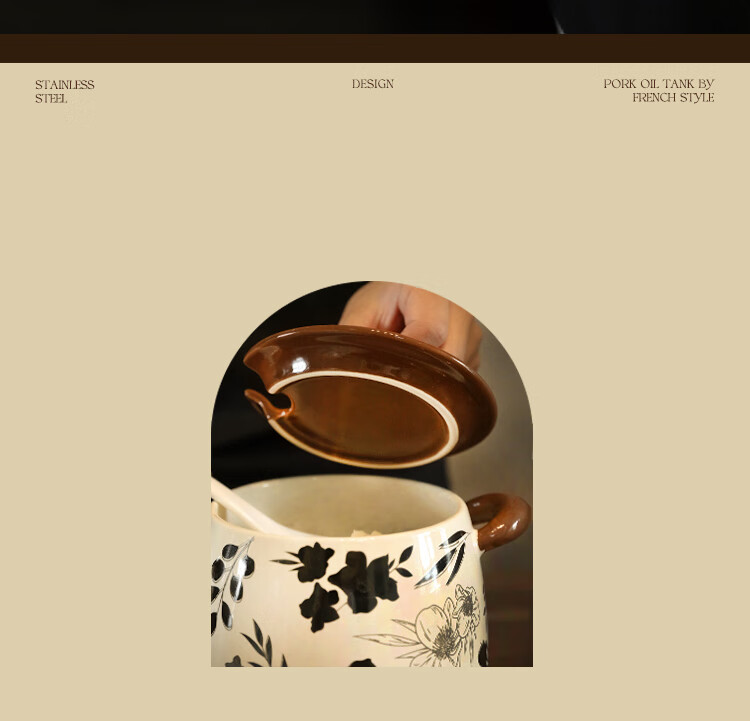 Sanmu Qinghe high-end ceramic lard oil tank large capacity high temperature resistant chili oil special tank national style storage tank household food grade ceramic cream white matching spoon + filter 1.2L