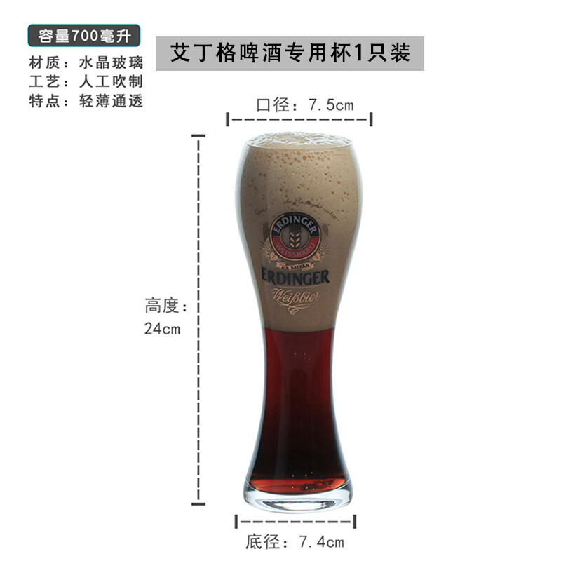 Lead-free glass Erdinger beer special cup, high-end wheat cup, large capacity beer cup, waisted black beer cup, Erdinger beer special cup, 2 pieces, 700ml