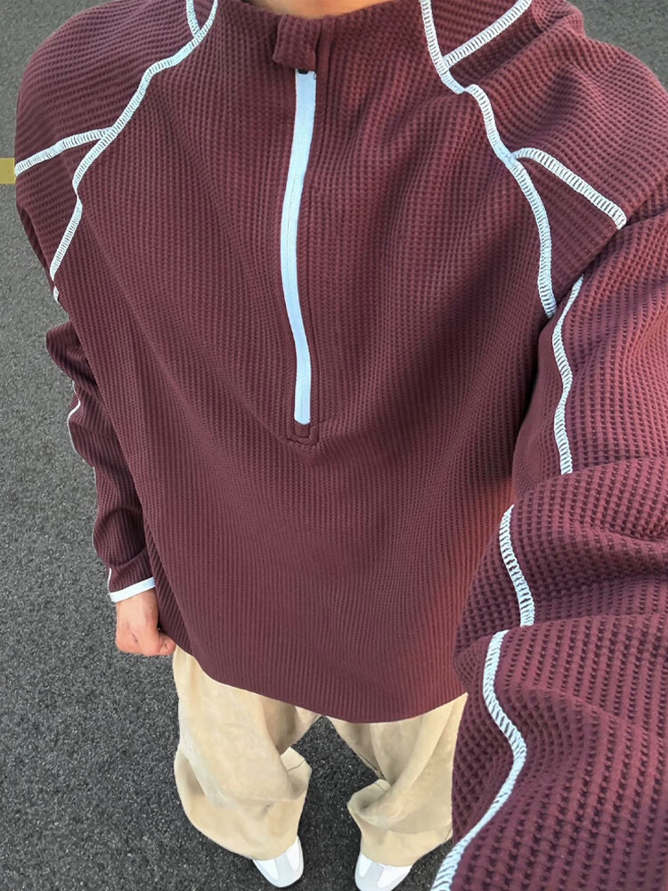 XUANSENTU Hasselblad half-zip sweatshirt men's autumn design outdoor sports cycling clothing American Polo shirt long-sleeved T-shirt purple M