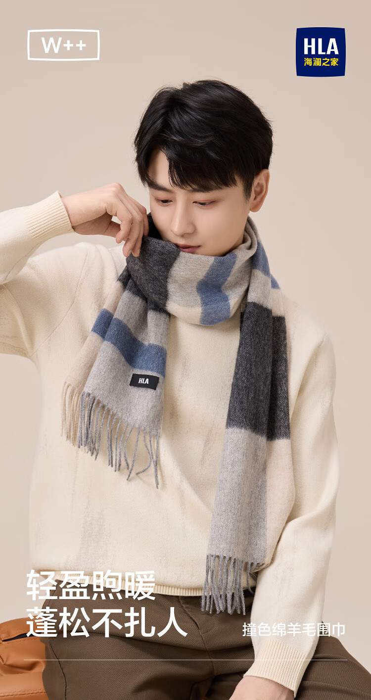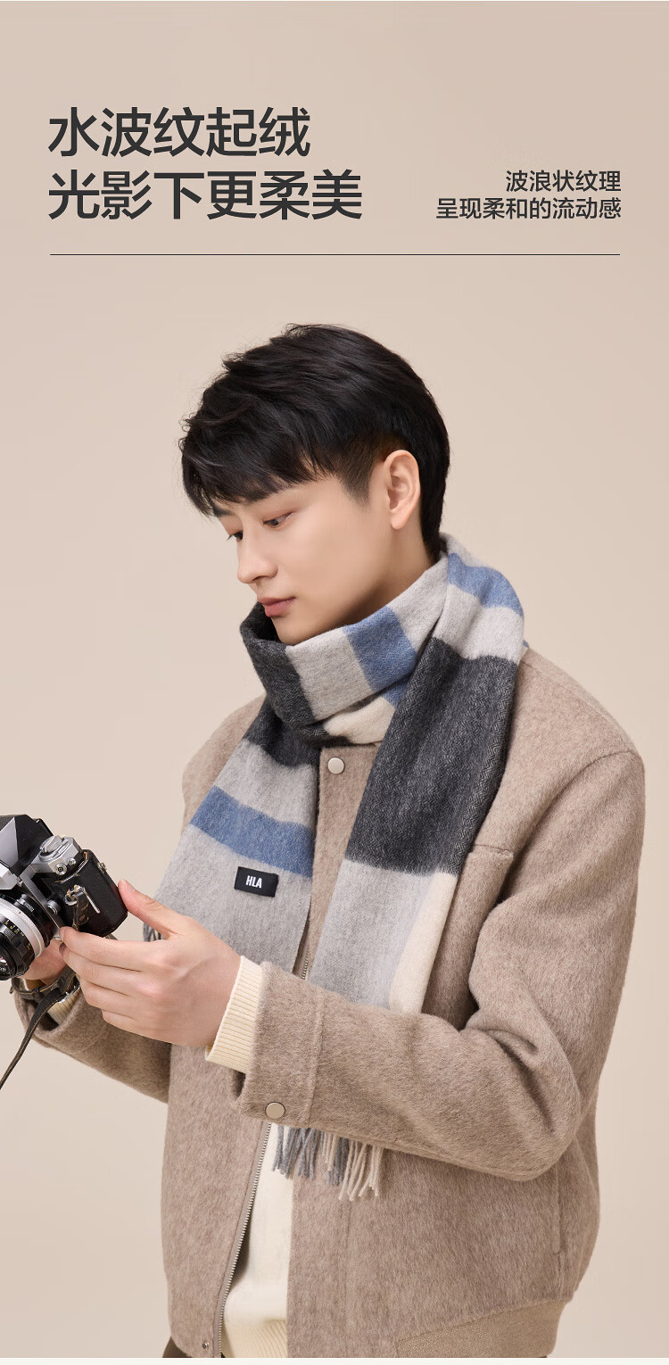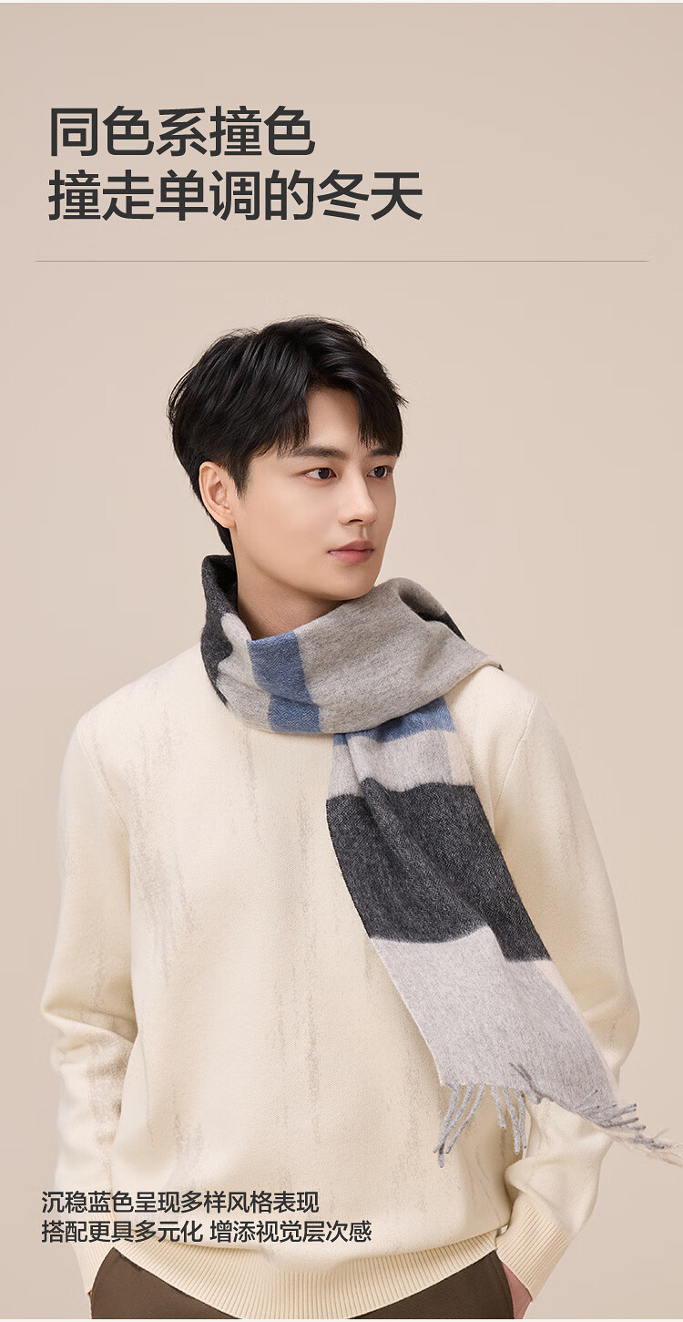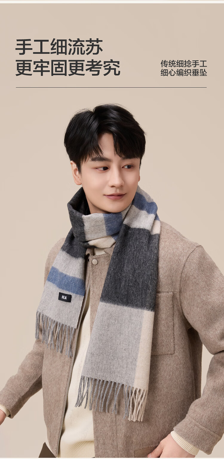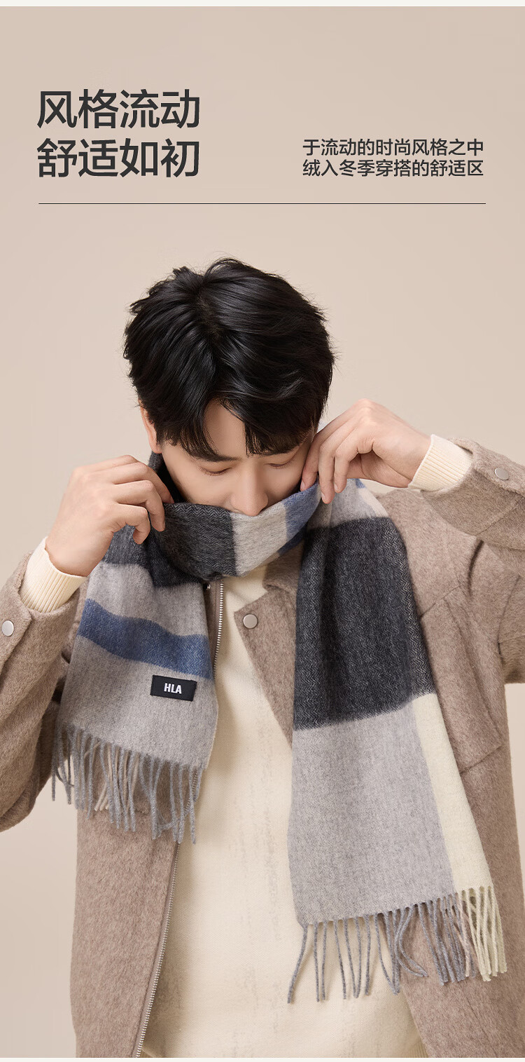 Heilan House (HLA) scarf men's autumn and winter warm outdoor sheep wool gift box scarf HXAWJA2AEXR295 HH Aoki Gray 164cm 30cm