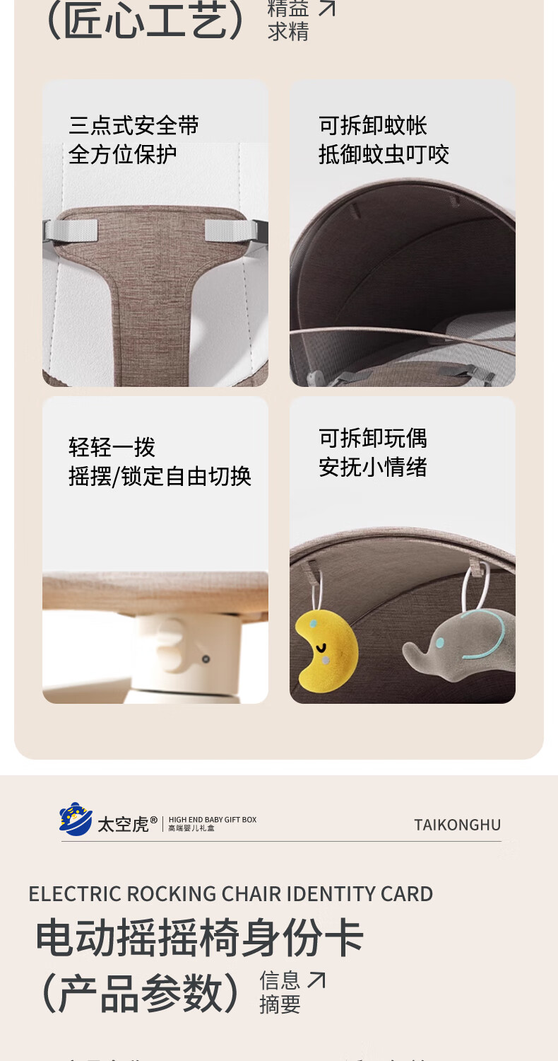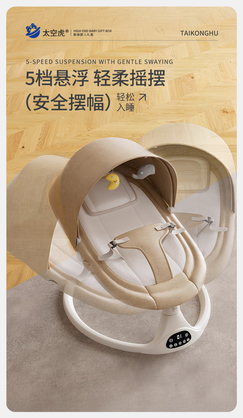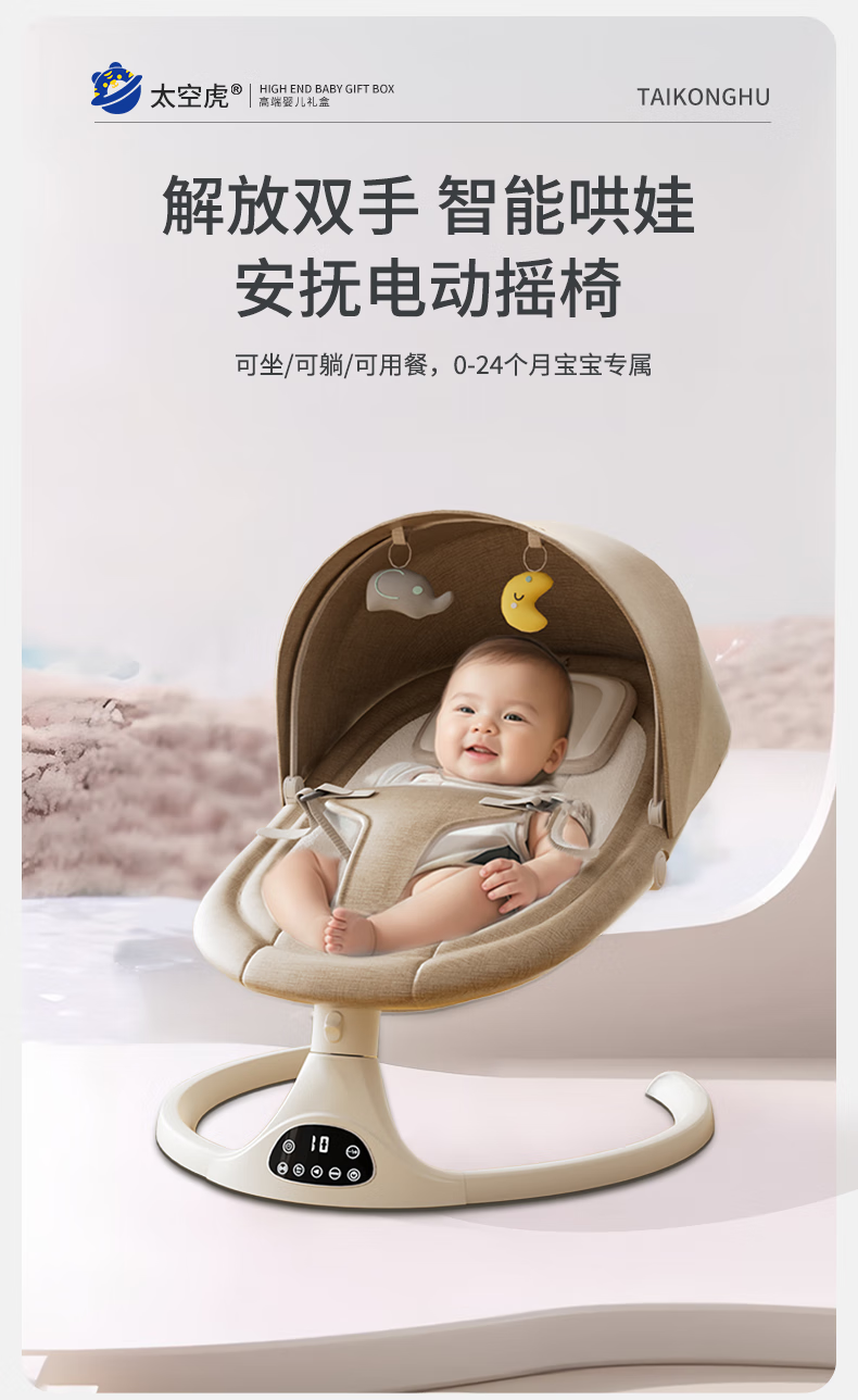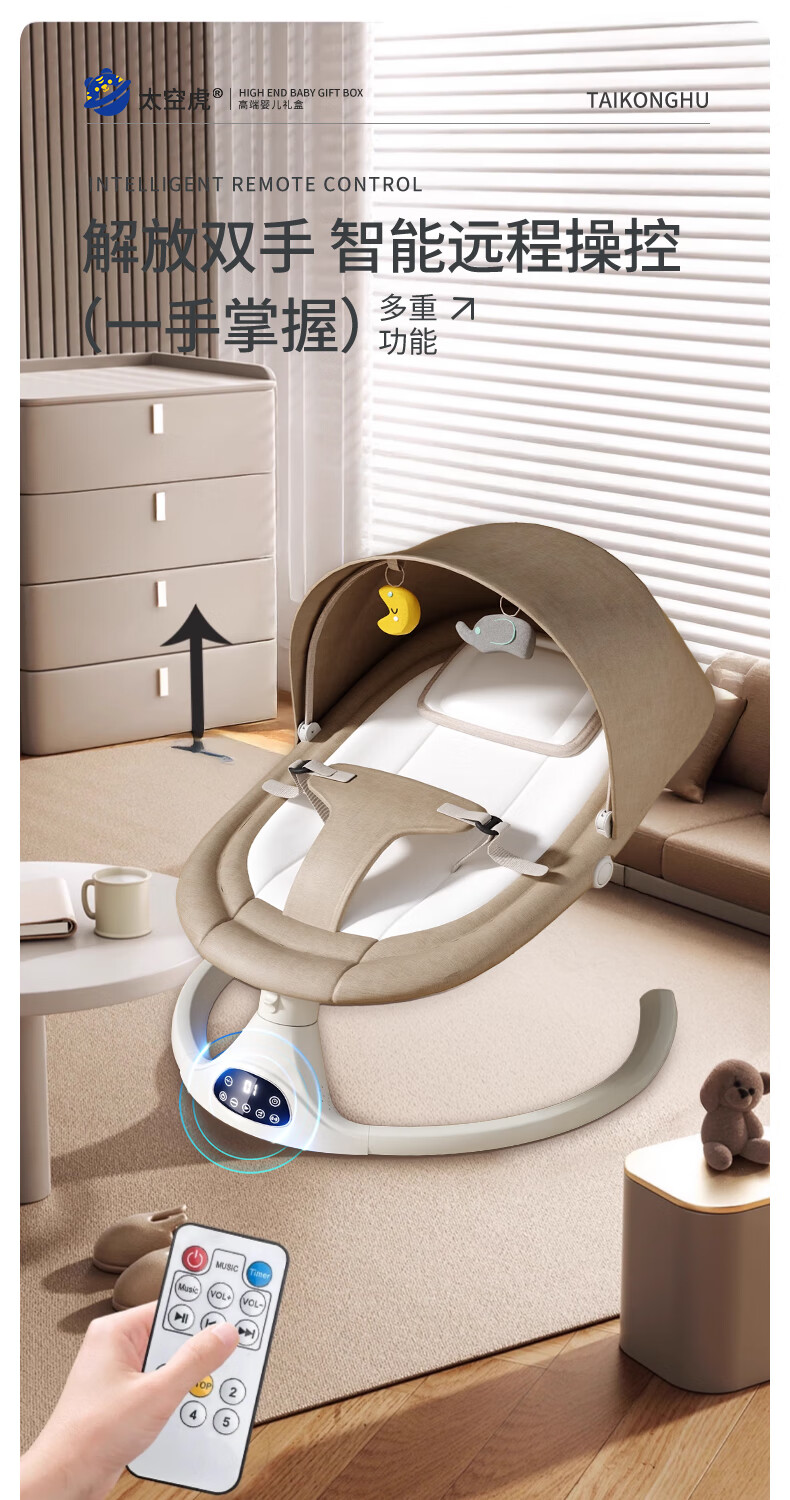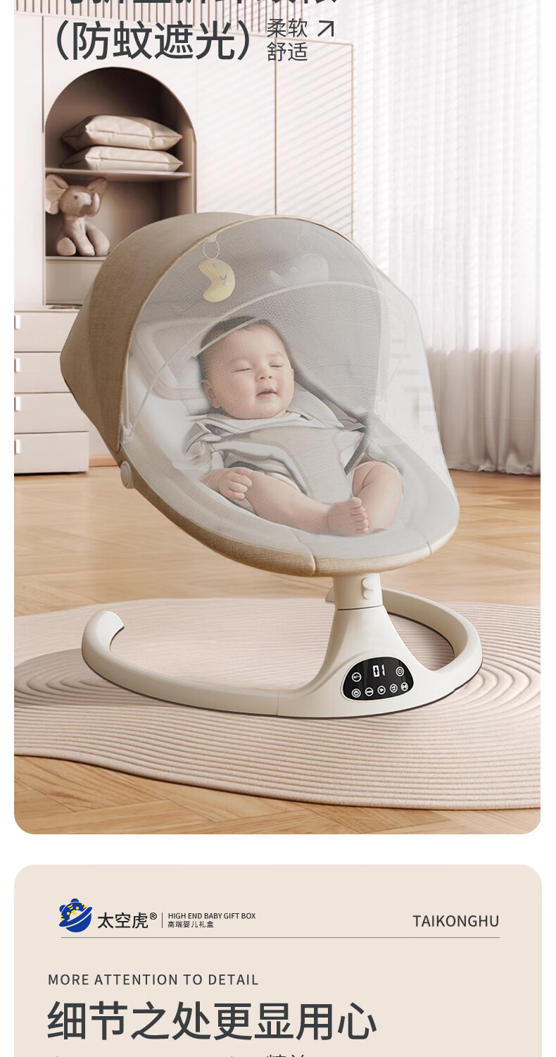 Space tiger baby sleeping artifact baby rocking chair electric rocking chair baby rocking chair milk coffee color electric + remote control + bluetooth + mosquito net