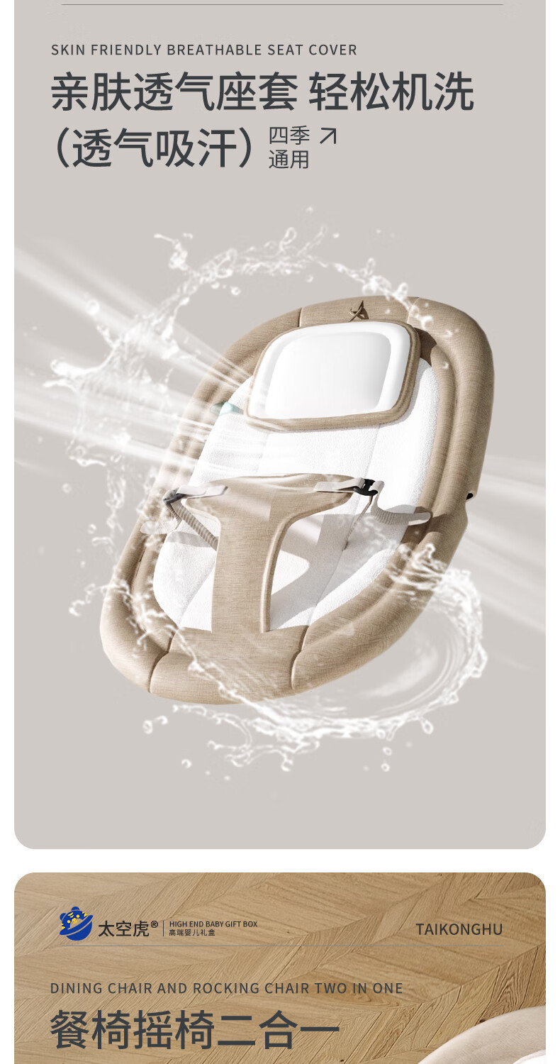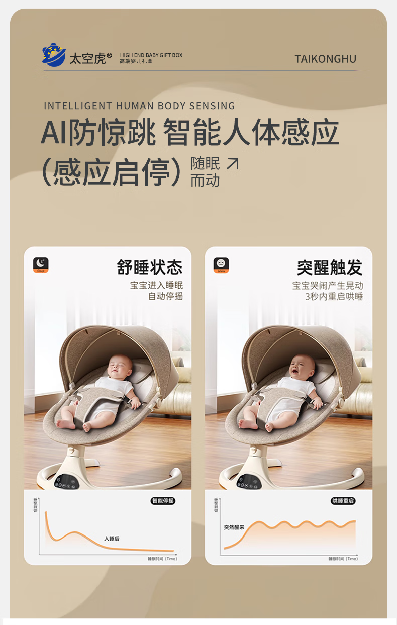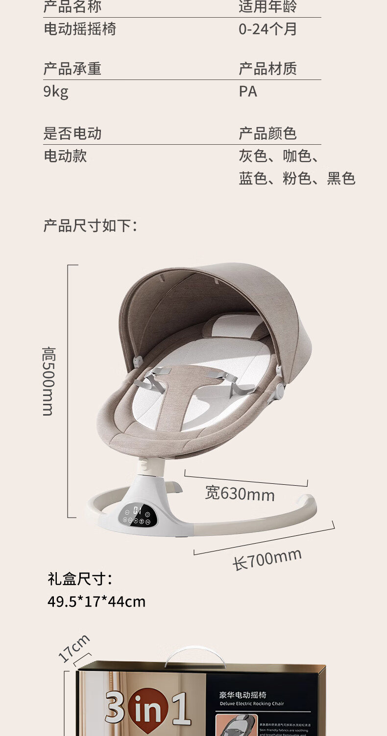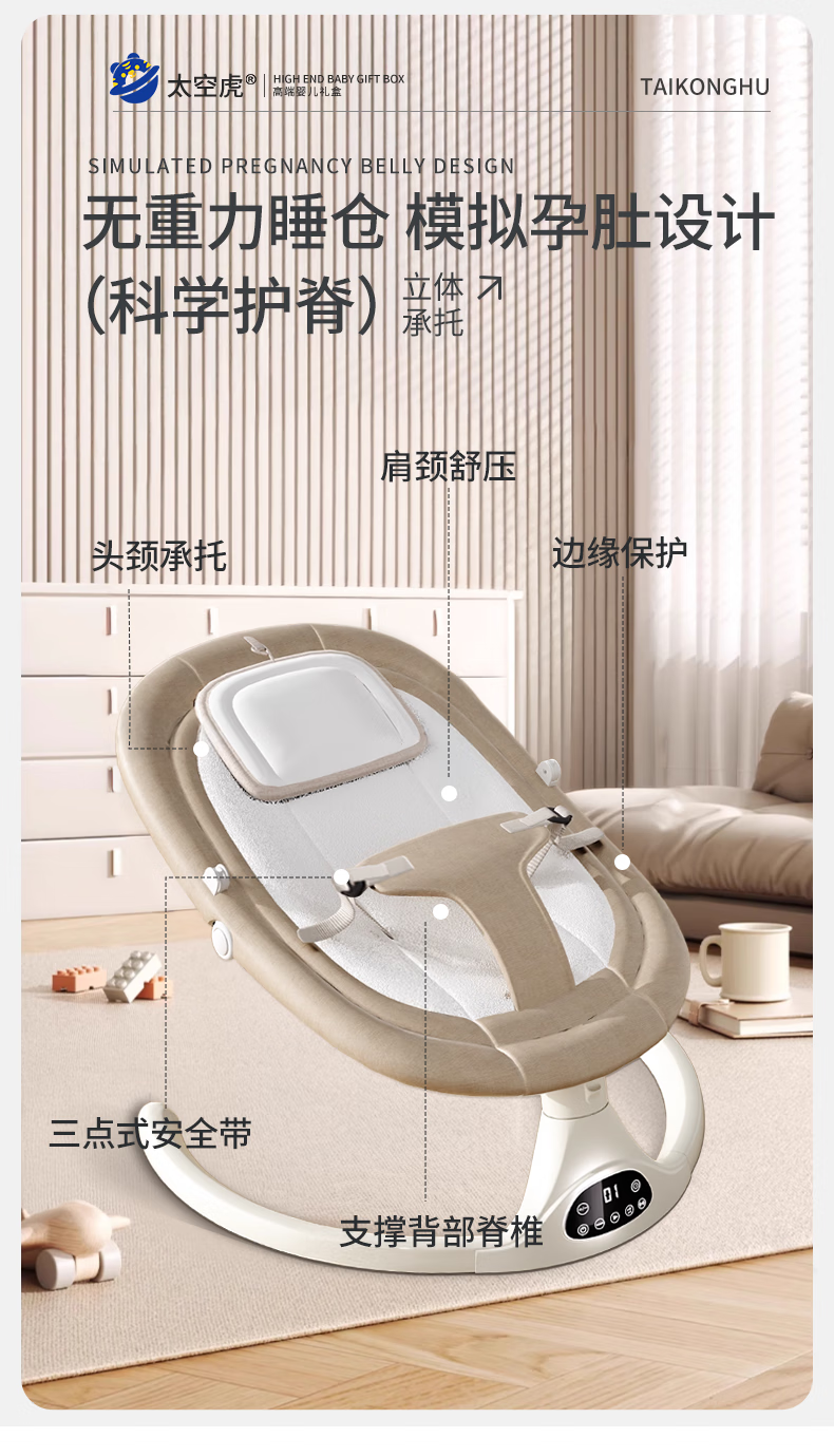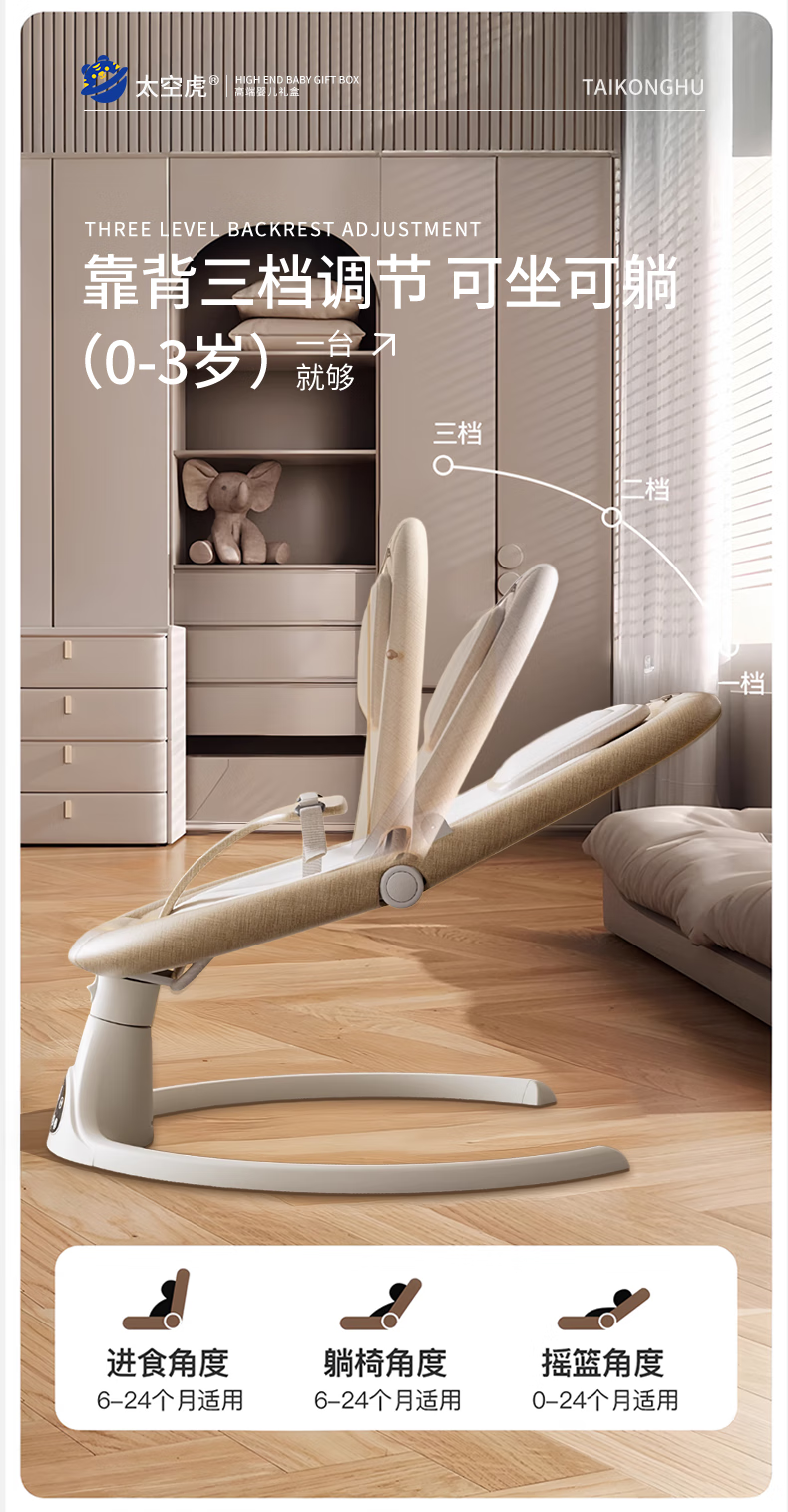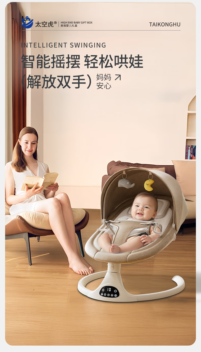 Space tiger baby sleeping artifact baby rocking chair electric rocking chair baby rocking chair milk coffee color electric + remote control + bluetooth + mosquito net
