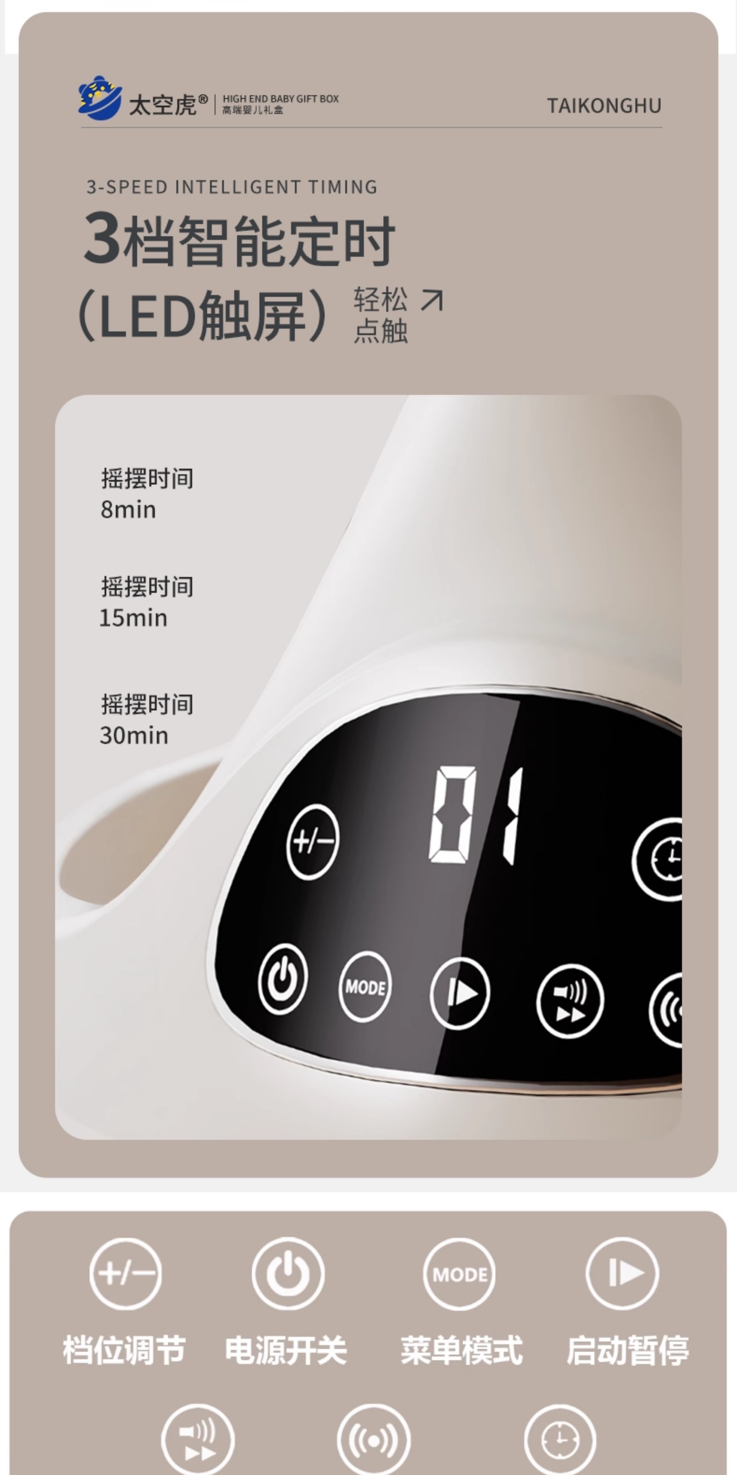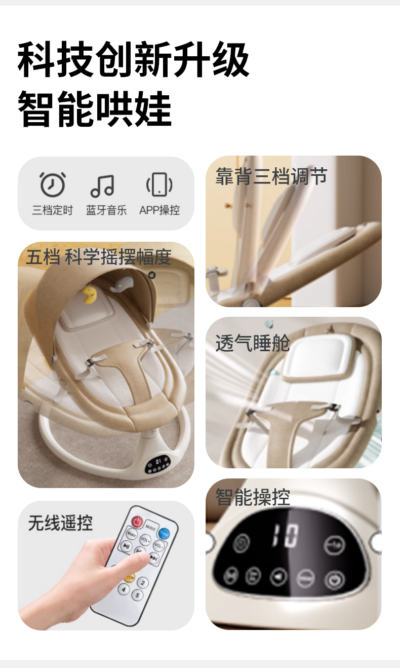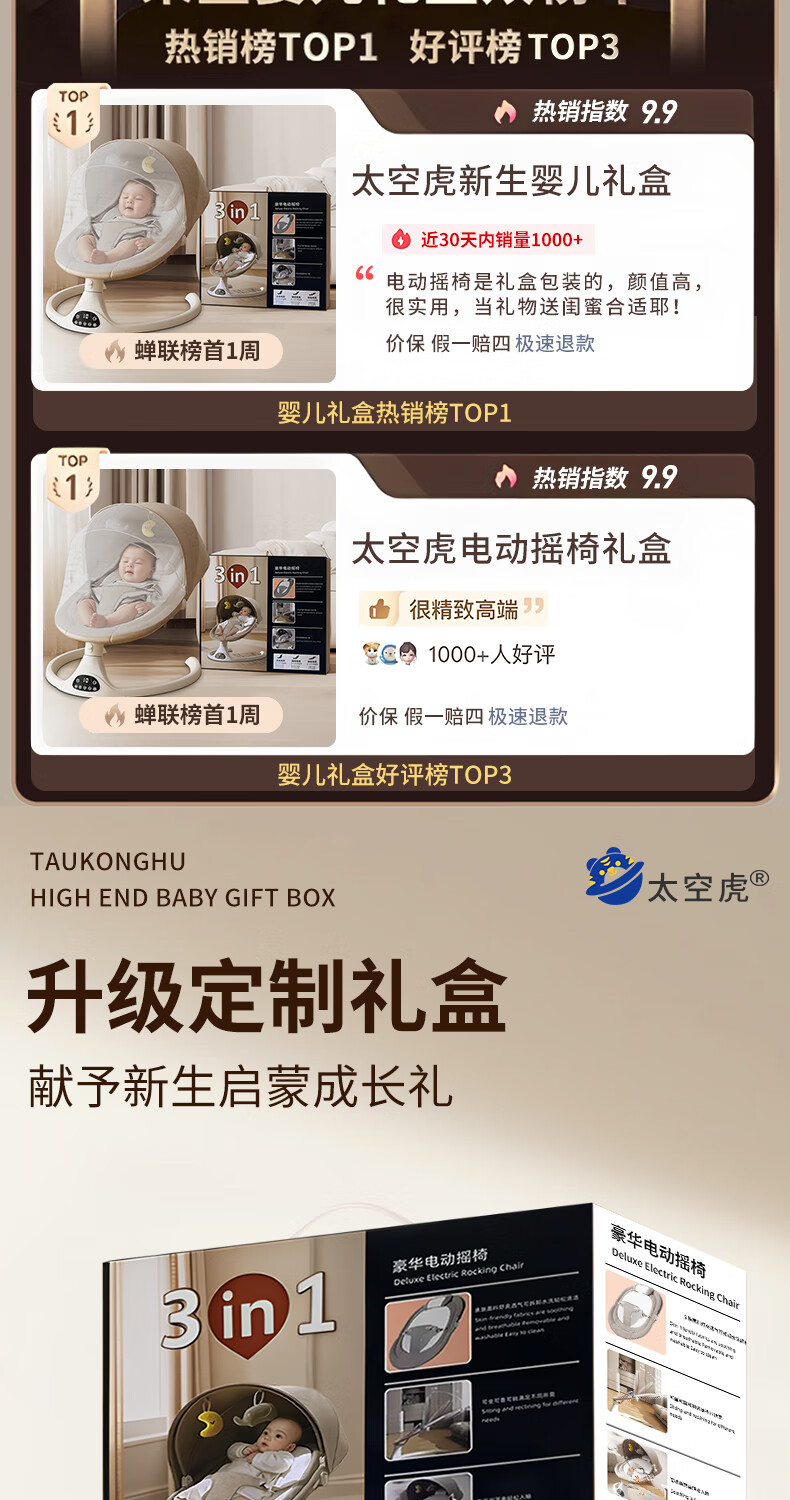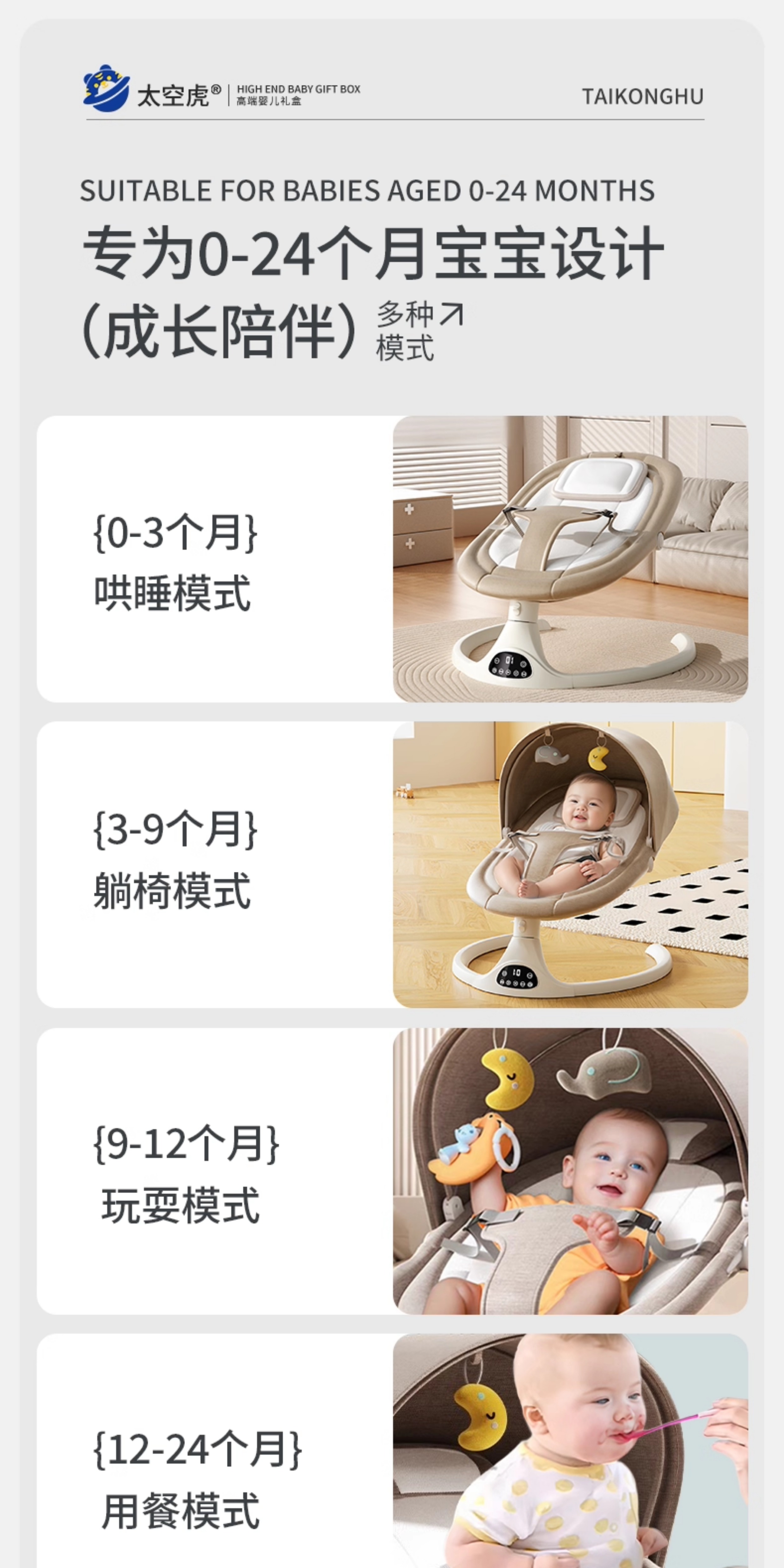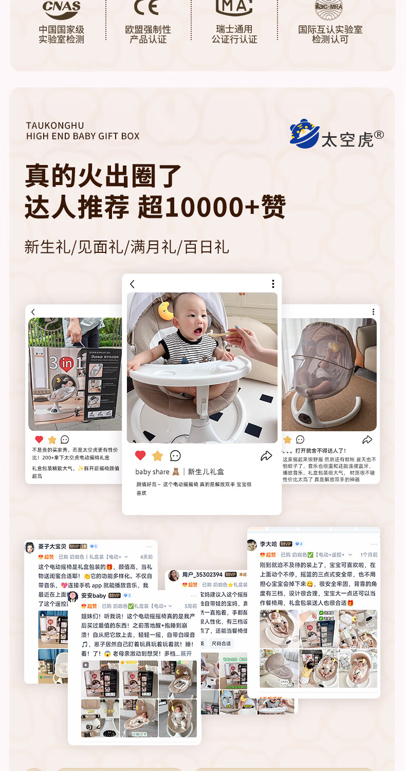 Space tiger baby sleeping artifact baby rocking chair electric rocking chair baby rocking chair milk coffee color electric + remote control + bluetooth + mosquito net