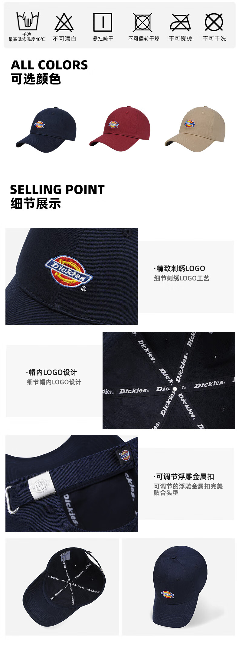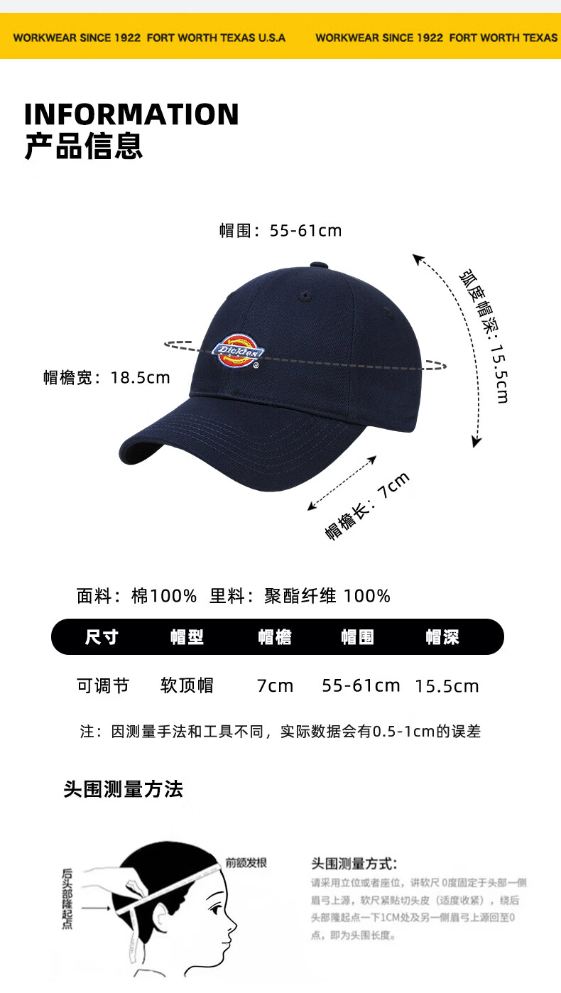 Dickies baseball caps for men and women, all-season breathable sunshade, outdoor sun protection, casual retro soft top, small duck tongue hat, navy blue - same style for men and women, one size fits all (adjustable, suitable for head circumference 55-61cm)