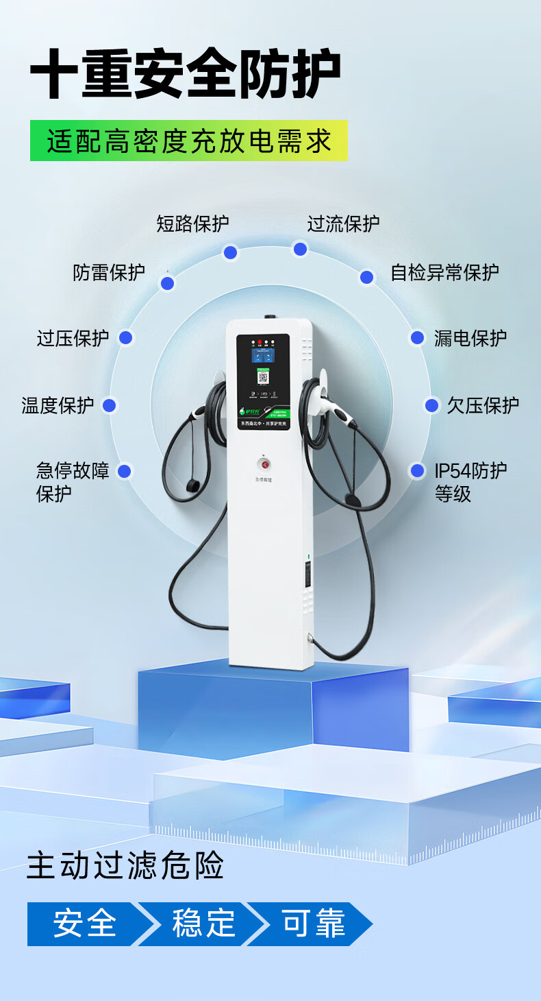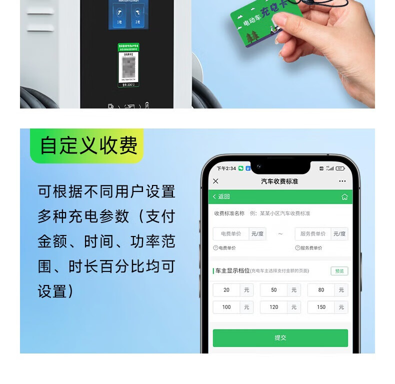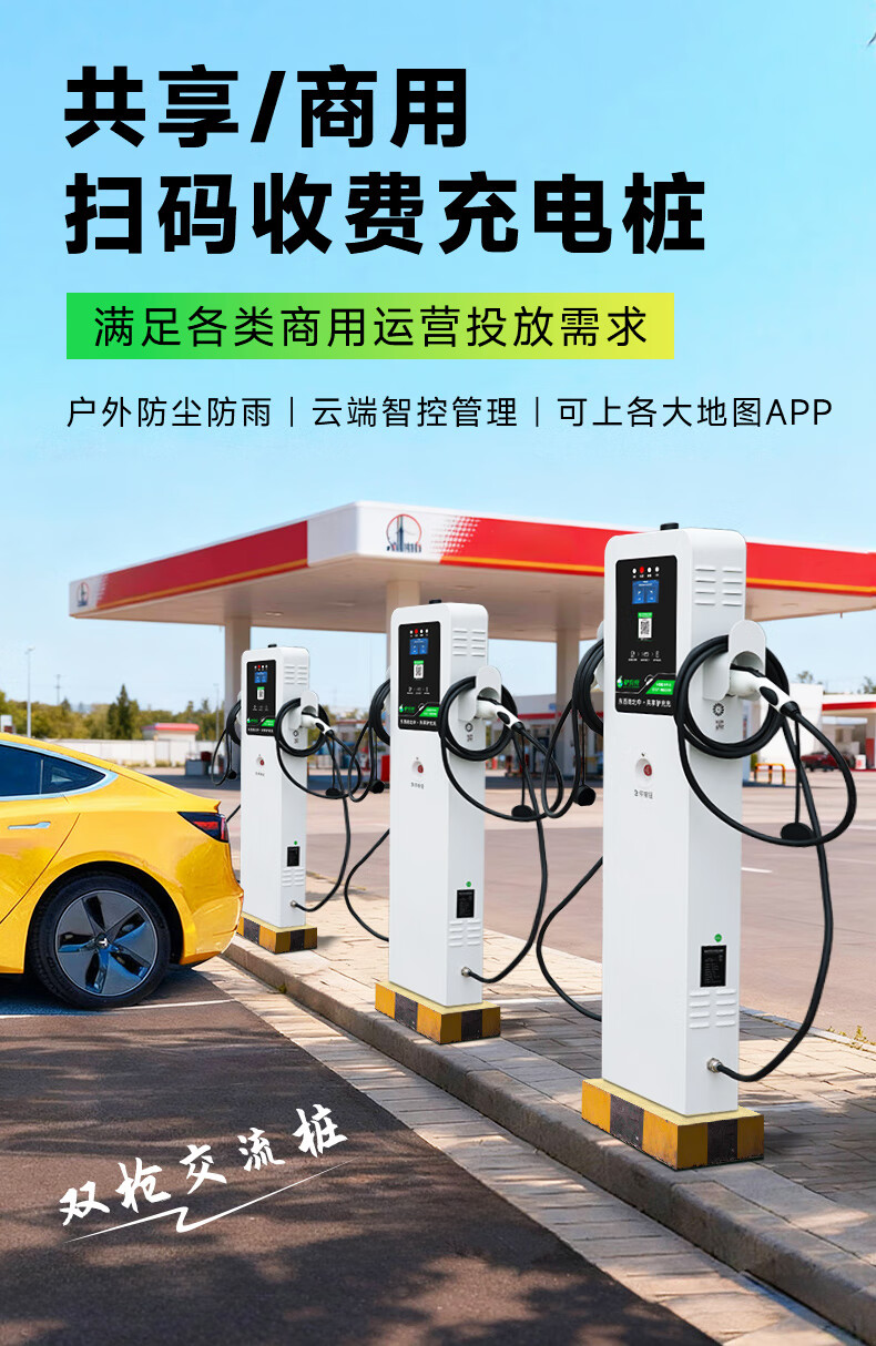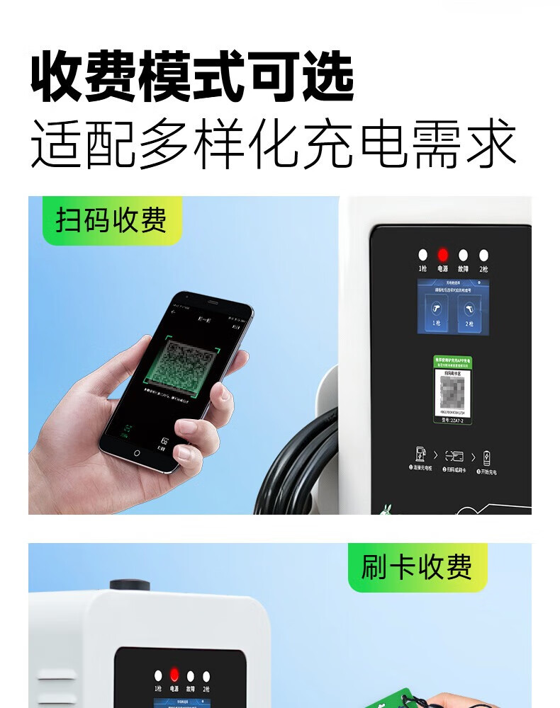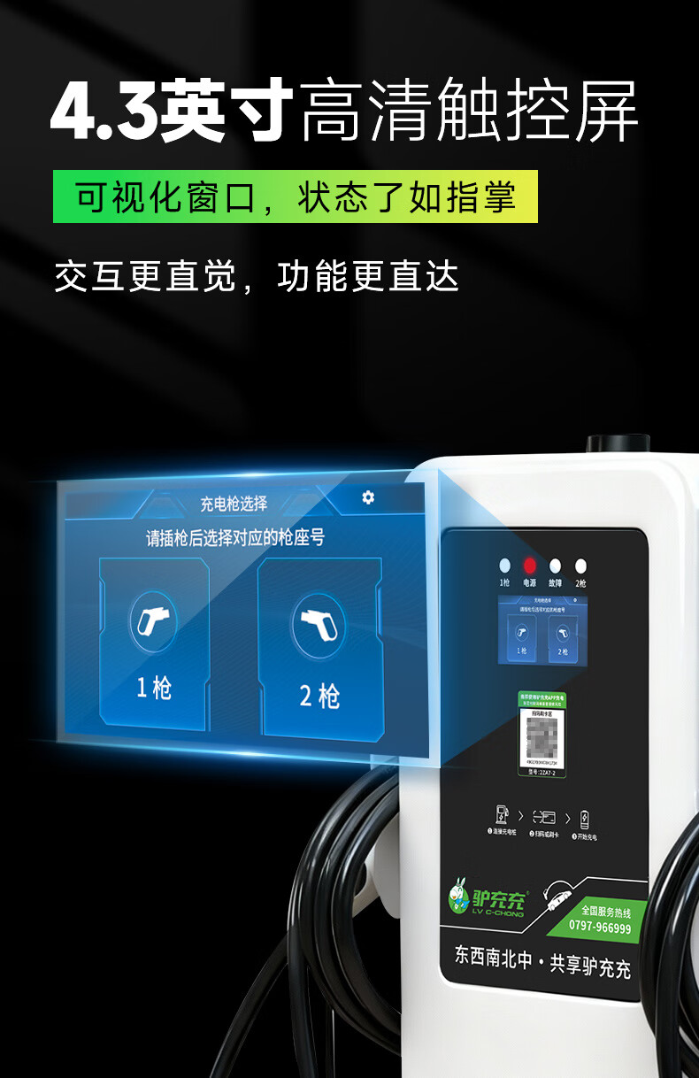 Lvchongchang Charging Pile New Energy Electric Vehicle Commercial Charging Pile Community Shared Shopping Mall B&B Scan QR Code Toll Charging Station 14KW Charging Pile - Scan QR Code + Swipe Card Standing Cabinet Double Gun 2ZA7-2