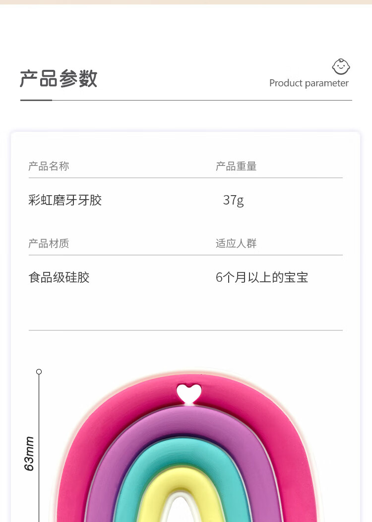 Rainbow chewable baby anti-biting hand food-grade children's oral molar stick can be boiled silicone teether dark blue 1 pack