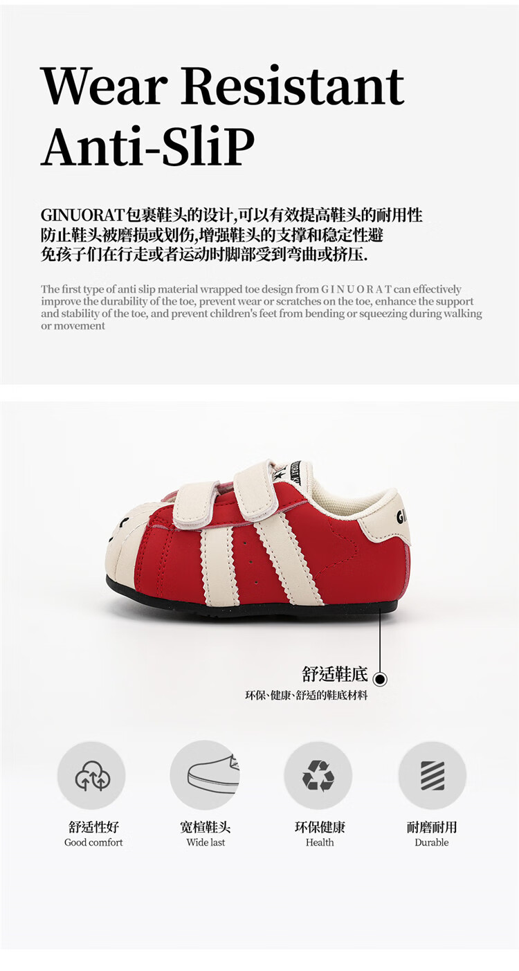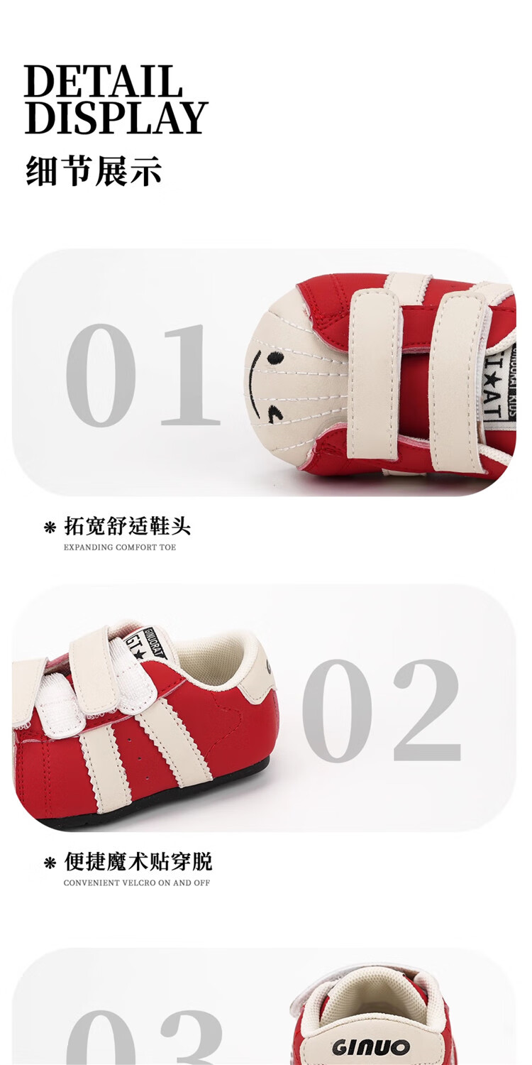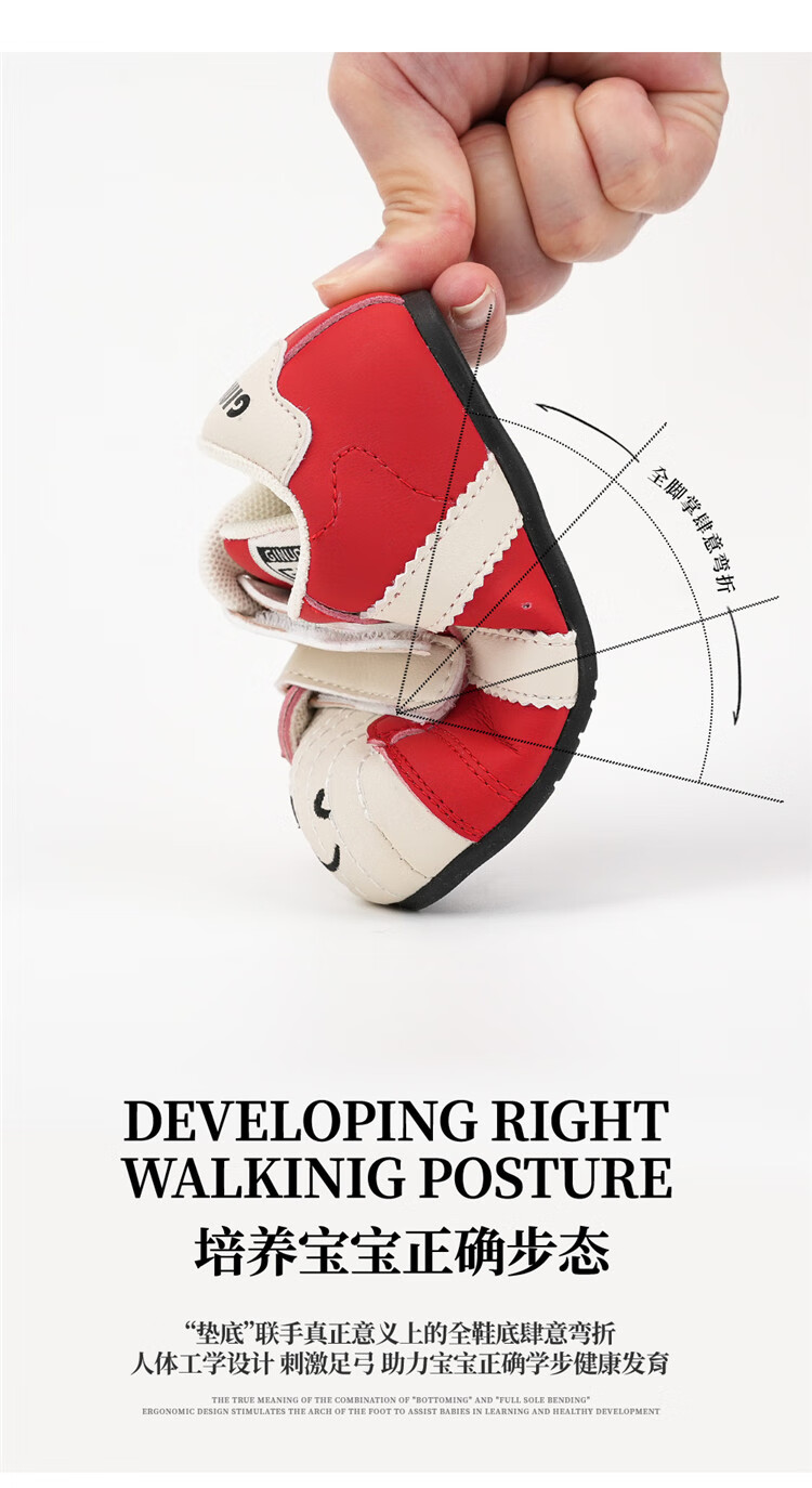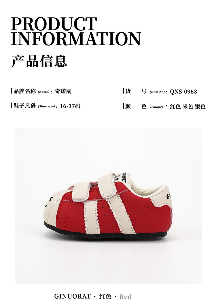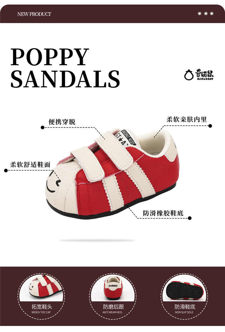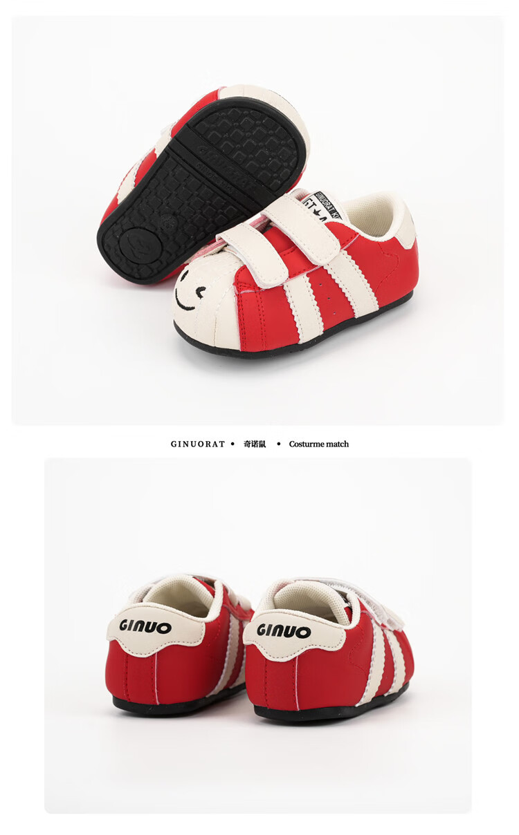 Chino Mouse Official Authentic Xiaole Mouse Toddler Shoes 1-3 Years Old Soft Sole 2025 Spring and Autumn Baby Shoes for Boys and Girls Anti-Slip Red Size 25 (Suitable for Feet Length 14.5-15.0cm)