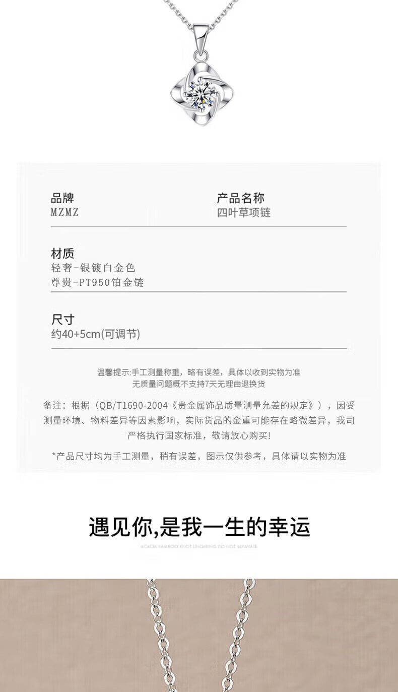 MZMZ four-leaf clover platinum necklace for women pt950 platinum clavicle chain versatile decoration Double Eleven birthday gift for girlfriend local warehouse/next day delivery - light luxury four-leaf clover necklace set with moissanite
