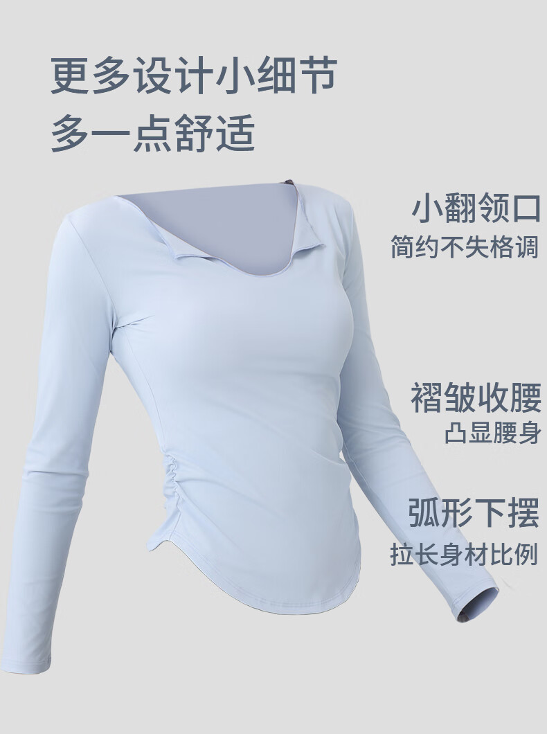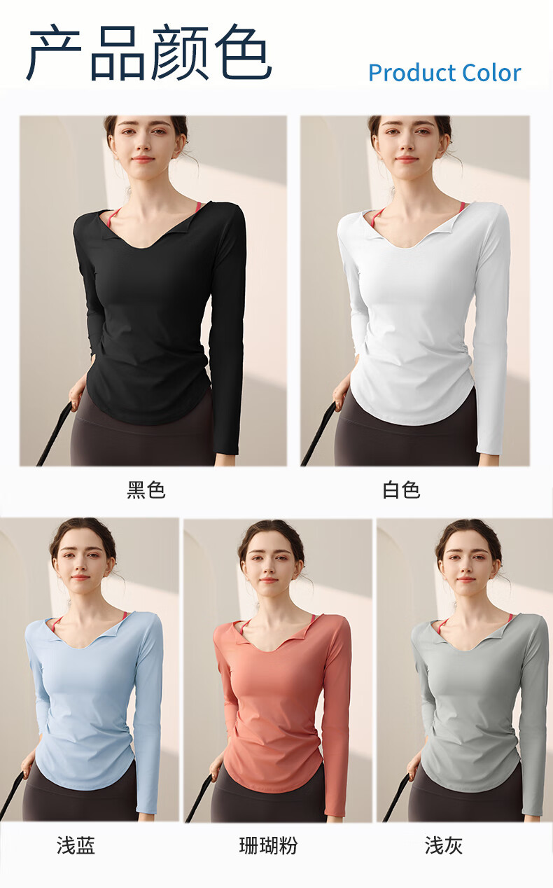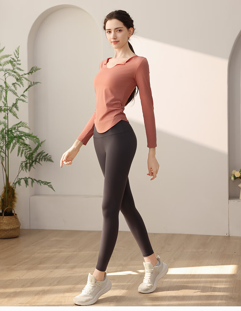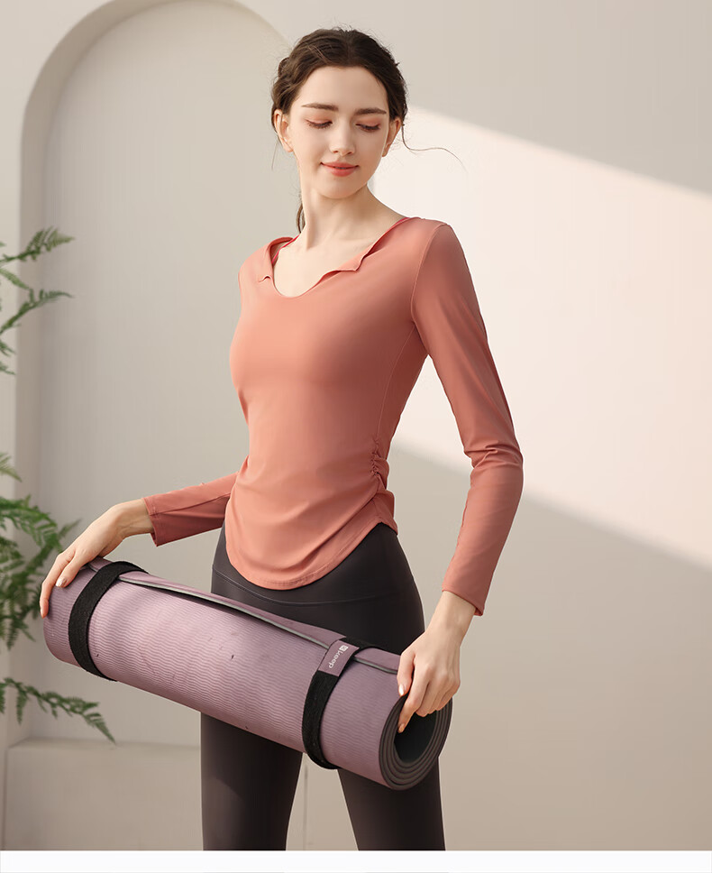 Yoga wear women's long-sleeved T-shirt temperament U-neck waist slimming sports long-sleeved Pilates training fitness top coral pink L