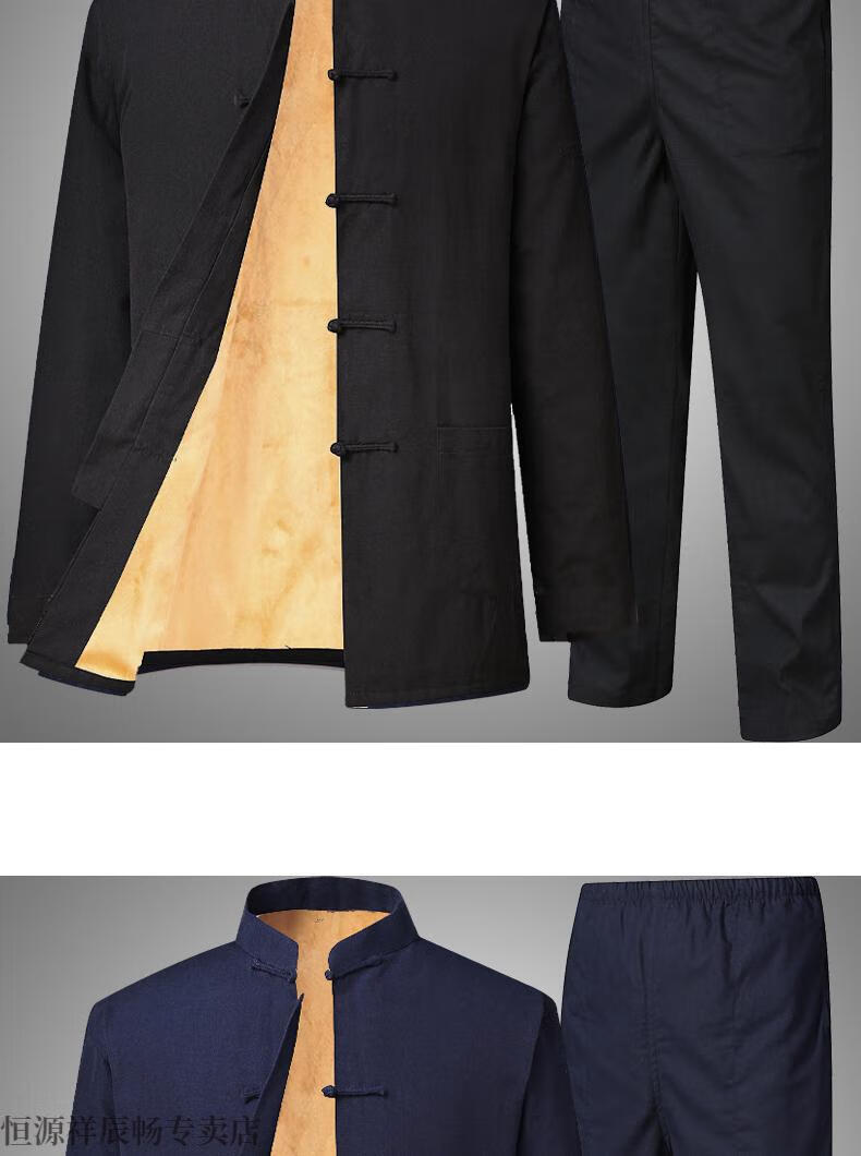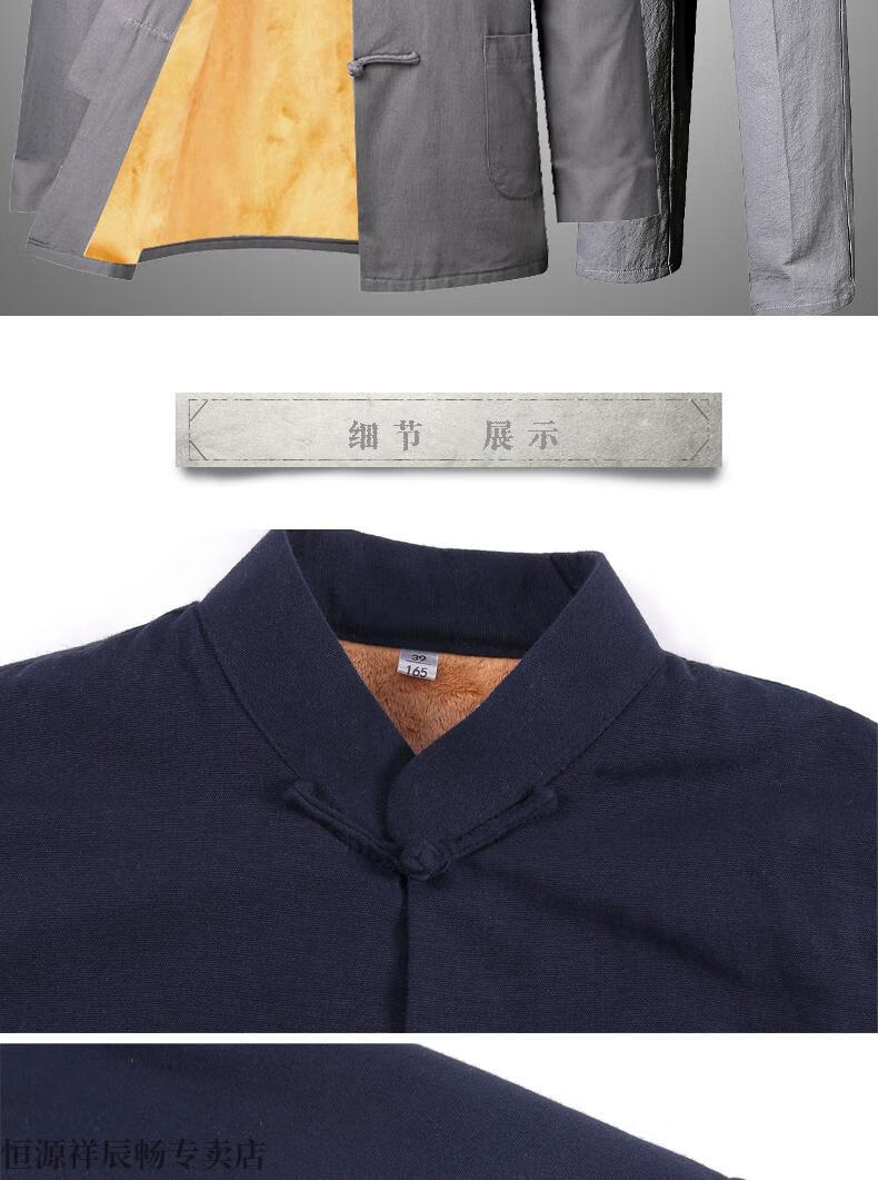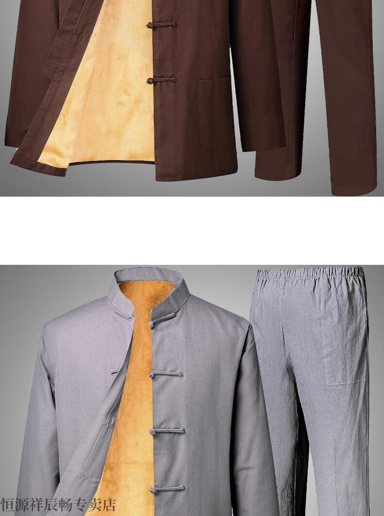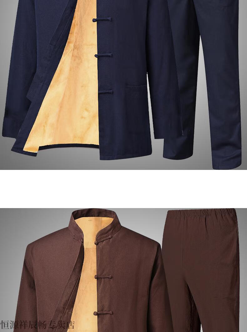 Hengyuanxiang Autumn and Winter Tang Suit Men's Suit Thickened and Velvet Chinese Style Cotton and Linen Solid Color Loose Large Long Sleeve Warm Ethnic Color Brown Plus Velvet Suit M 170