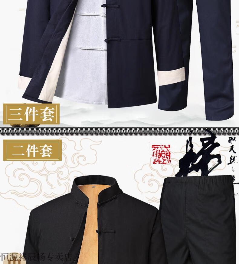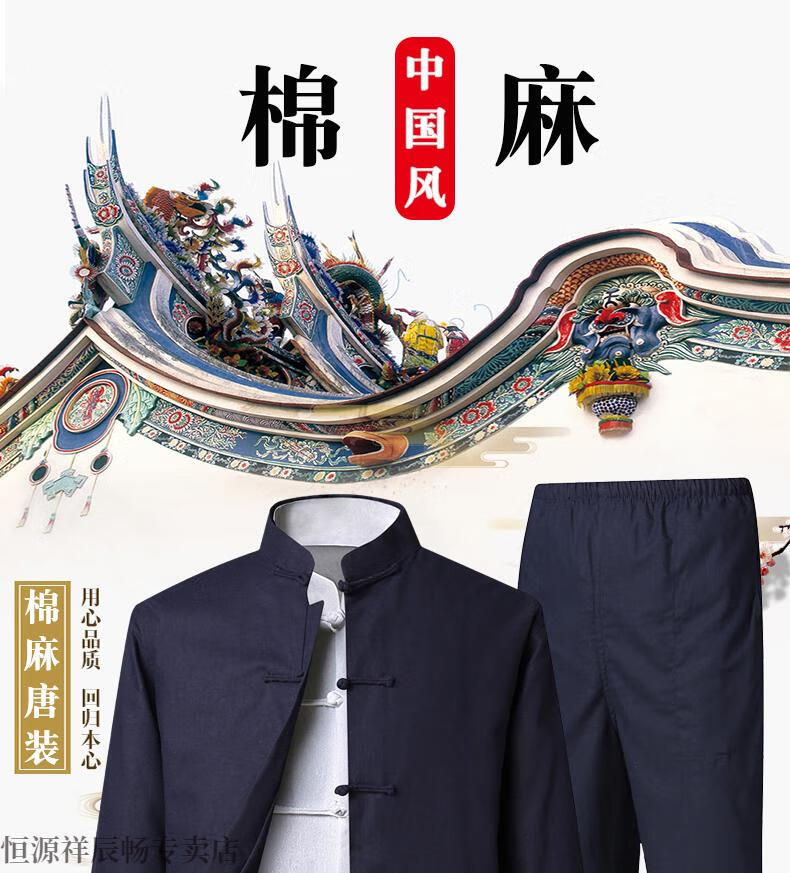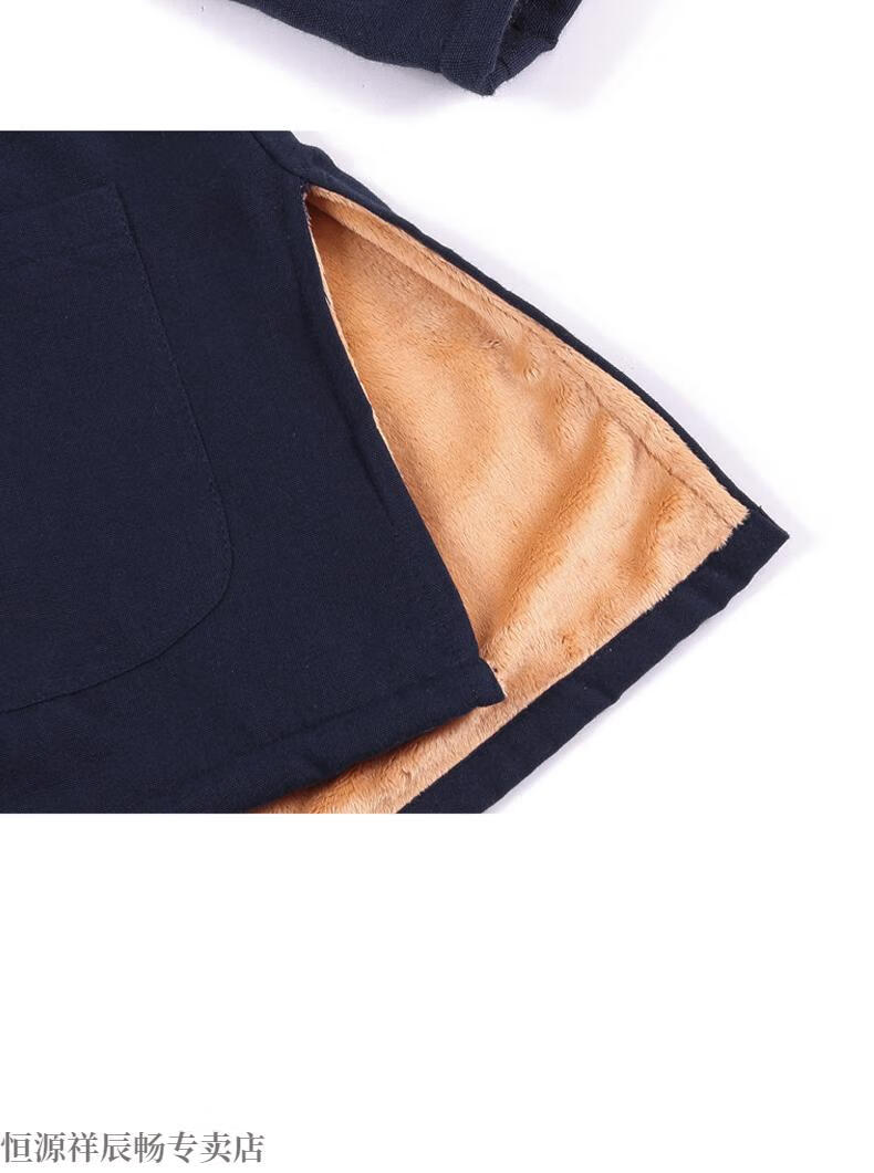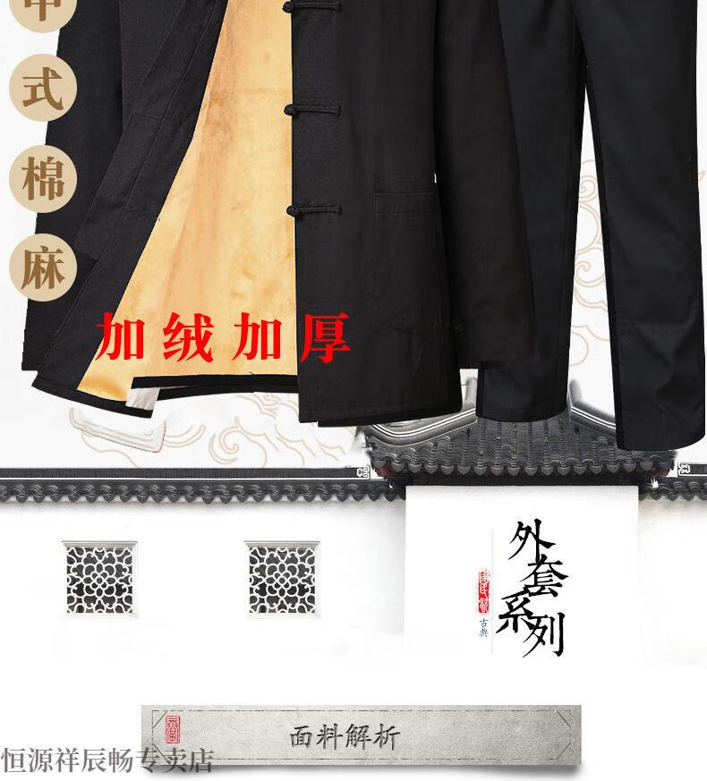 Hengyuanxiang Autumn and Winter Tang Suit Men's Suit Thickened and Velvet Chinese Style Cotton and Linen Solid Color Loose Large Long Sleeve Warm Ethnic Color Brown Plus Velvet Suit M 170