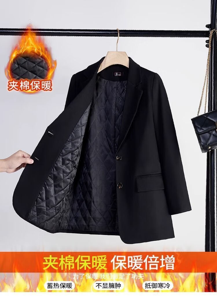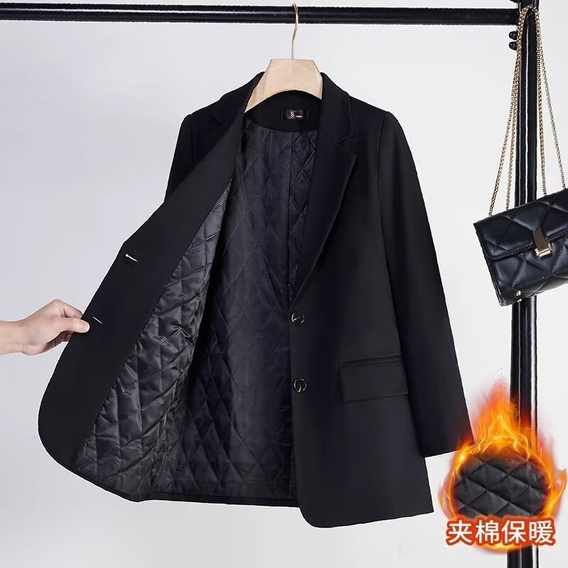 Woodpecker (TUCANO) black thickened quilted suit jacket for women thickened winter new high-end professional wear temperament suit top for women quilted style-black suit lll L