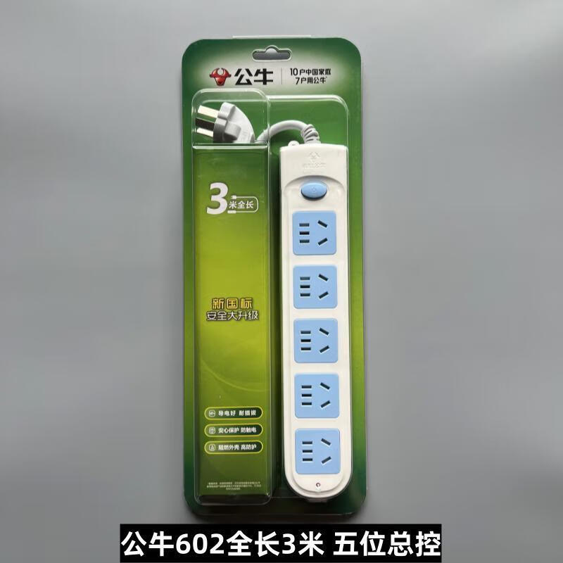 Bull socket GN-602 wiring board row 1.8 meters 3 meters 5 meters five-position master control with switch household 5 holes 602-3 meters (five-position master control switch)