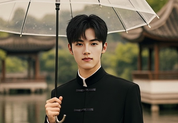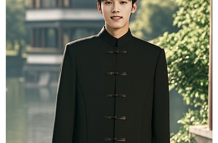 ROMON New Chinese style Chinese tunic suit men's national style button-down stand-up suit suit groom wedding wedding suit national fashion jacket black jacket + pants XS
